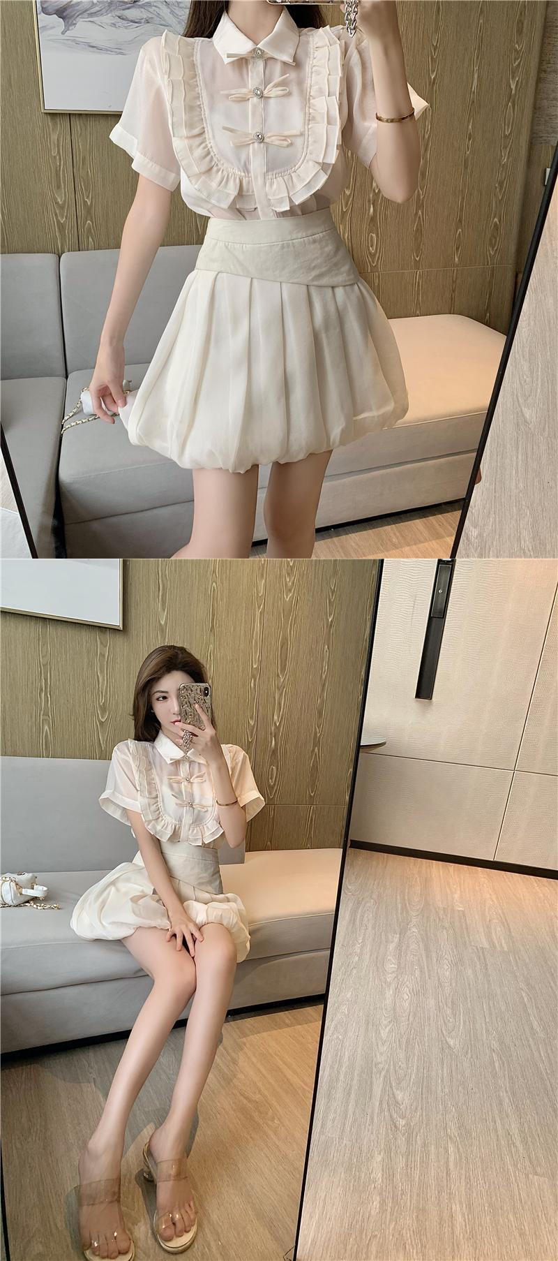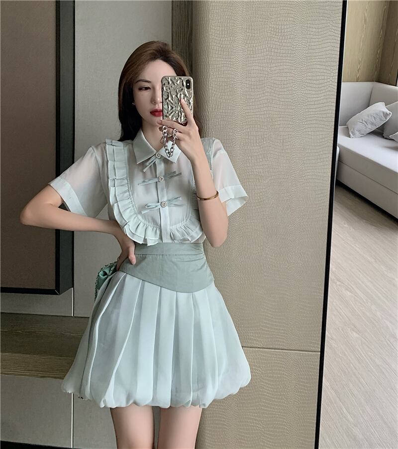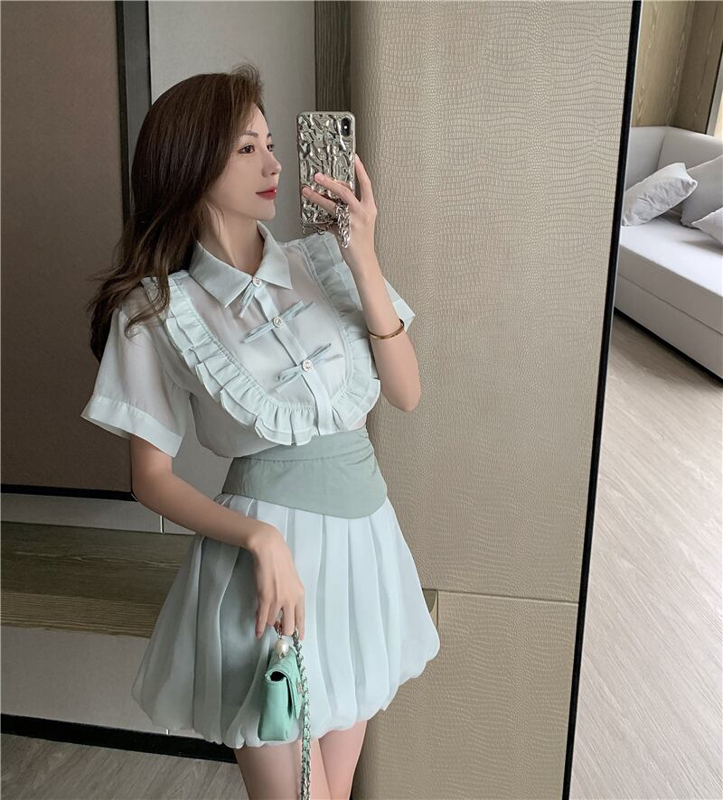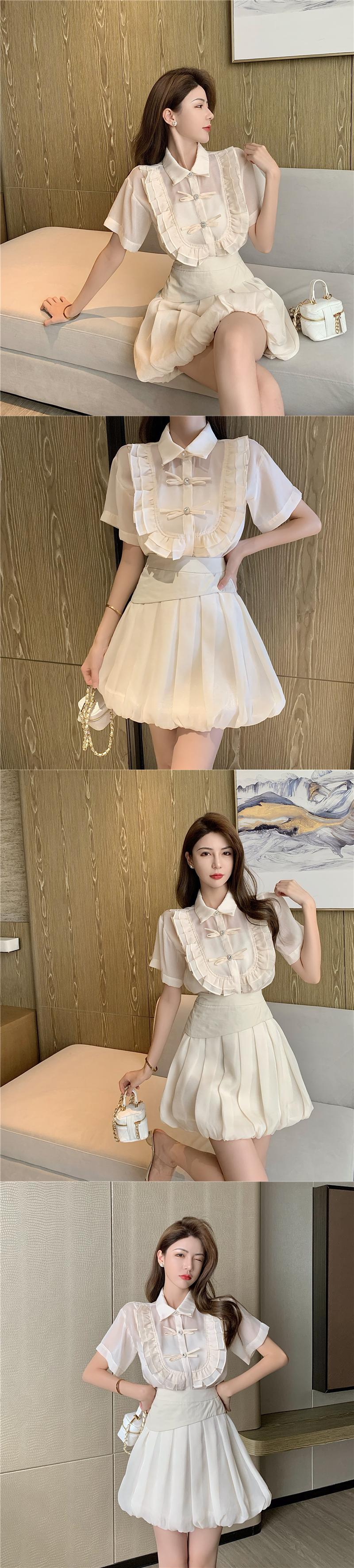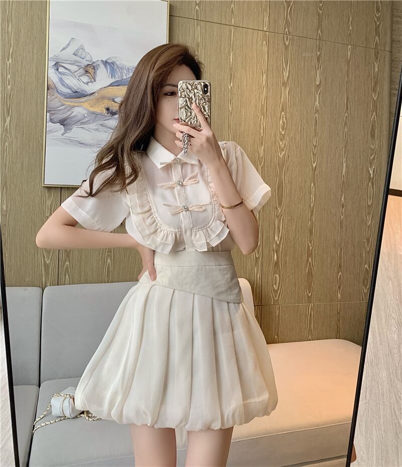 サマースタンダードボタンリボン半袖スリーブハイウェストウェストスカート ショート レトロ ハーフスリーブ 夏物 YY-ファッション96980783796