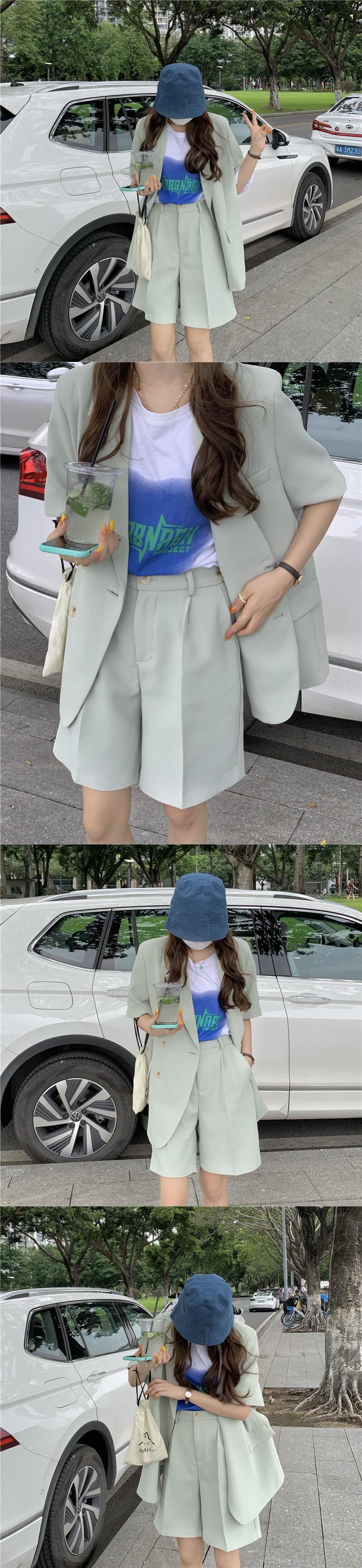 サマー薄手半袖スリーブジャケット ウェストショーツ ショート ハーフスリーブ 夏物 ブルマー YY-ファッション57472448801
