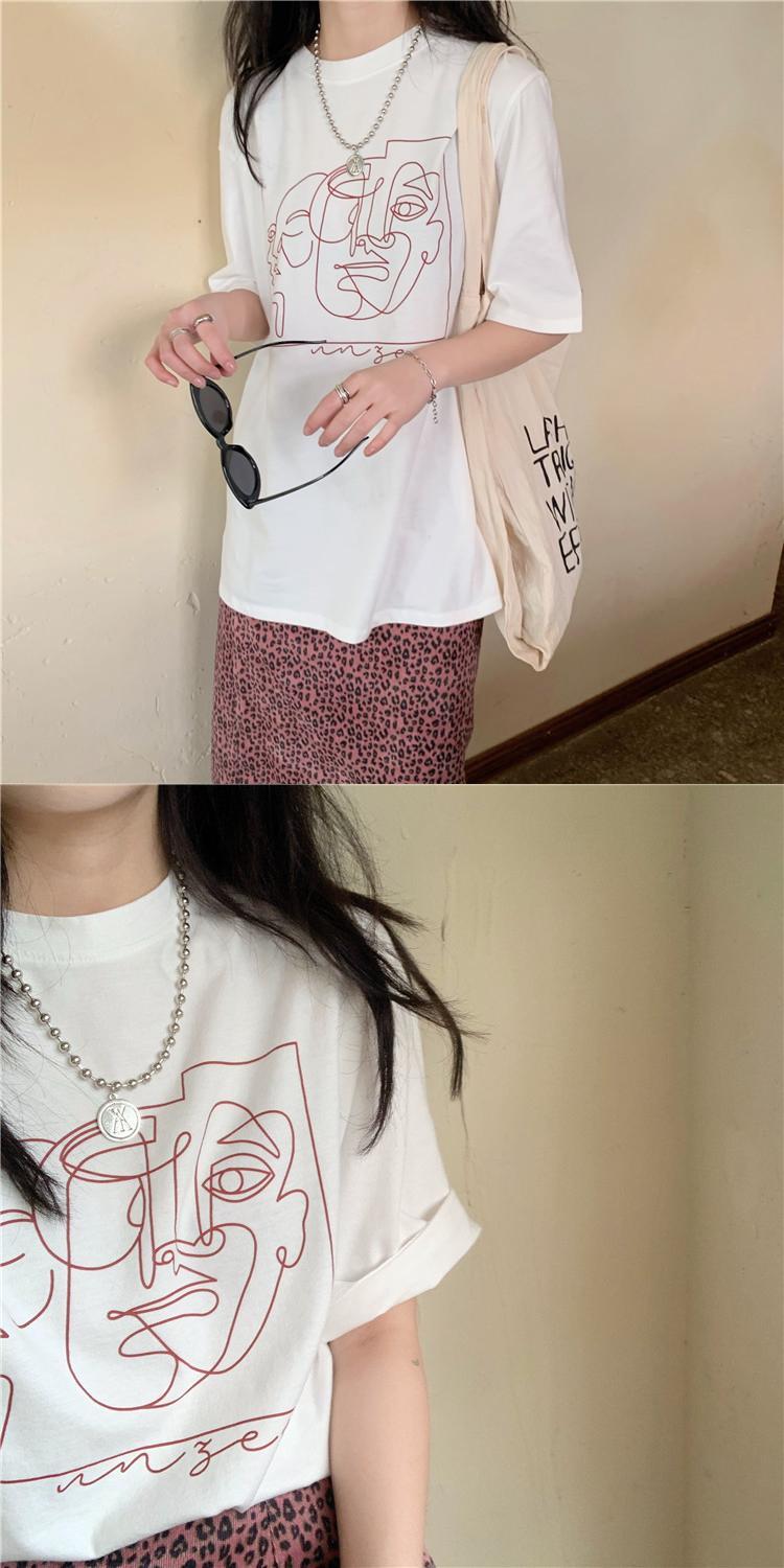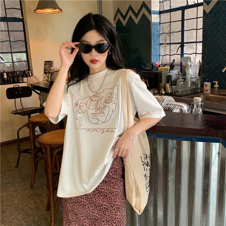 サマールーズプリント柄ブラックTシャツ トップス レディース 夏物 YY-ファッション56486418976