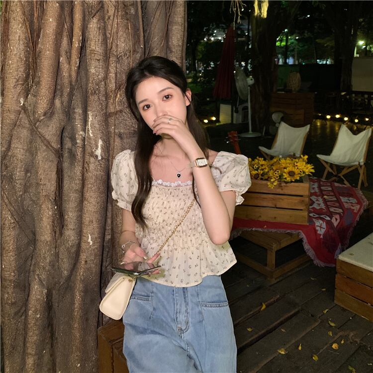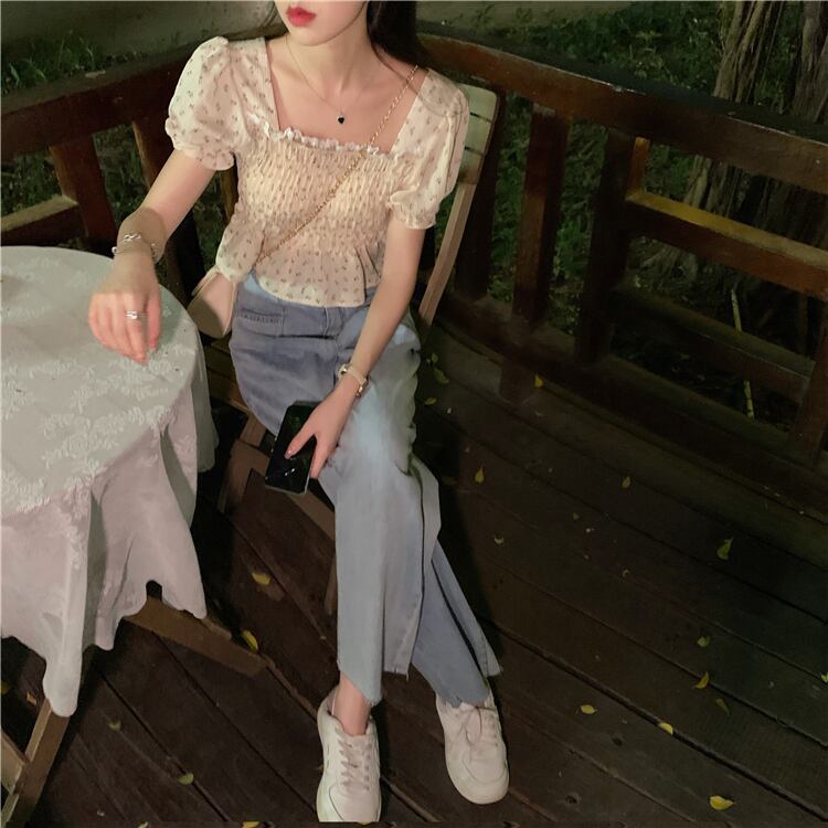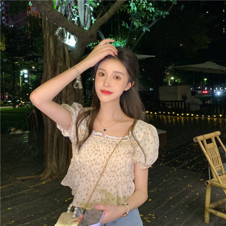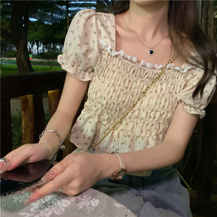 スリーブシフォンシャツ サマースリム薄手ショートレディース 大人ガーリー スウィート キュート カジュアル 夏物 スクウェア YY-ファッション86141132874