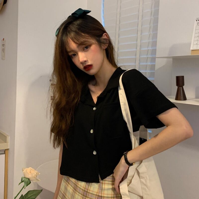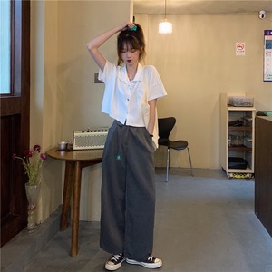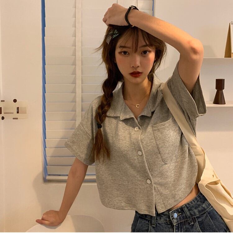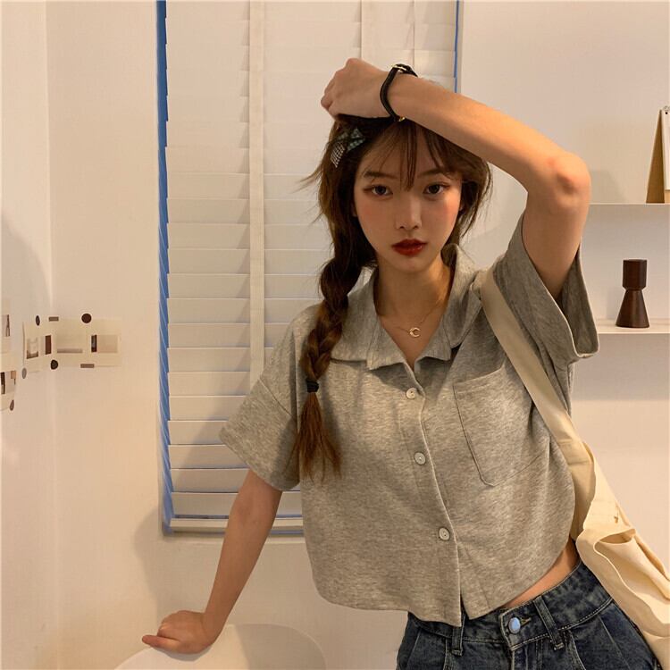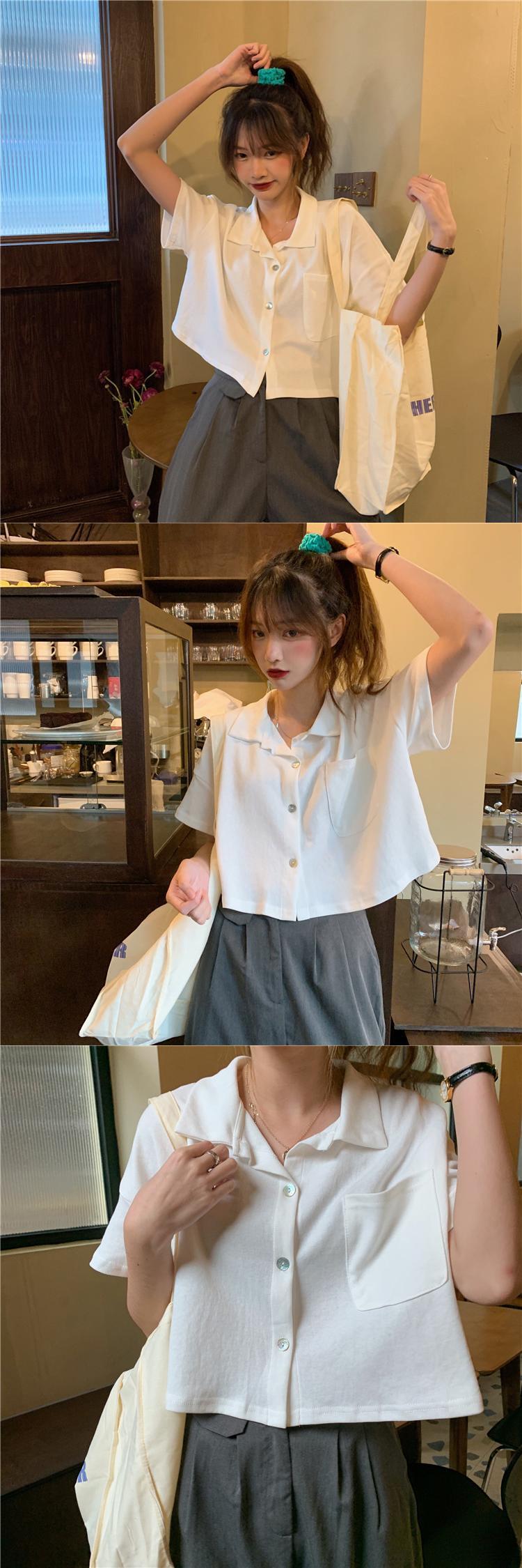 ウェストショートトップス レディースルーズサマーシャツ Vネックスタイル薄手ホワイト 夏物 YY-ファッション92232064195