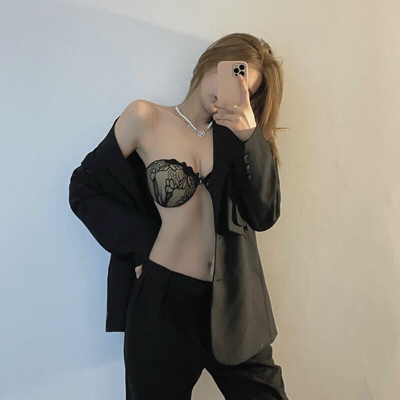 サマーストラップレスブラ ブラック レッド レース 夏物 YY-ファッション86050619744