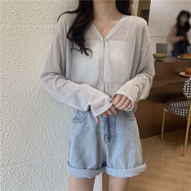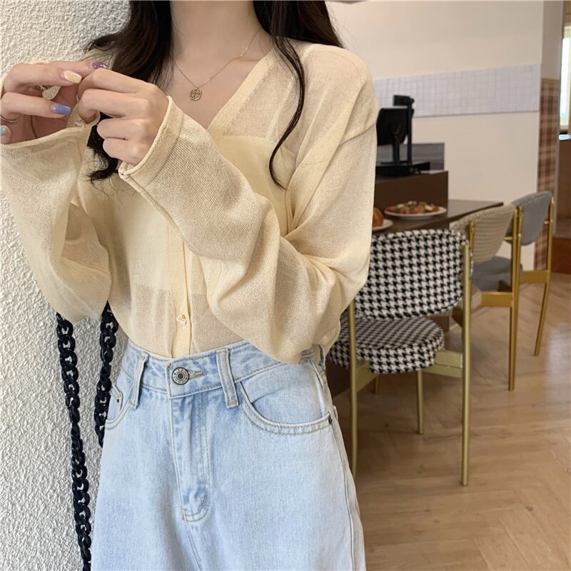 ルーズセーター サマー薄手スタイルVネックカーディガントップス ロング 夏物 シルク YY-ファッション74558674515