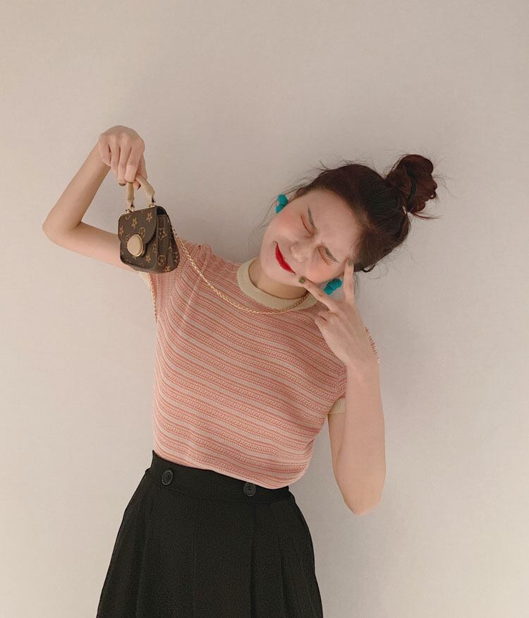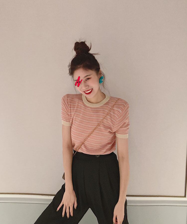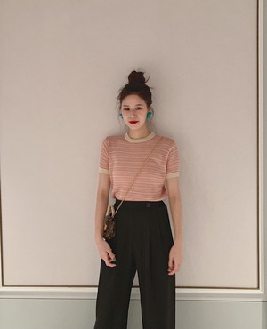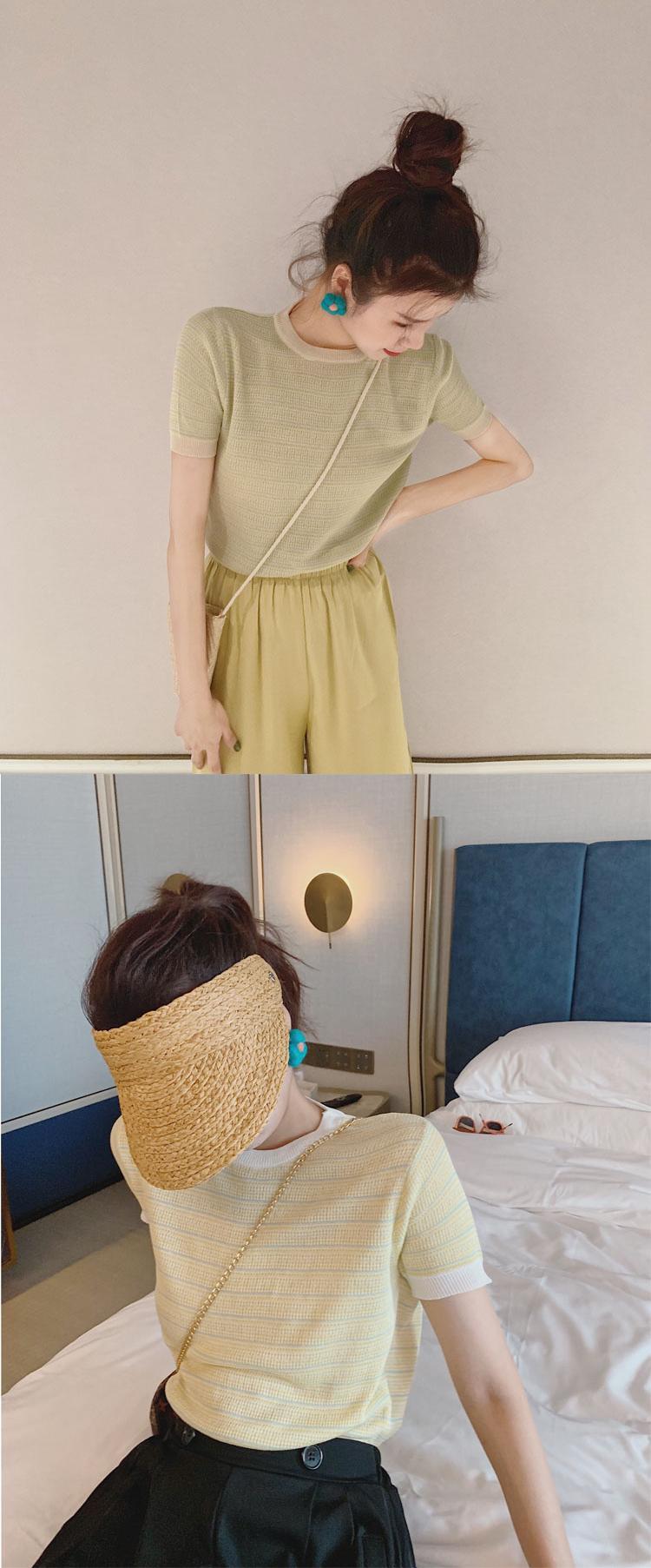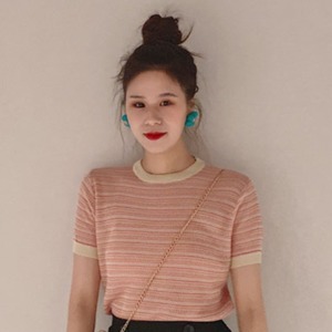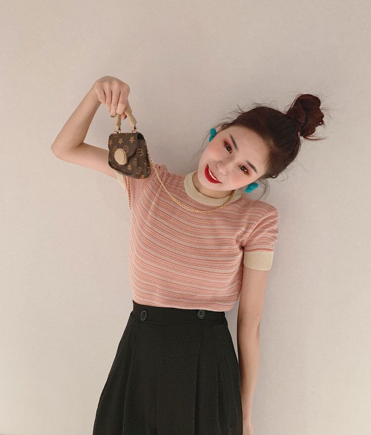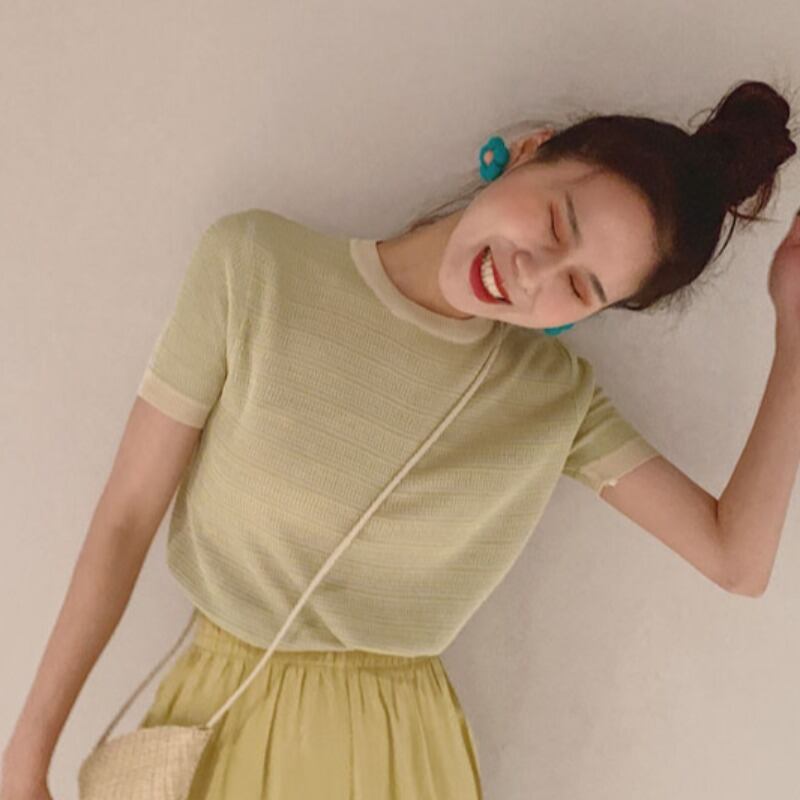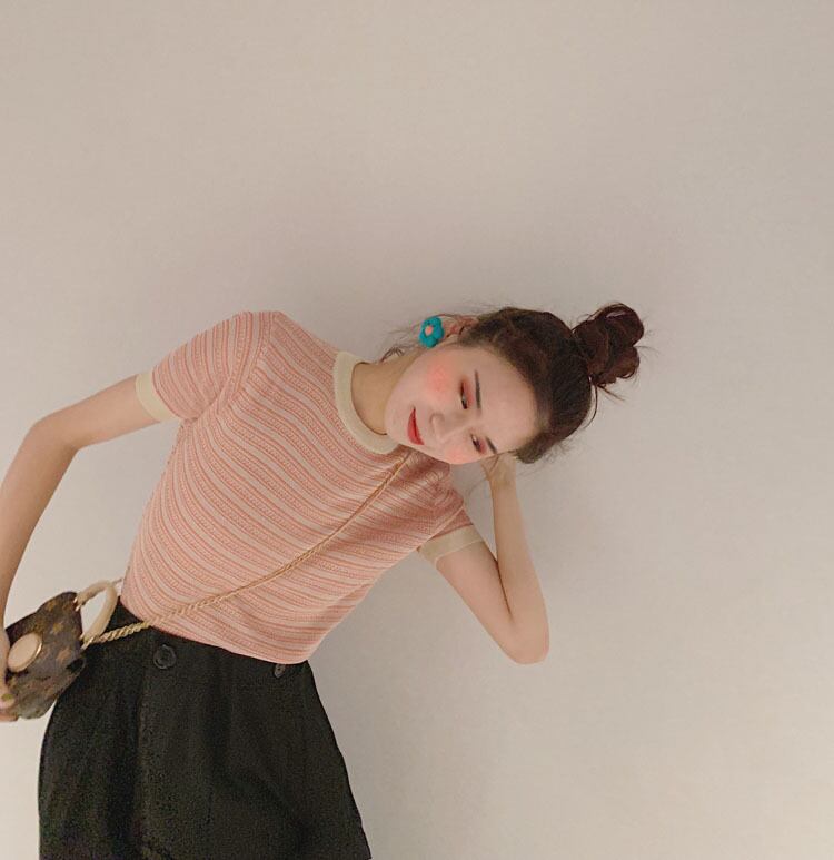 スタンダードストライプTシャツ サマーレッドニットトップス レトロ 夏物 YY-ファッション55033844489