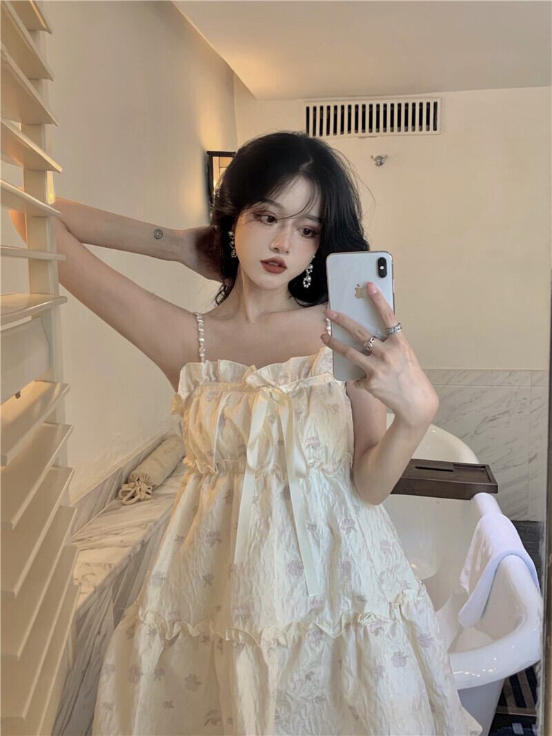 フローラルドレス サマーショートスカート 大人ガーリー スウィート キュート カジュアル ふわふわ 夏物 花柄 YY-ファッション67770911126