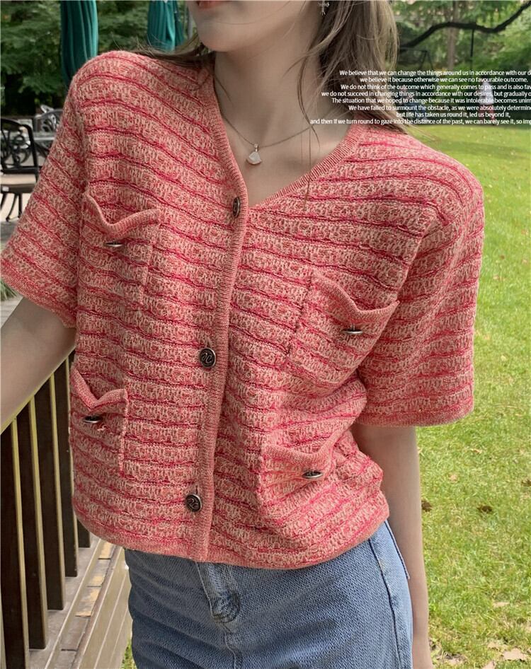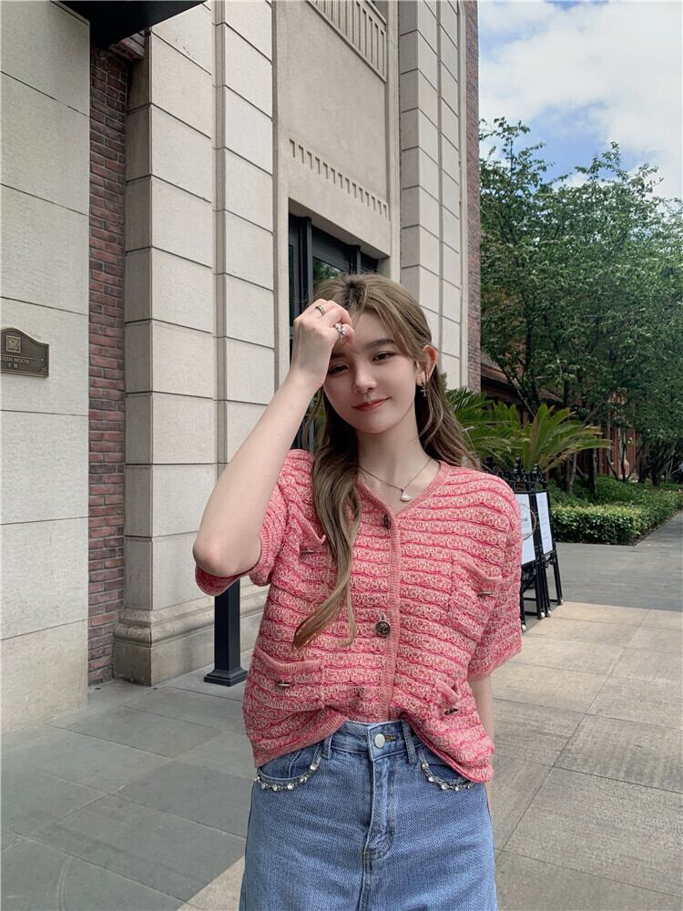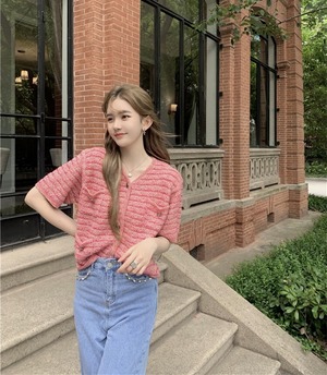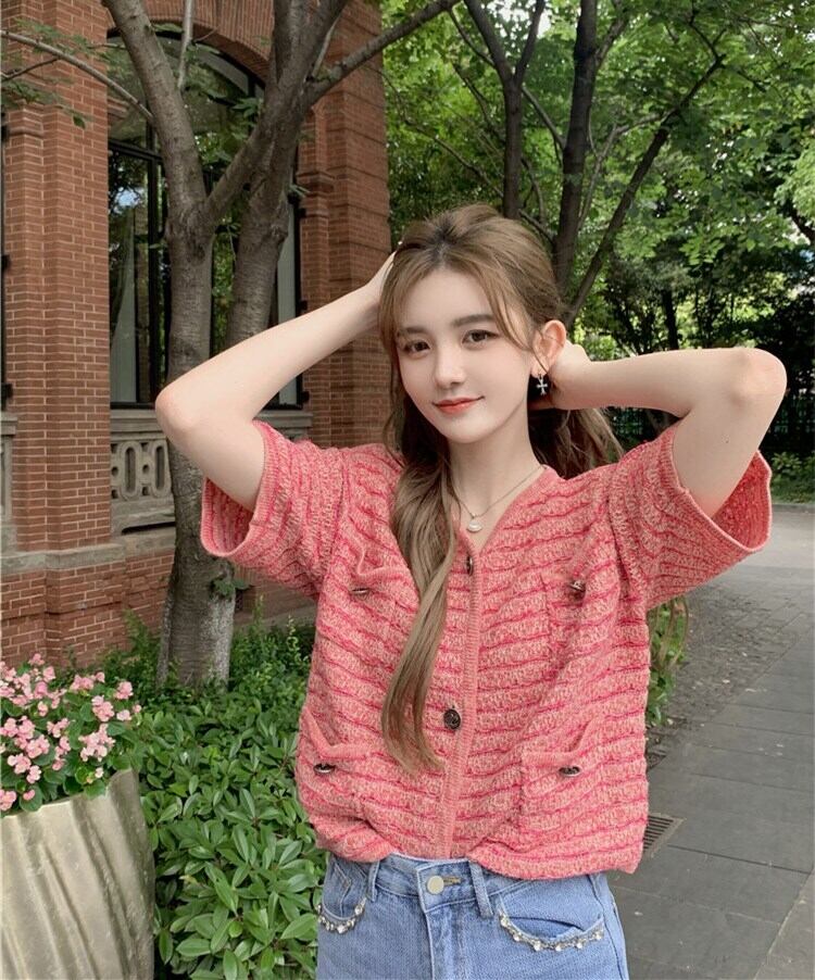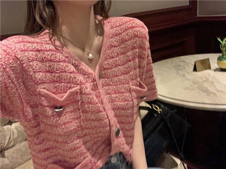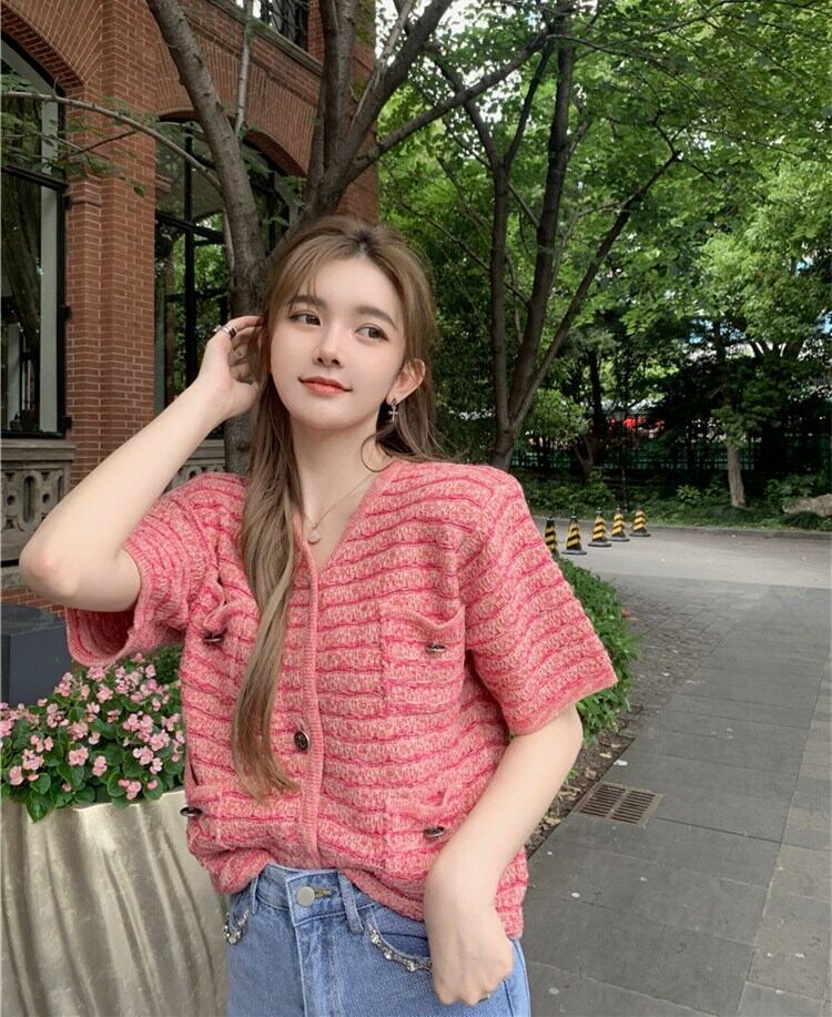 ニットセーター レディースルーズVネック薄手カーディガンジャケット サマーシャツ トップス ピンク 夏物 シルク YY-ファッション27655419038