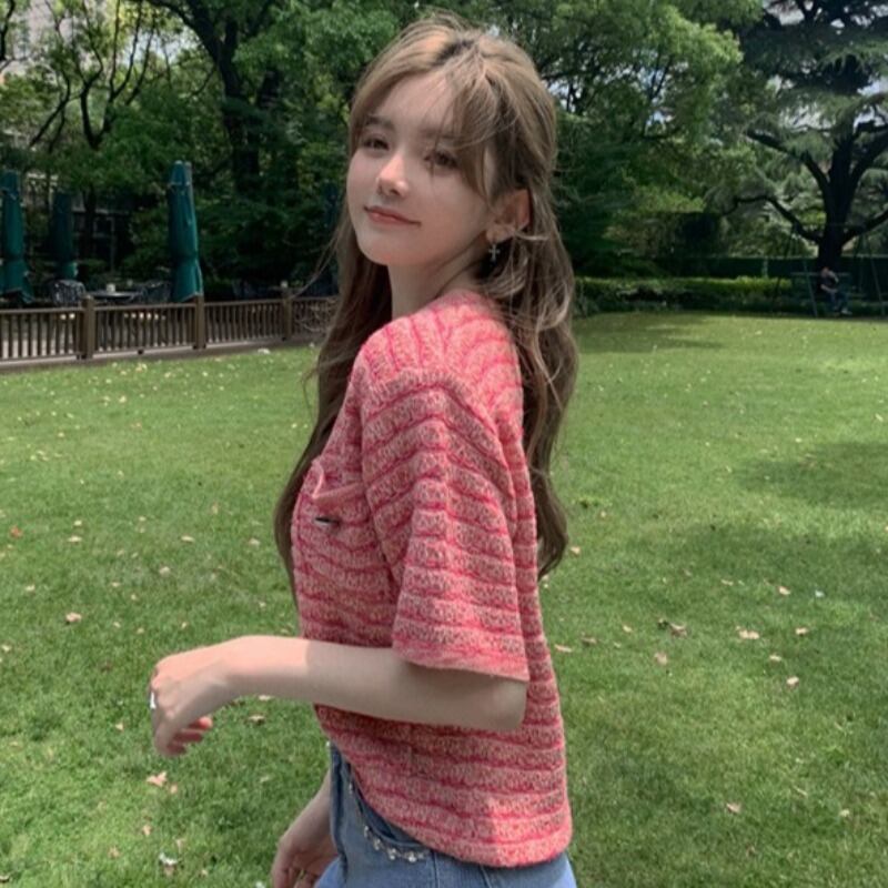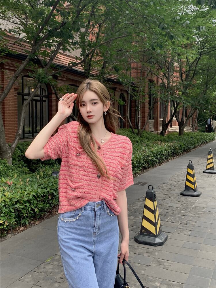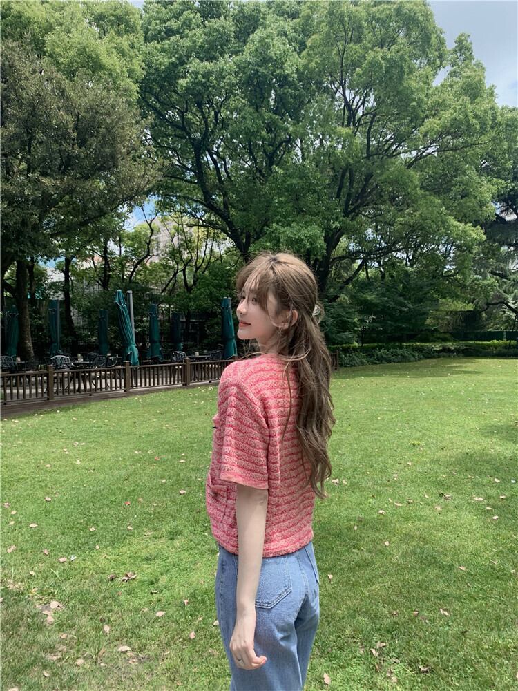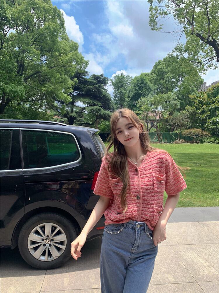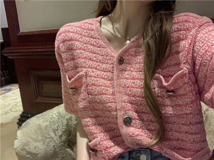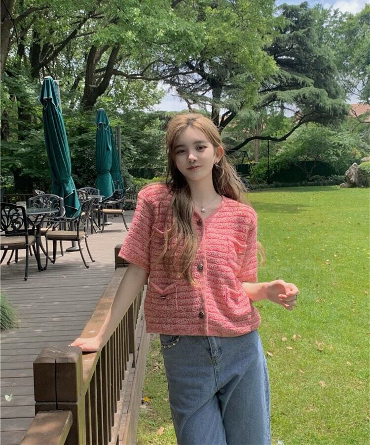 ニットセーター レディースルーズVネック薄手カーディガンジャケット サマーシャツ トップス ピンク 夏物 シルク YY-ファッション27655419038