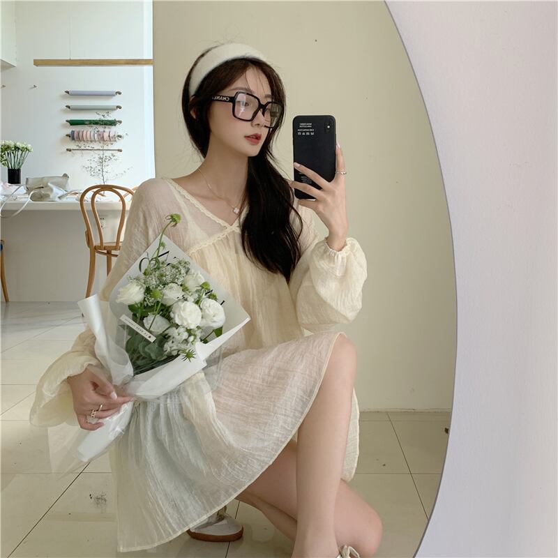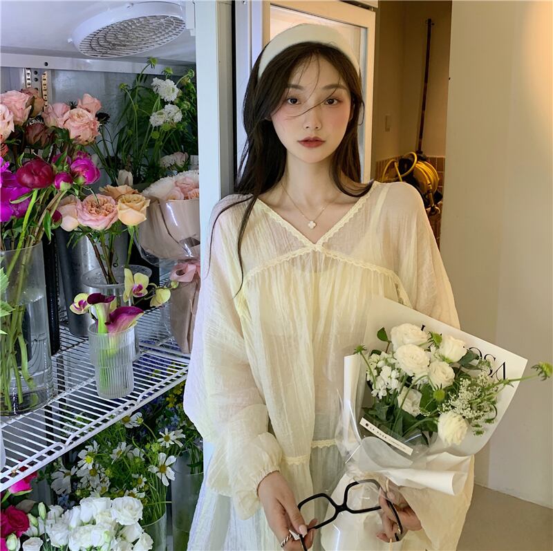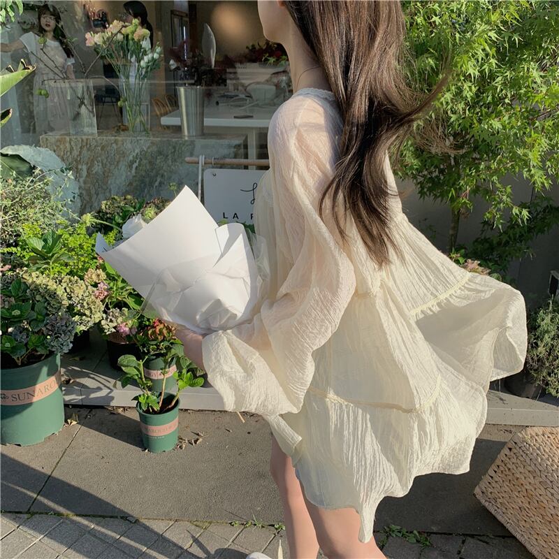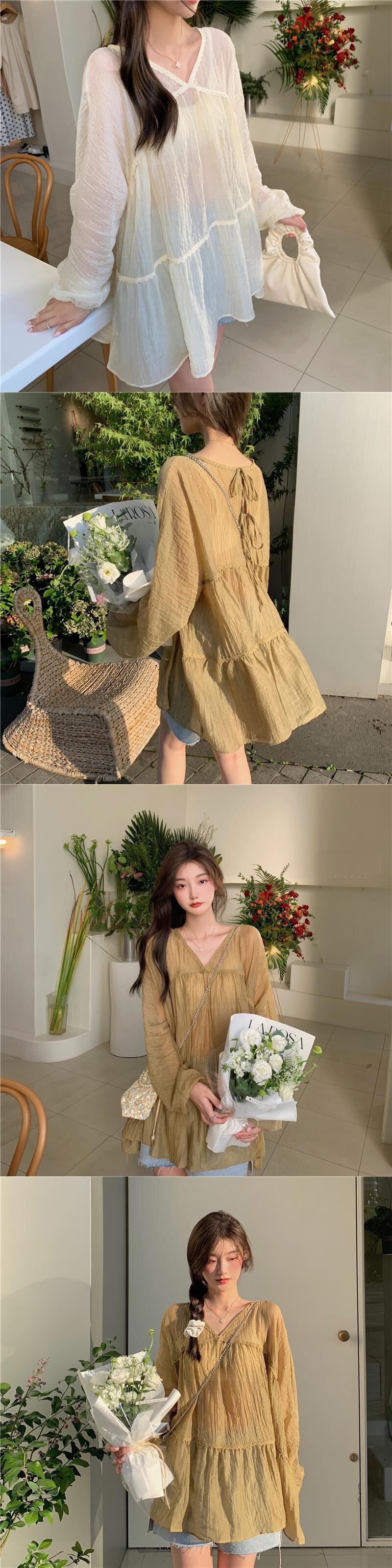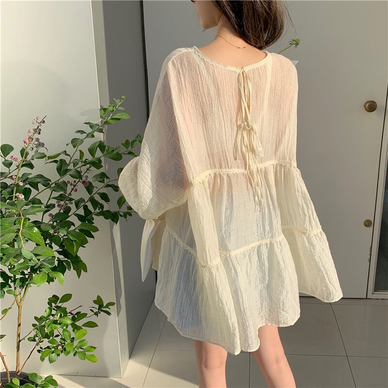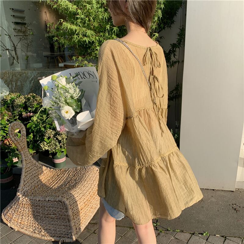 シフォンシャツ スリーブサマートップス スタンダードスタイル ロング レトロ レース 夏物 レースアップ YY-ファッション54056518612