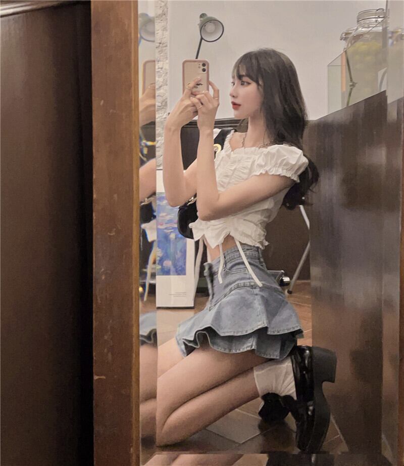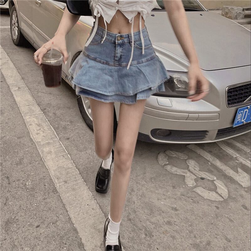 スカート ハイウェストウェストショートサマーAラインプリーツ 夏物 YY-ファッション85425457647