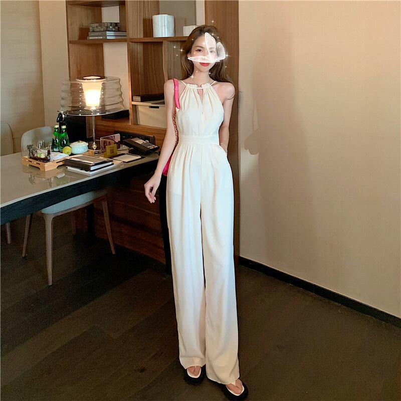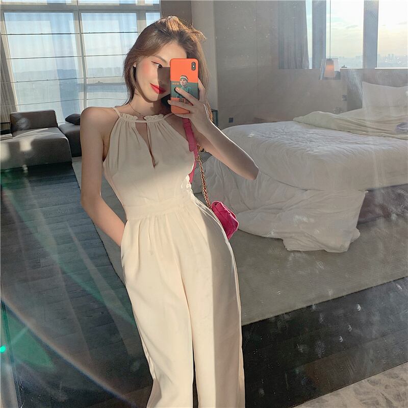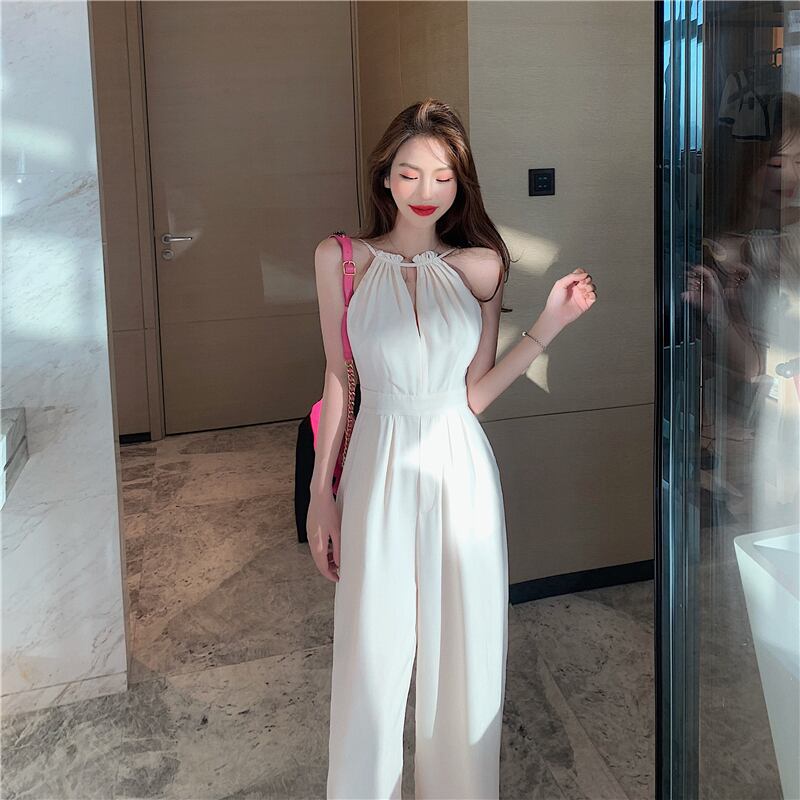 ホワイトジャンプスーツ オールインワン スプリングハイウェストウェストスリムルーズパンツ カジュアルロング 春物 YY-ファッション80763092937