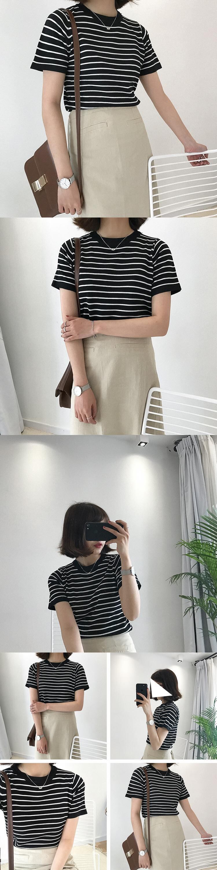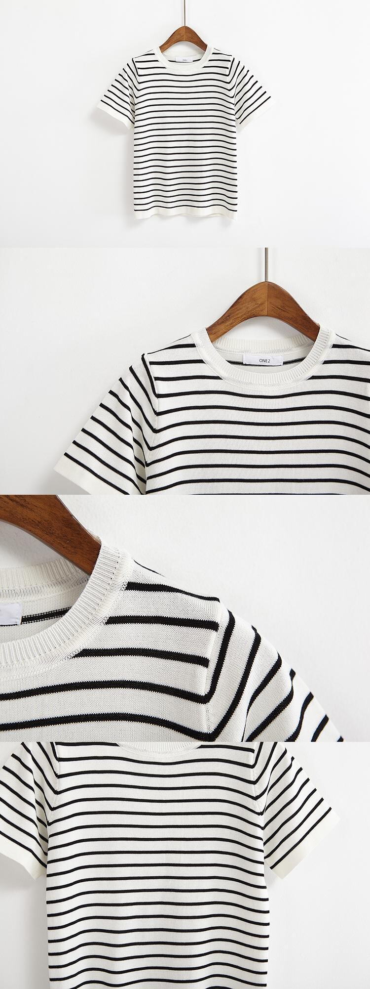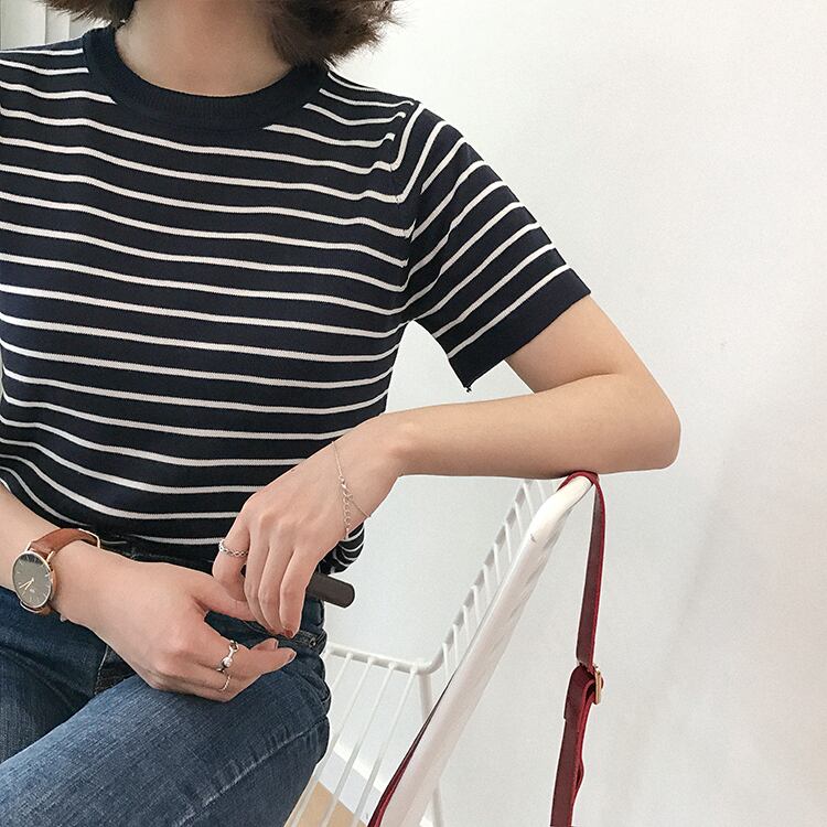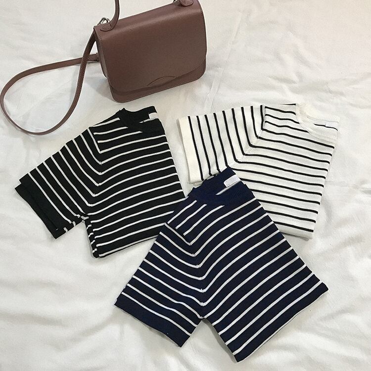 トップス サマーブラックホワイトストライプTシャツ レッドセーター スリムフィット 夏物 シルク YY-ファッション5114060292