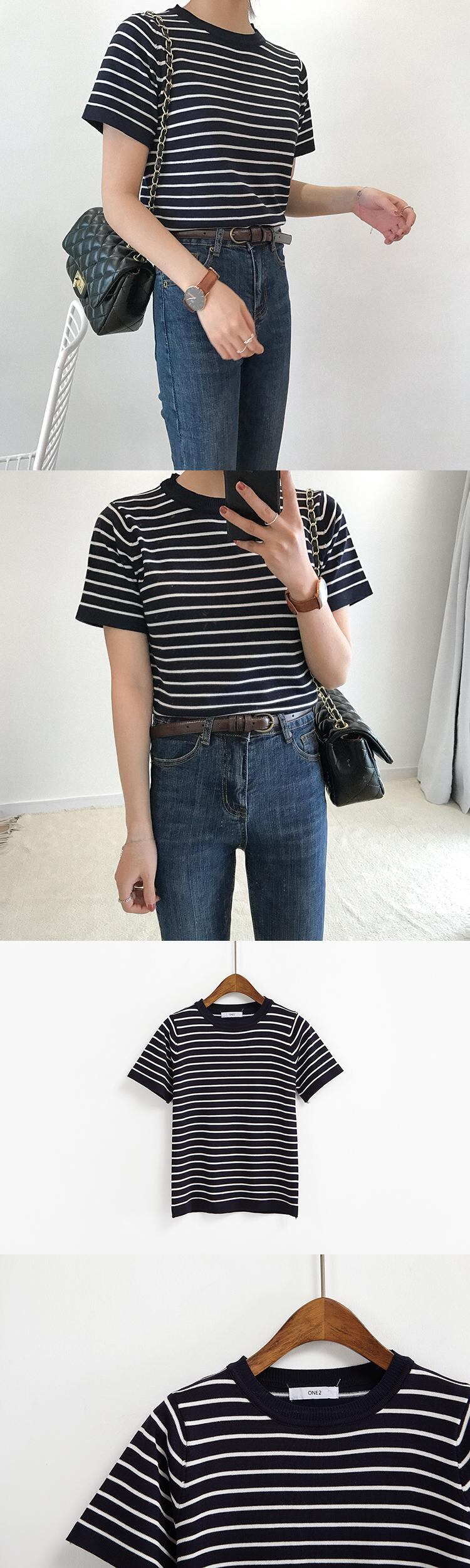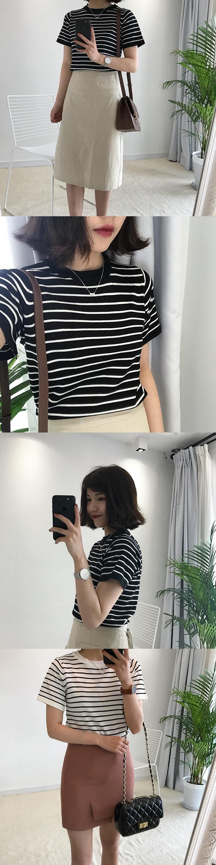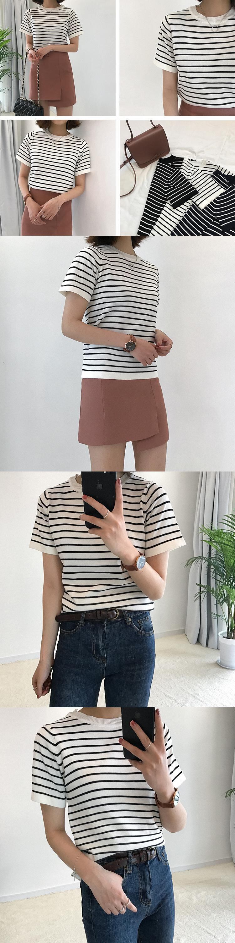 トップス サマーブラックホワイトストライプTシャツ レッドセーター スリムフィット 夏物 シルク YY-ファッション5114060292