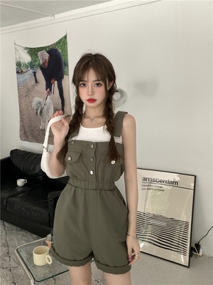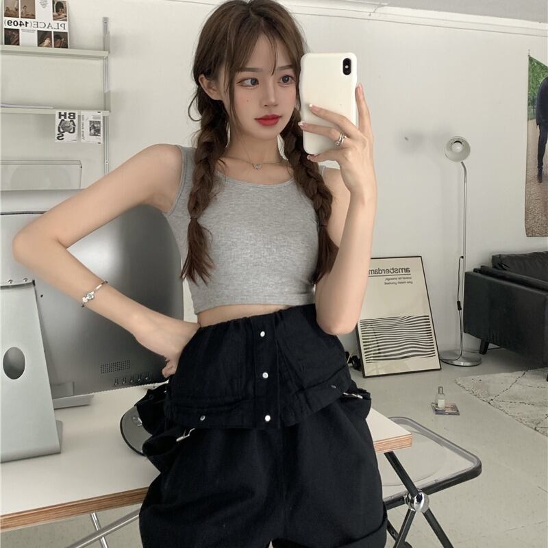 サマーストレッチウェストルーズワイドレッグショーツ スリムタンクトップトップス レディース エラスティック 伸縮 夏物 ブルマー ワイドパンツ YY-ファッション42164390550