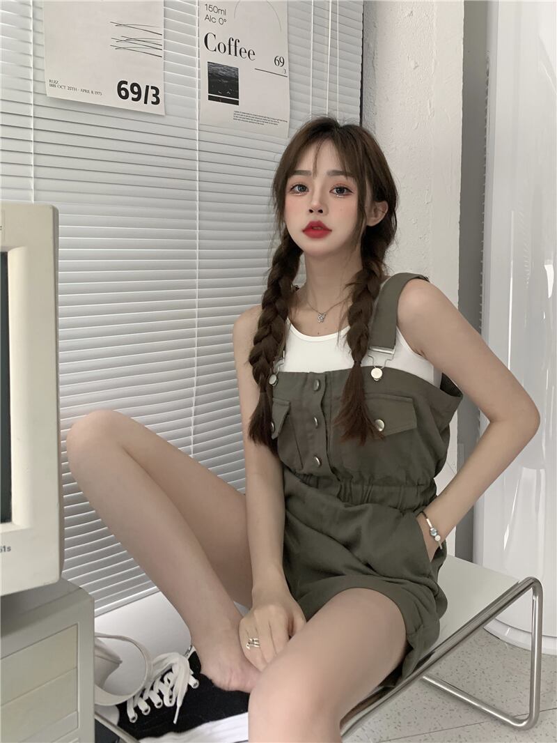 色:白いよだれかけ,アーミーグリーンビブパンツ,黒いオーバーオール,白いベスト,グレーのベスト