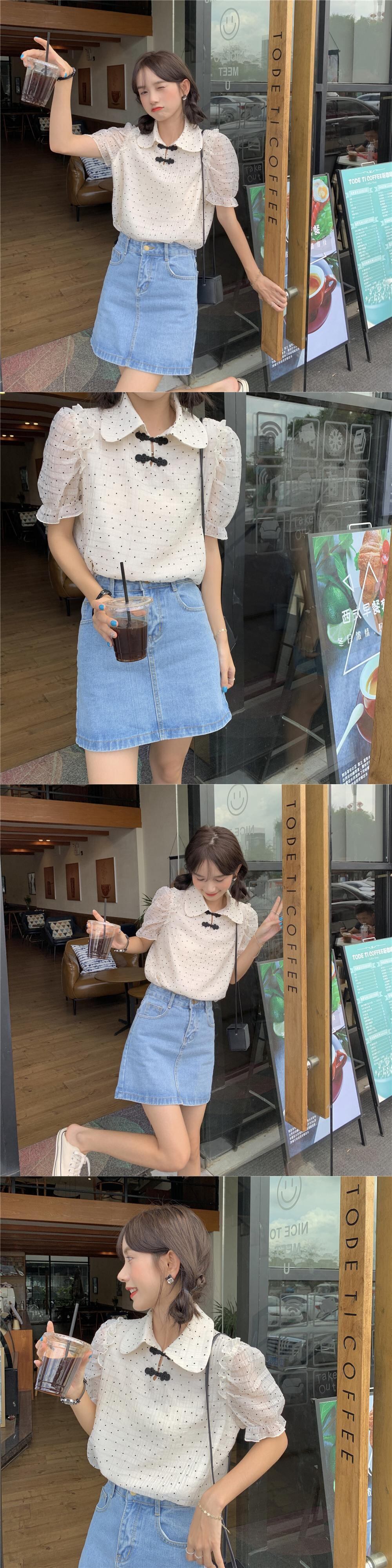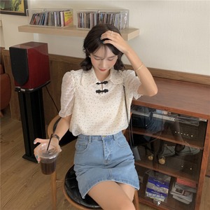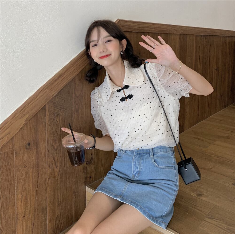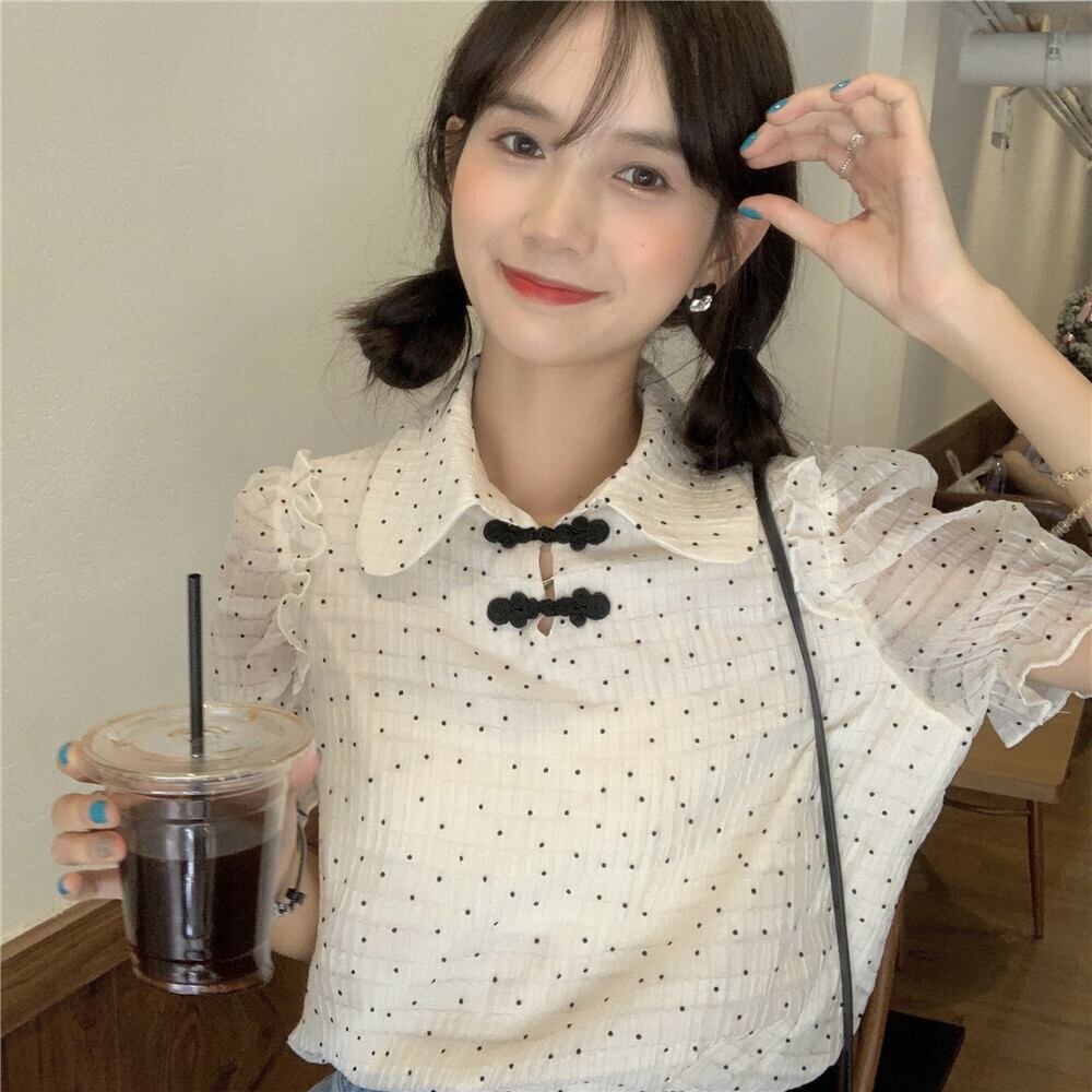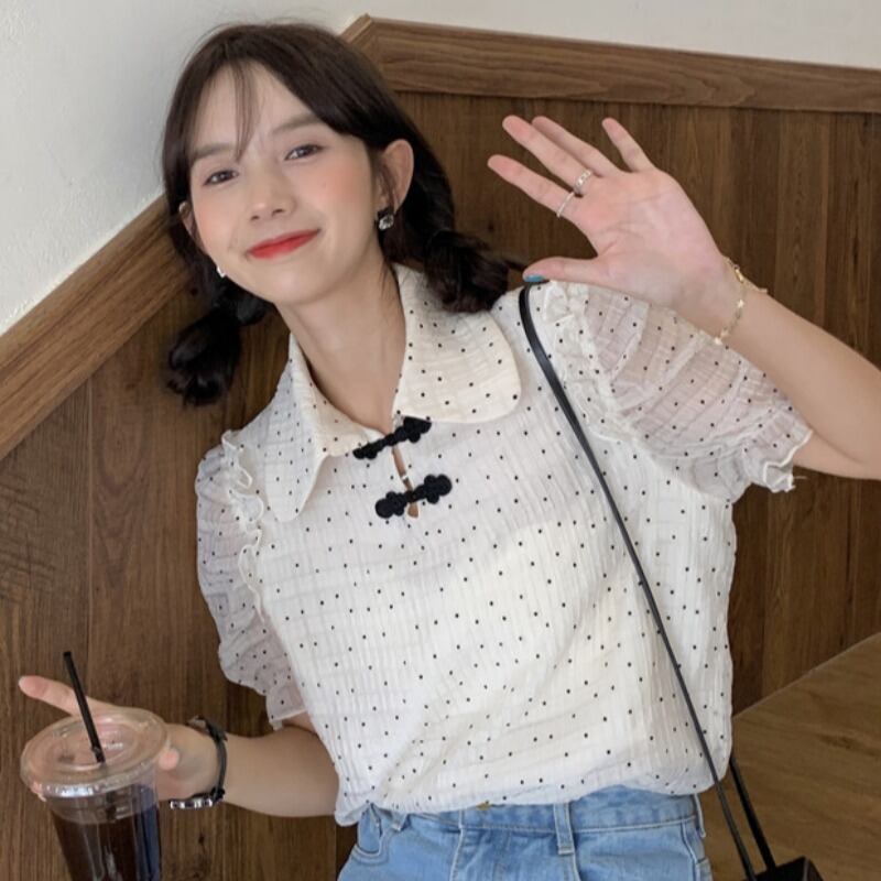 サマースタイルカジュアルシャツ 水玉シフォンブラウス レディース レッド 夏物 YY-ファッション81973683395