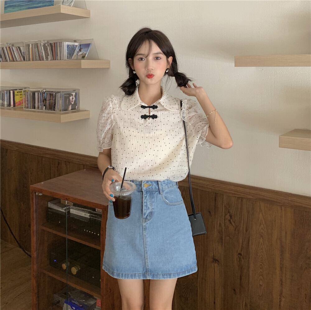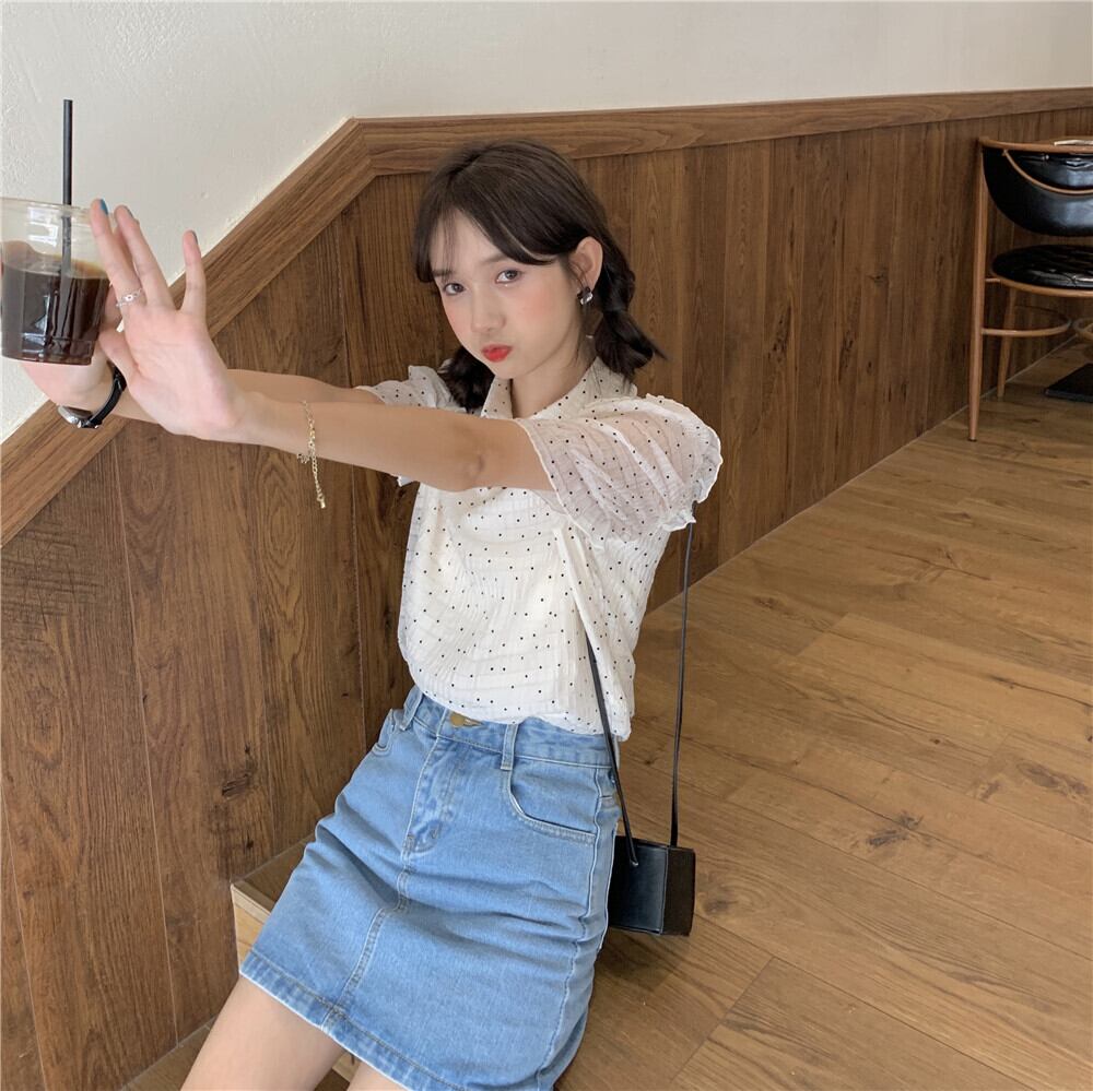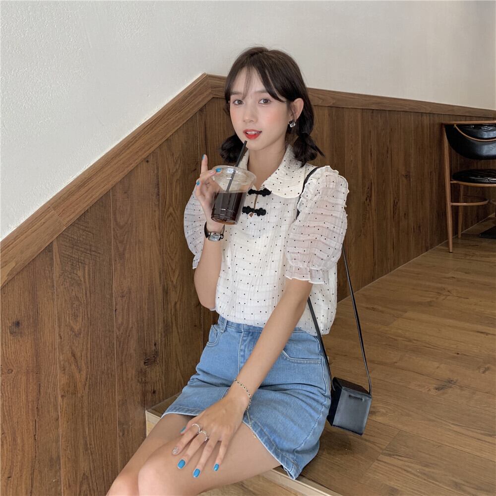サマースタイルカジュアルシャツ 水玉シフォンブラウス レディース レッド 夏物 YY-ファッション81973683395