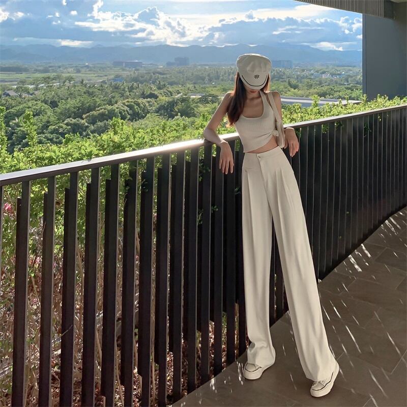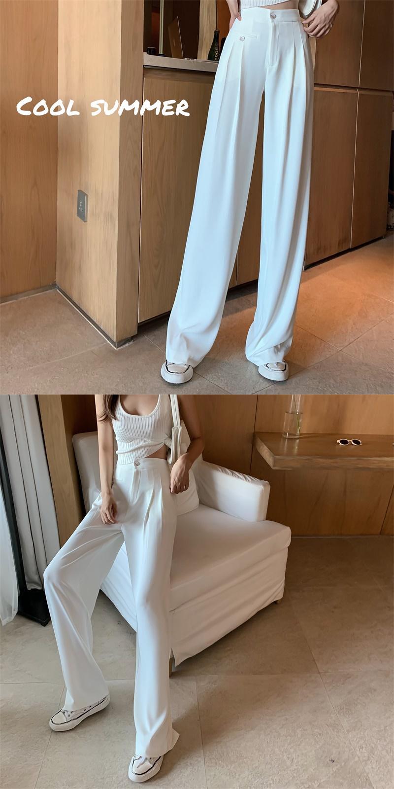 パンツ ルーズ薄手スプリングサマーハイウェストカジュアルホワイト 春物 夏物 YY-ファッション25243504461