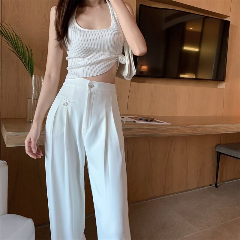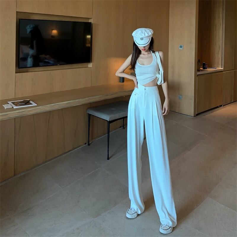 パンツ レディースルーズ薄手サマーハイウェストウェストカジュアルホワイトワイドレッグ 夏物 ワイドパンツ YY-ファッション74953760675