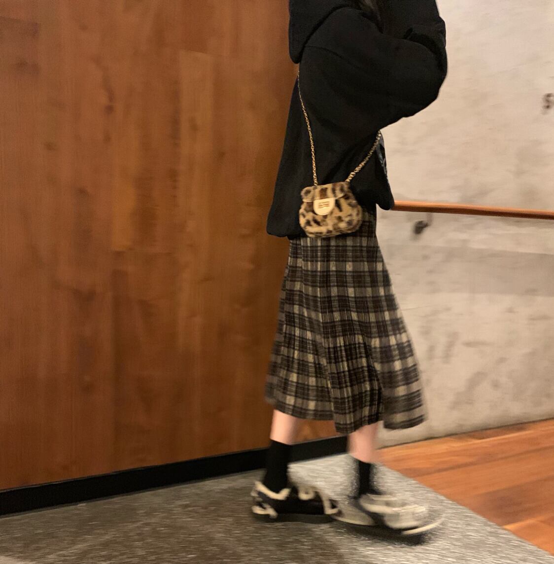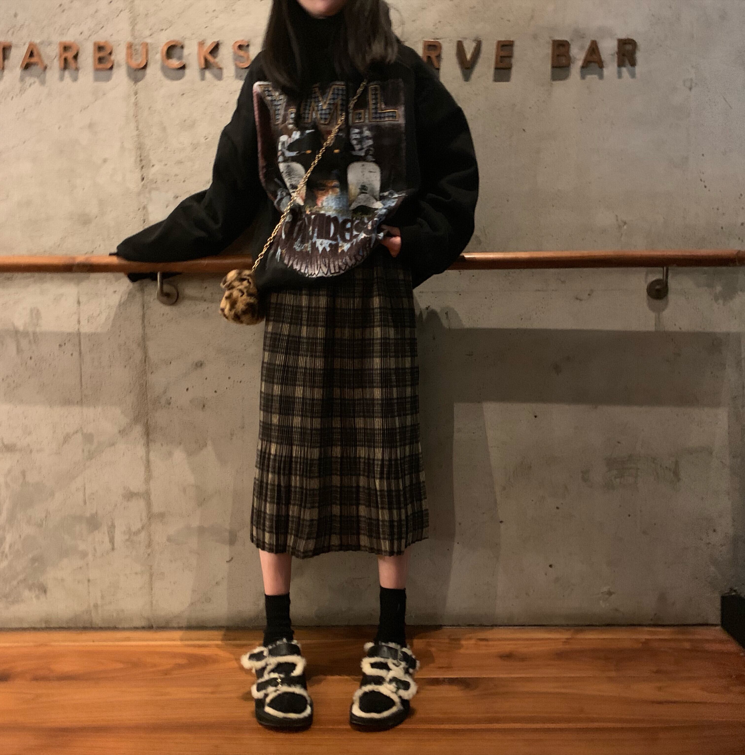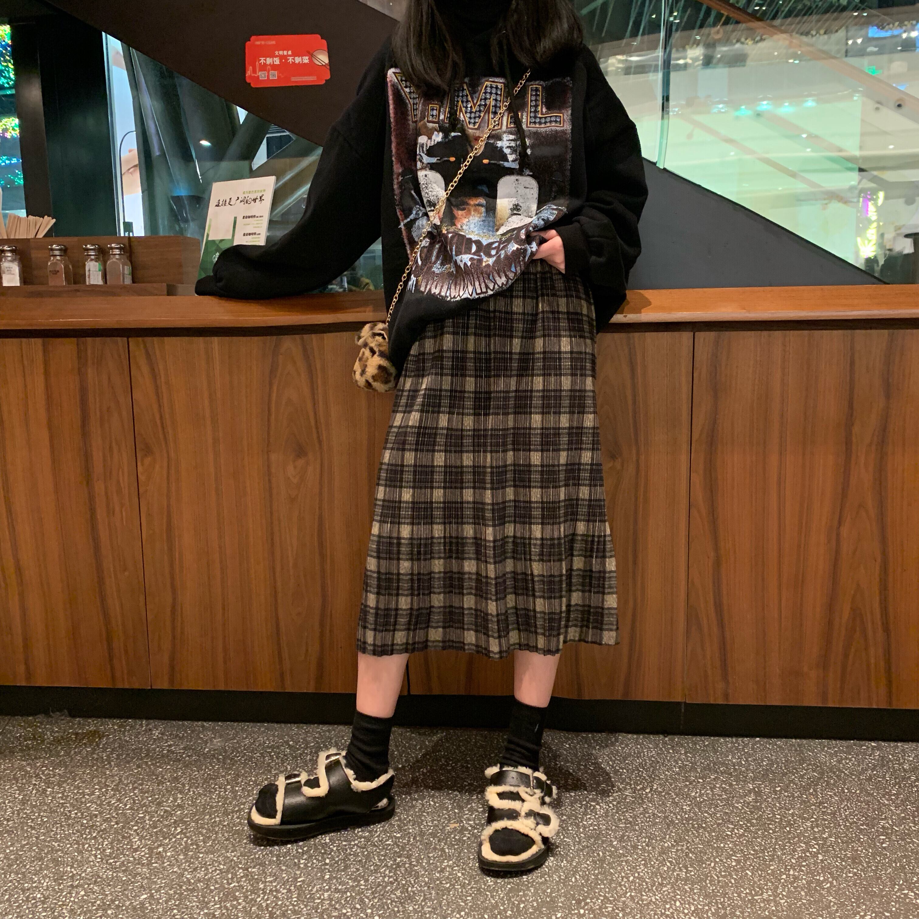 オータムルーズプリーツスタンダードスカート 格子柄ハイウェストウェスト レトロ 秋物 YY-ファッション90926147463