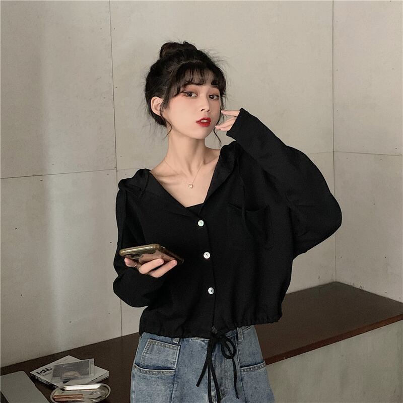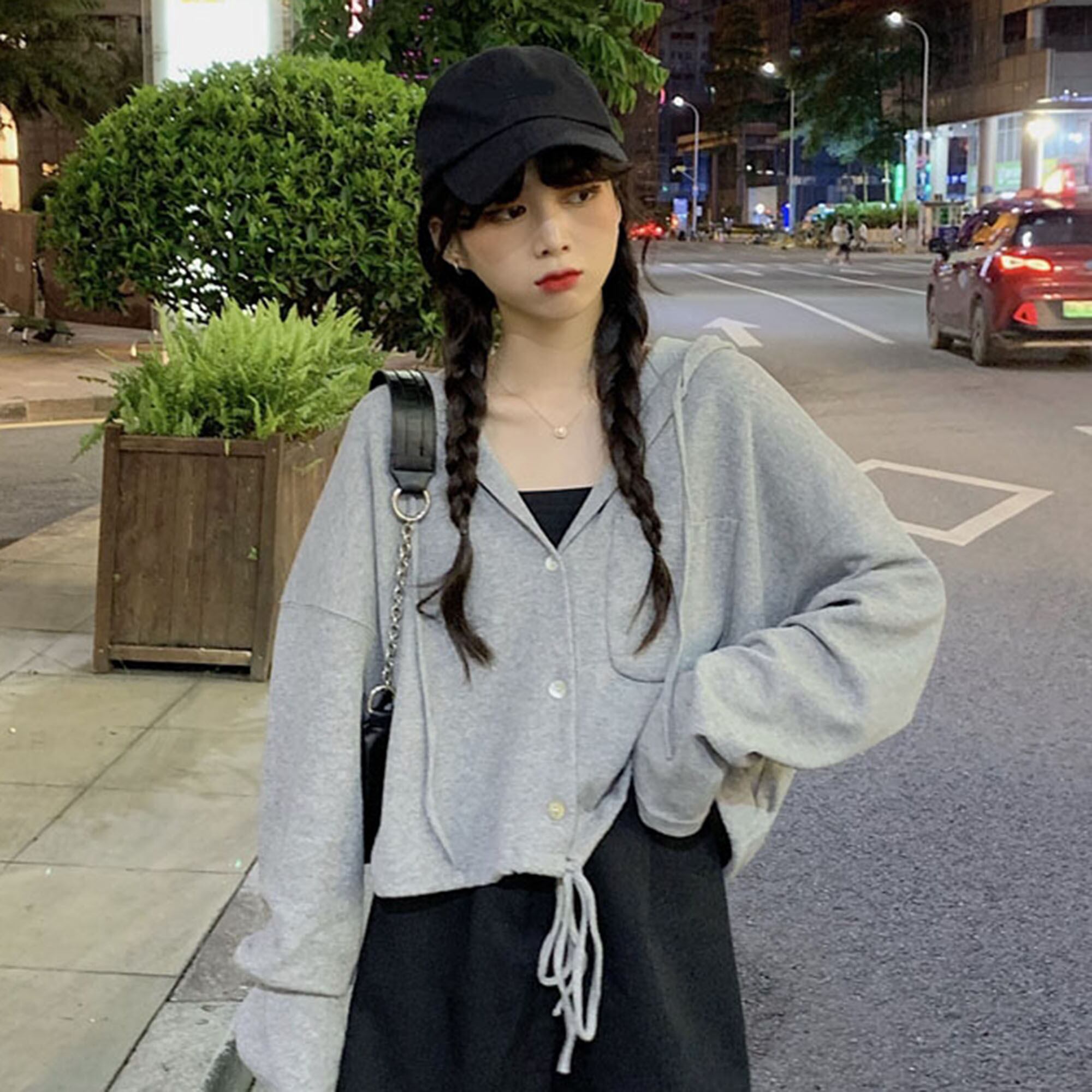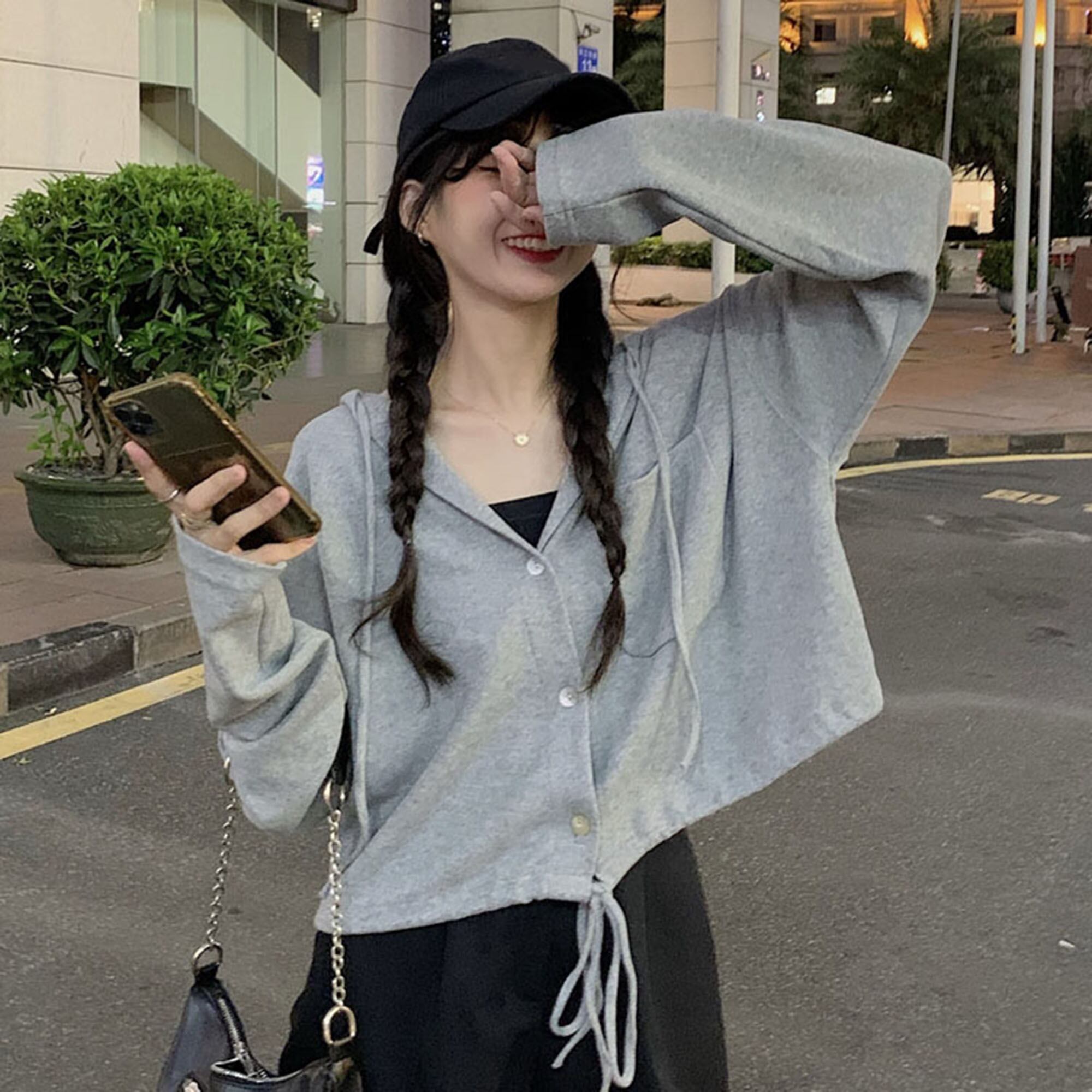 セーター ジャケット スプリングオータム薄手ルーズスタイルショートギャザートップス ロング 春物 秋物 YY-ファッション27157349089