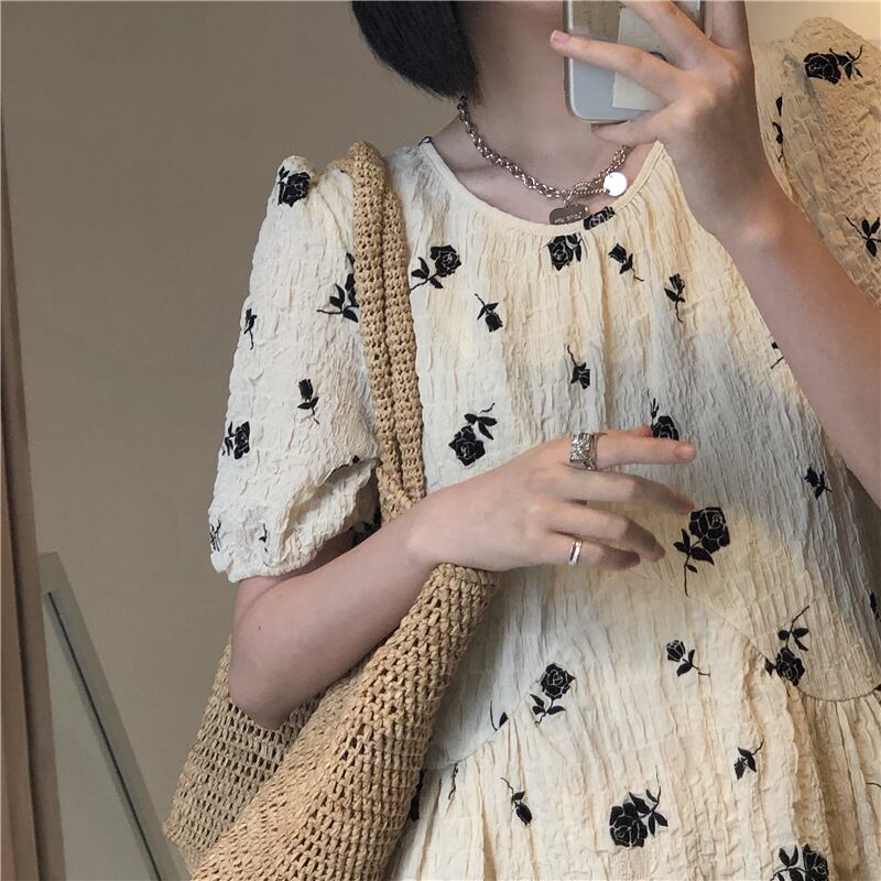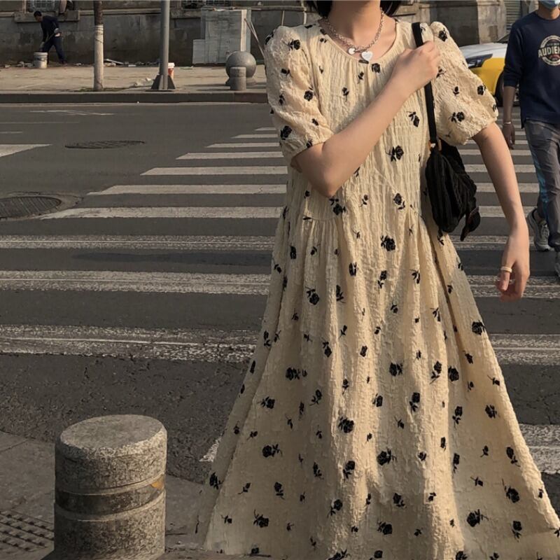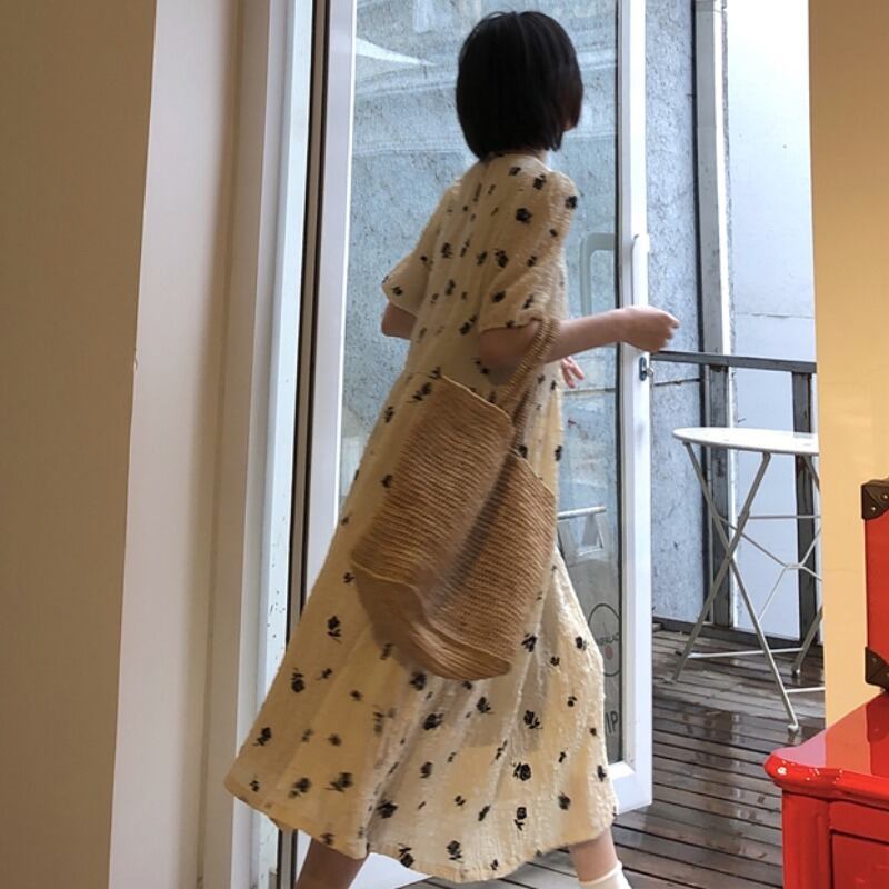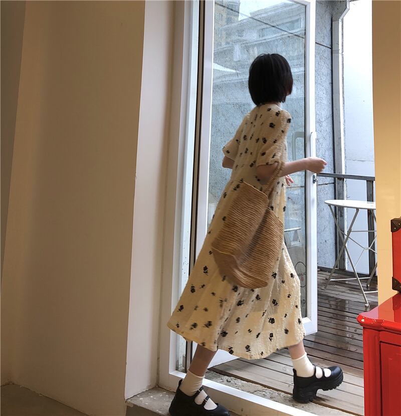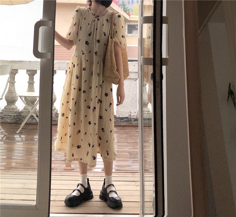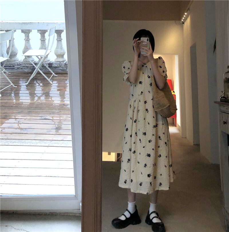 サマーフローラルプリーツドレス ルーズ薄手スカート 大人ガーリー スウィート キュート カジュアル 夏物 花柄 YY-ファッション29746054370