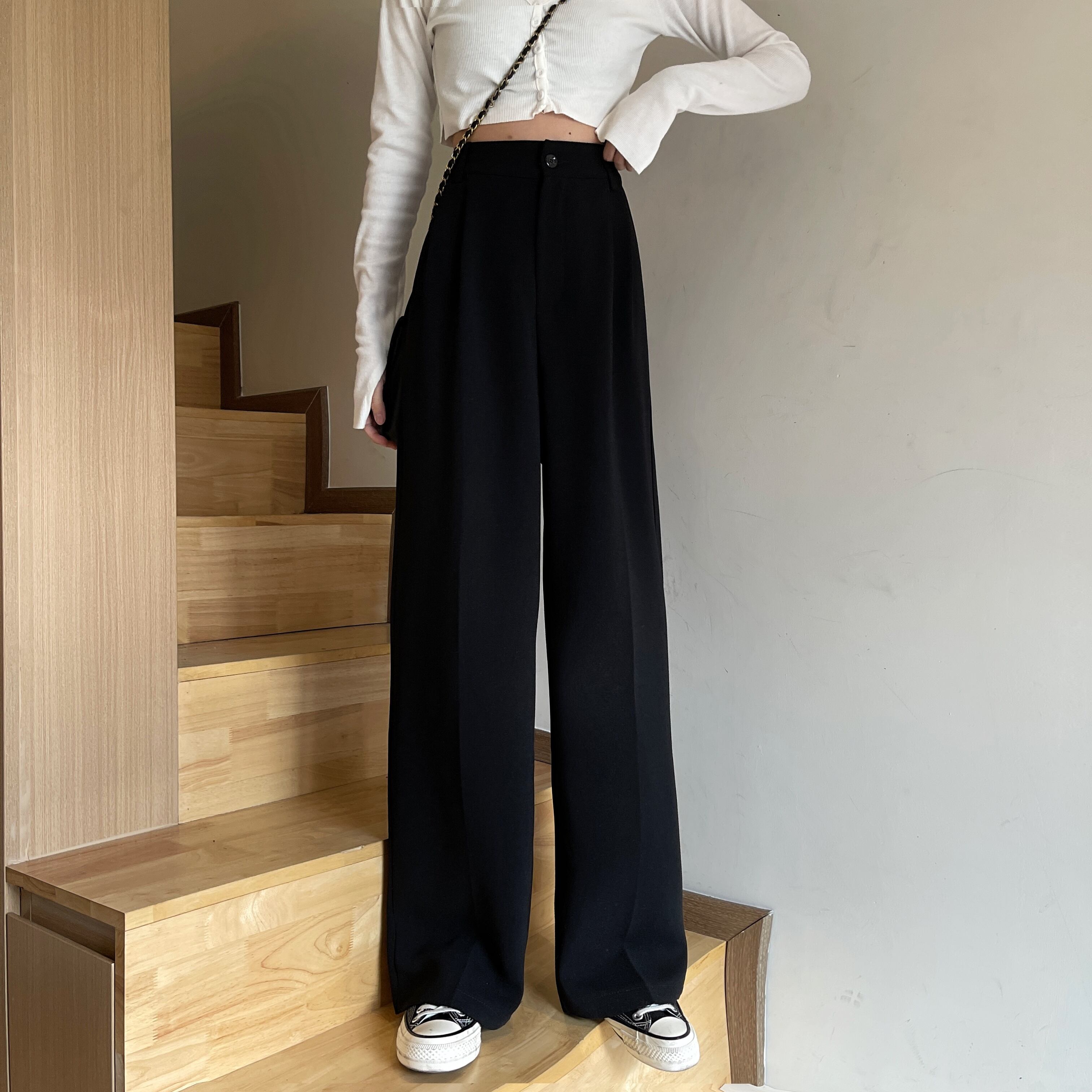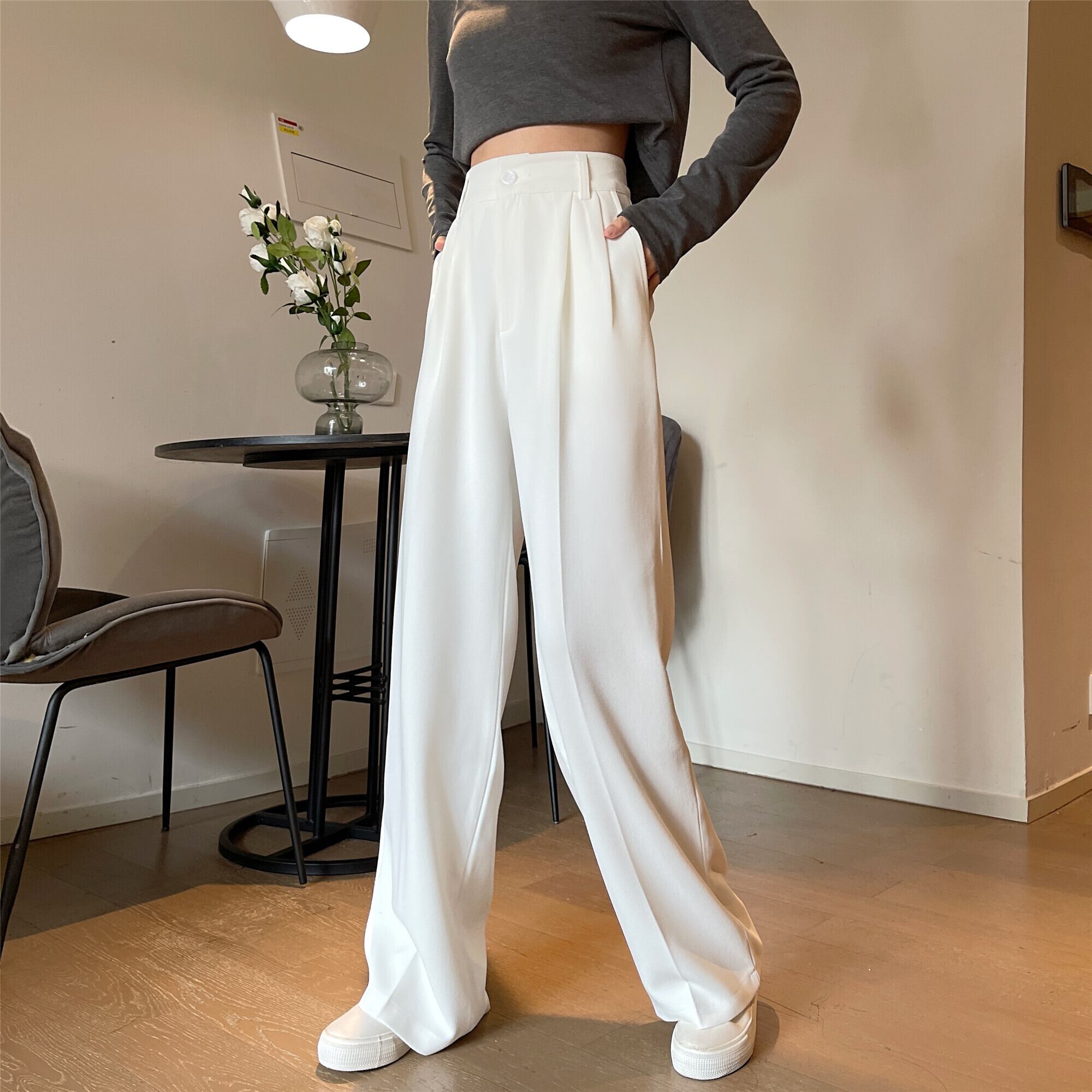 ワイドレッグパンツ スプリングサマーハイウェストウェストルーズスリムカジュアル 春物 夏物 ワイドパンツ YY-ファッション93957404235