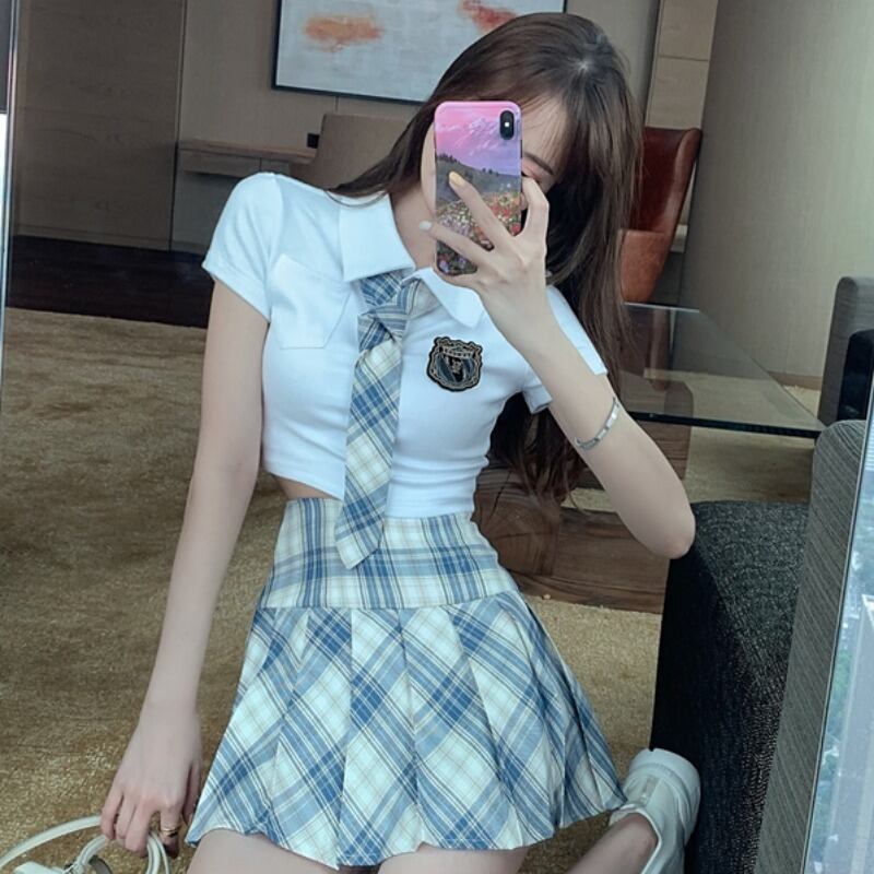 スタイル格子柄スカート スプリングサマーハイウェストウェスト薄手Aラインプリーツショート 春物 夏物 YY-ファッション14484612808