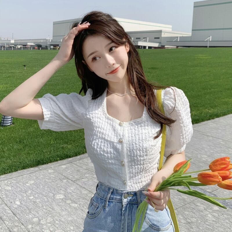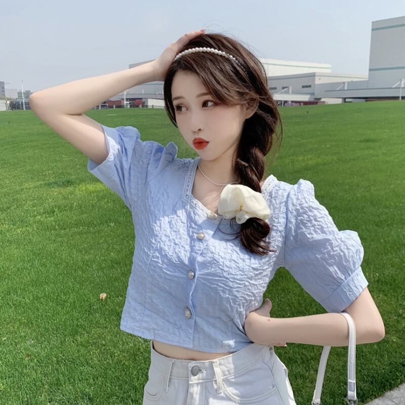 スリーブスリムブラウス サマーシャツ レディース 夏物 スクウェア YY-ファッション82583233920