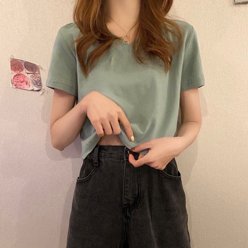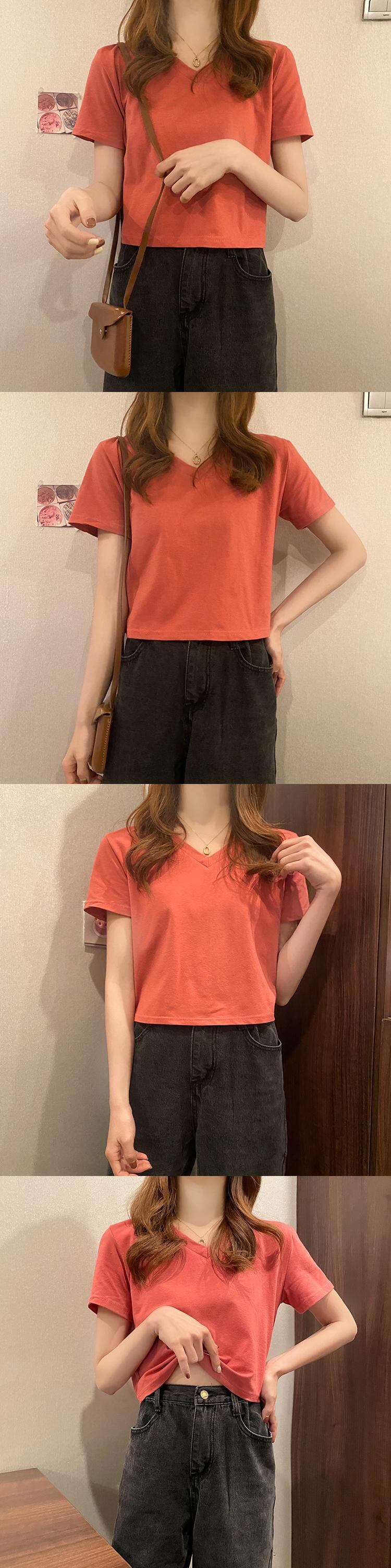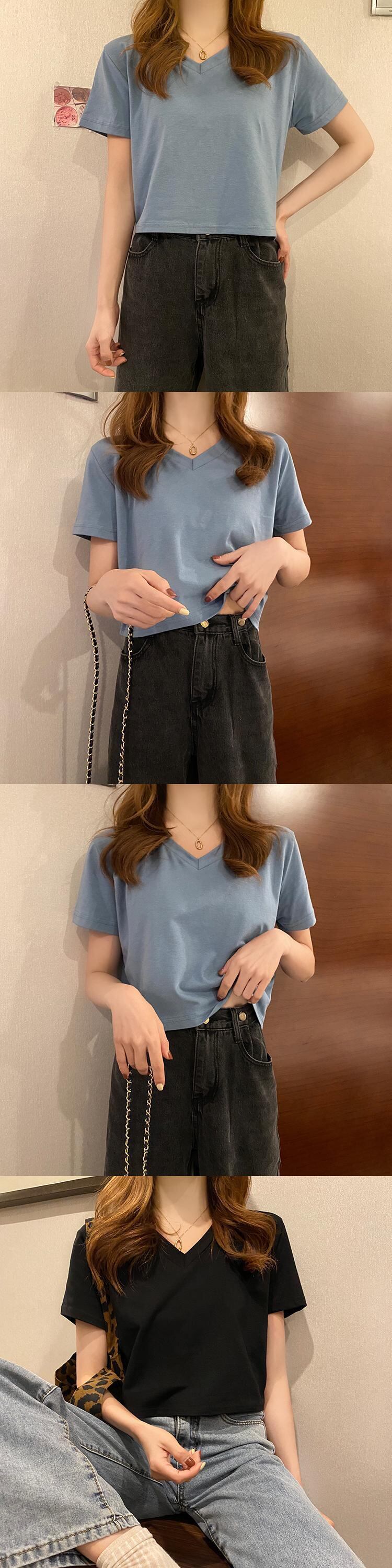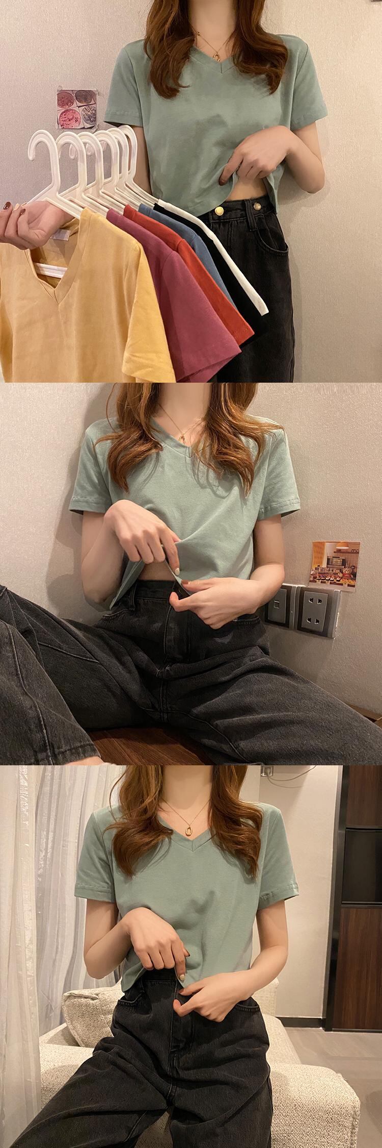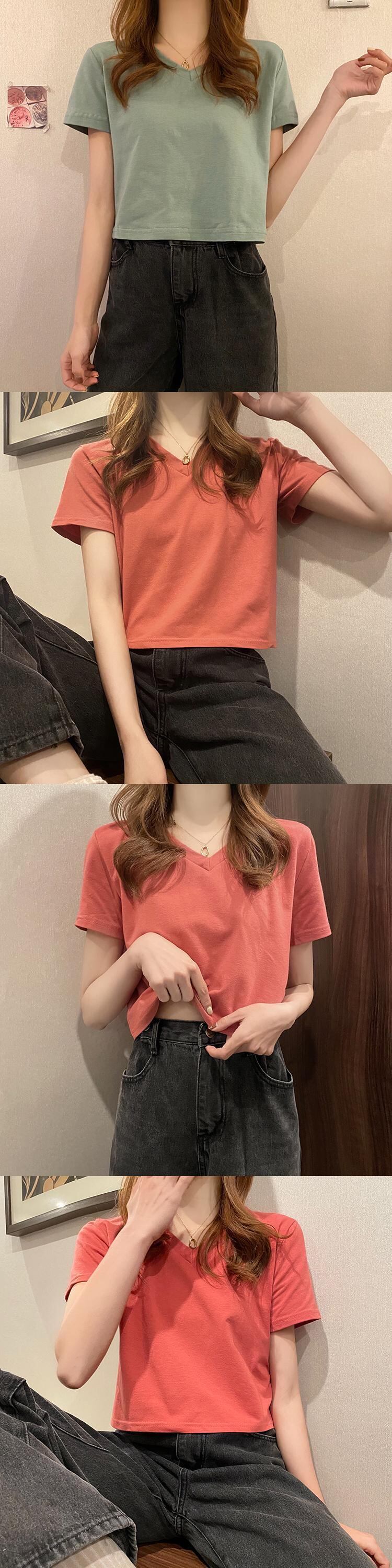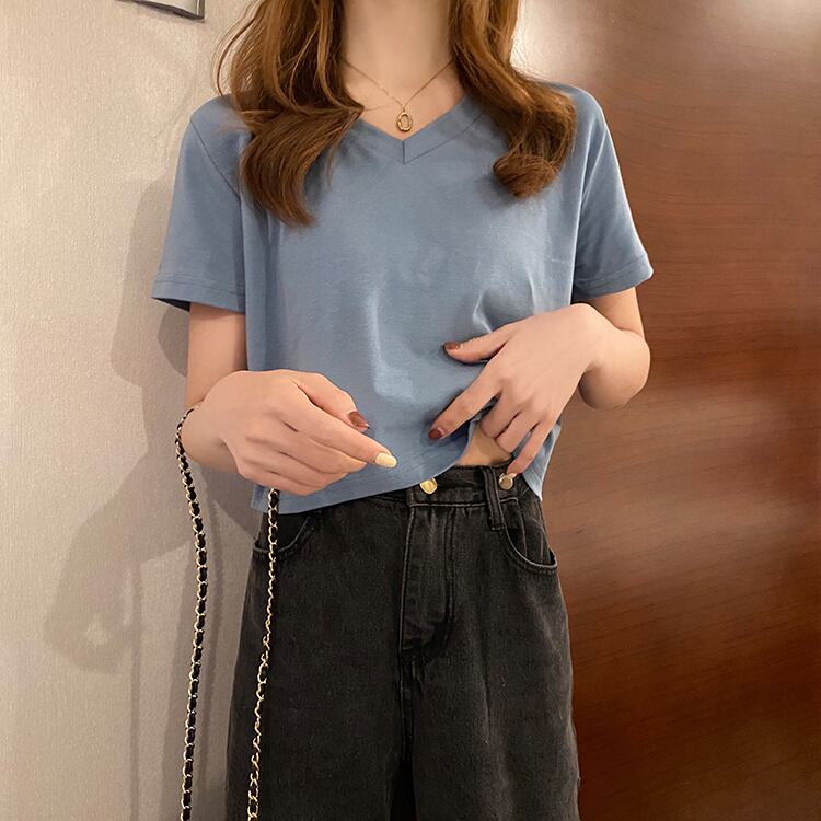 VネックショートTシャツ シャツ スプリングオータムスタイルルーズホワイトトップス 春物 秋物 YY-ファッション13033704947