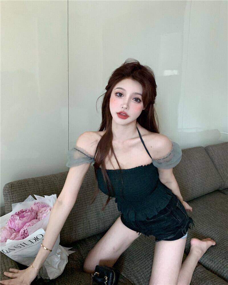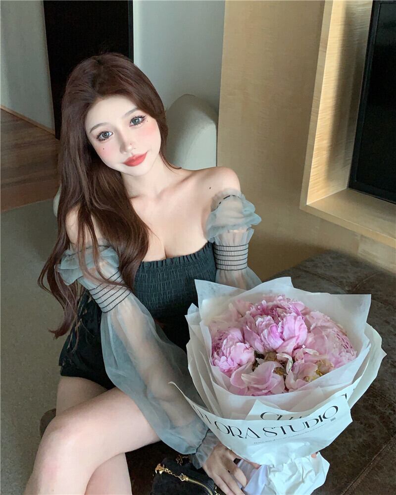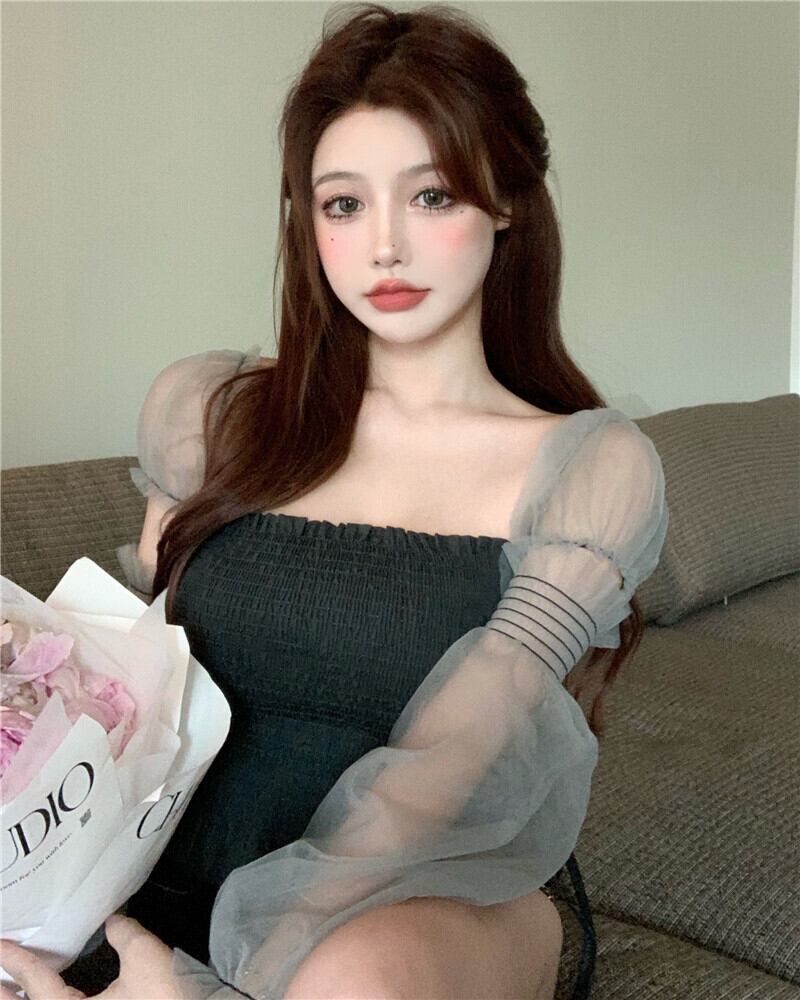 メッシュシャツ ショートカラーサマートップス ロング ランタンスリーブ 夏物 スクウェア YY-ファッション55302331076