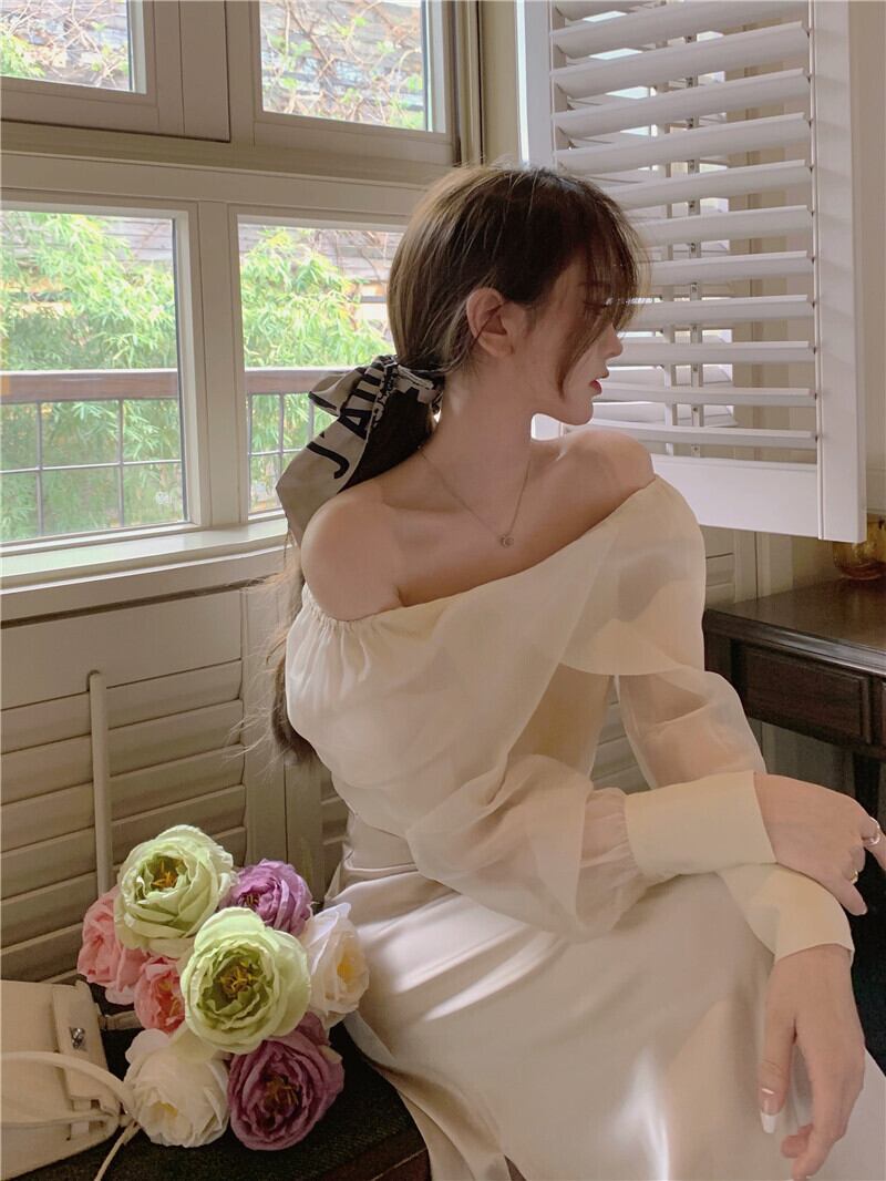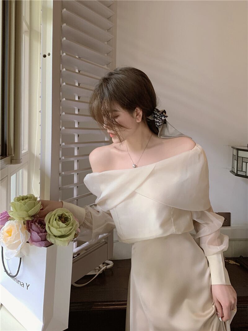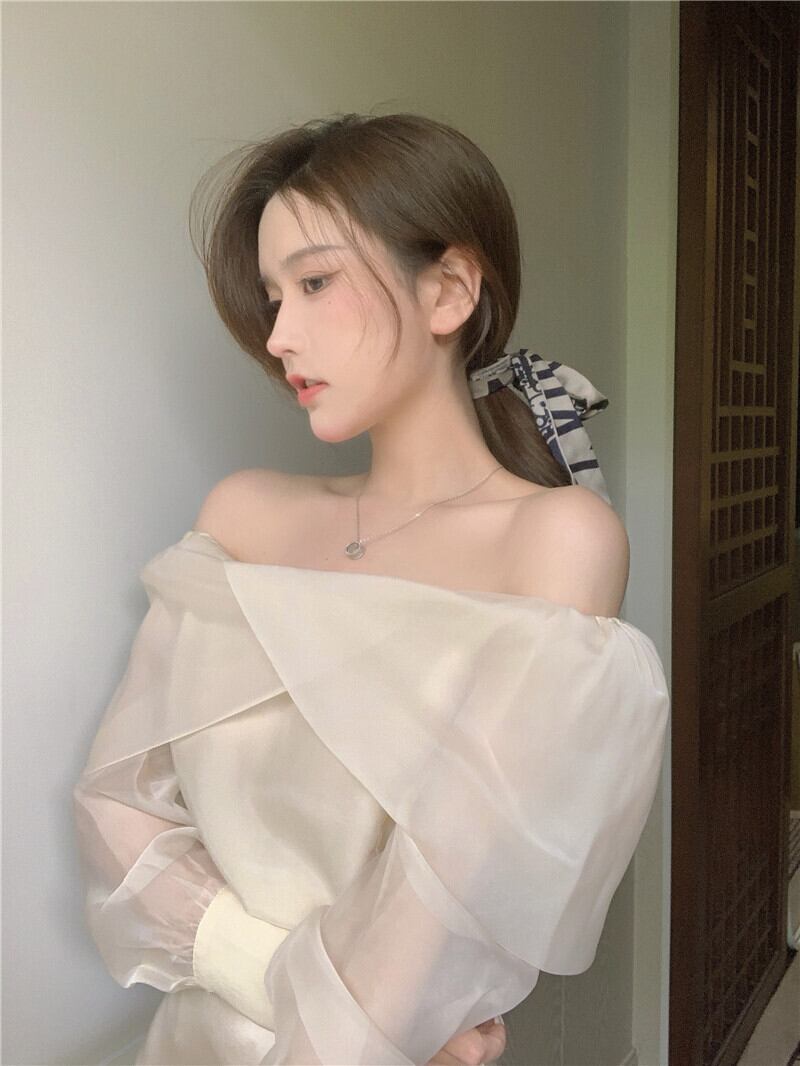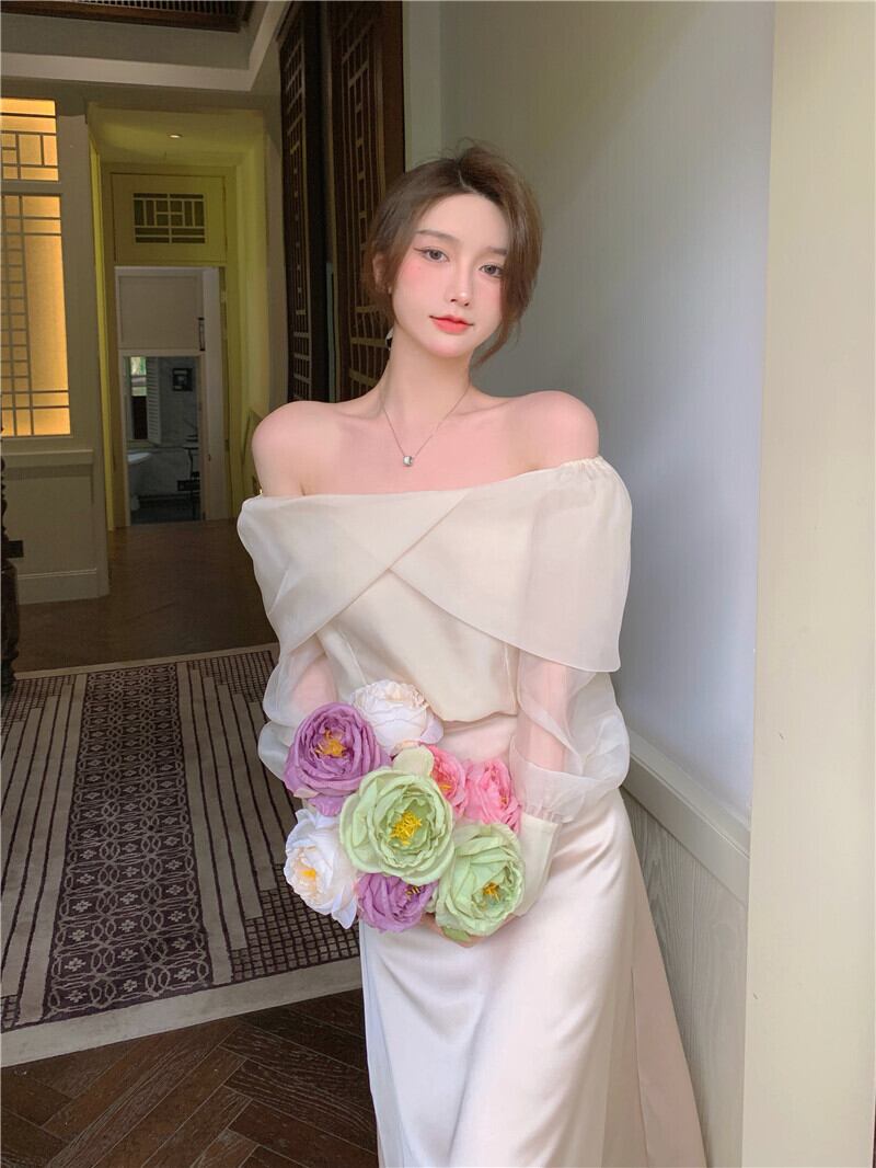 セット ストラップレスシフォントップス ハイウェストAラインスカート YY-ファッション68578908349