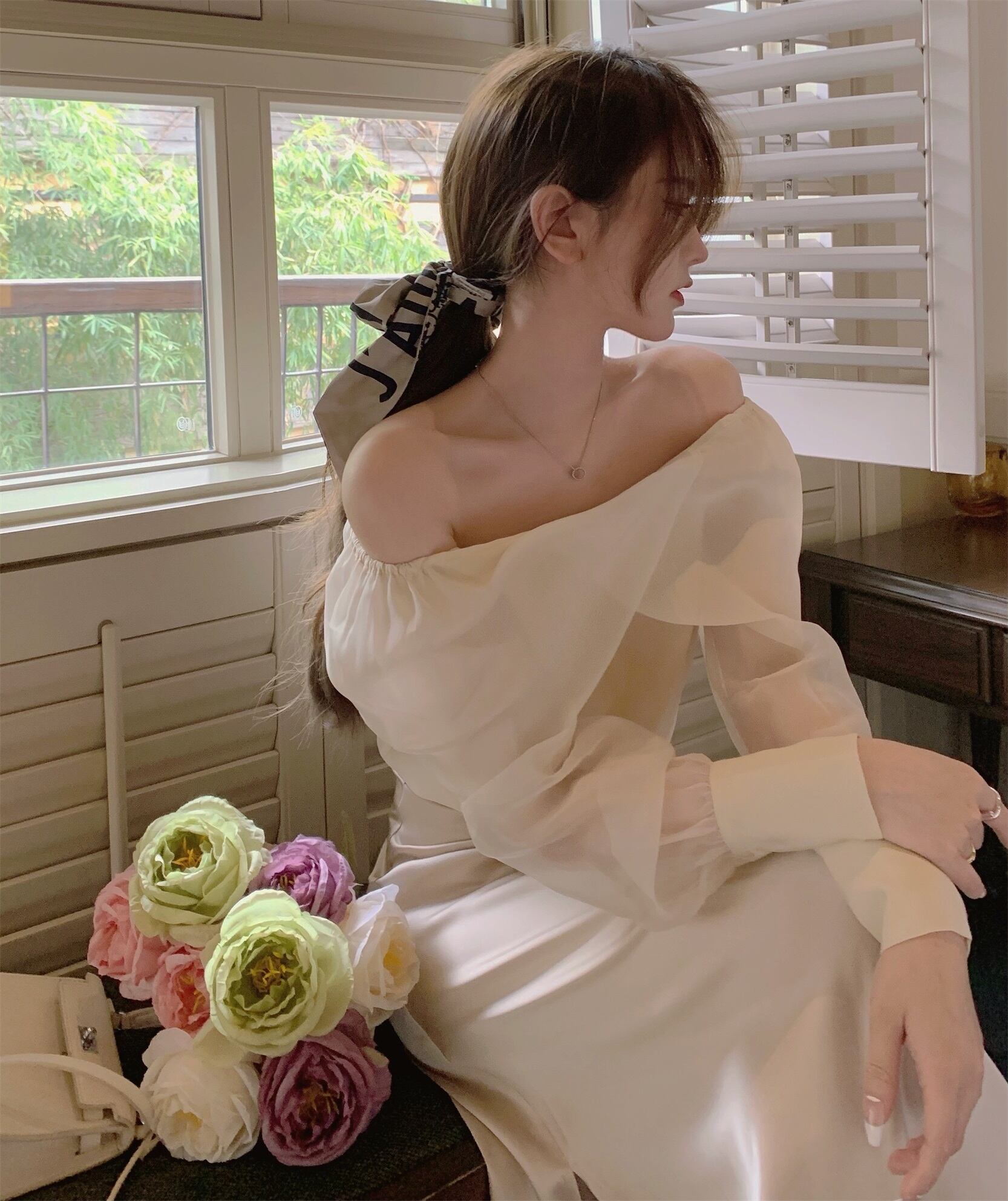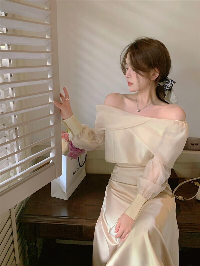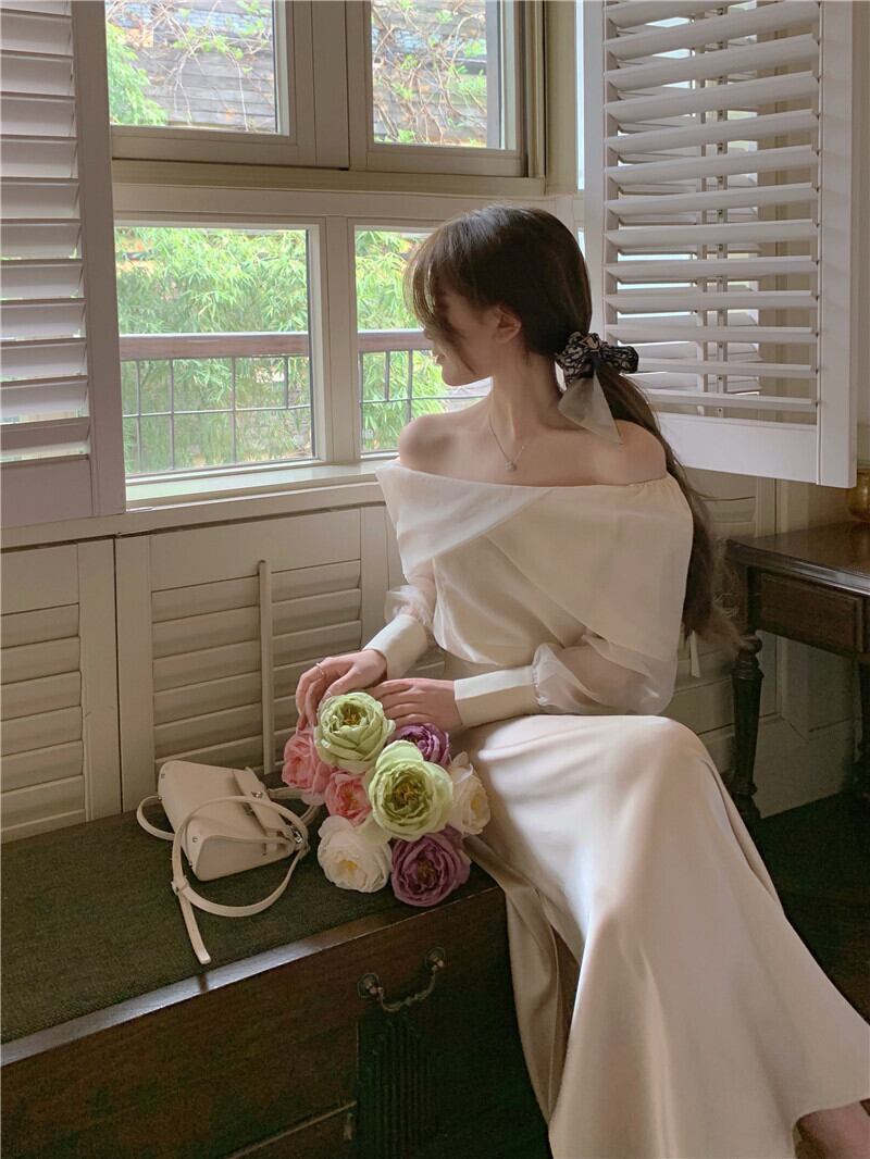 セット ストラップレスシフォントップス ハイウェストAラインスカート YY-ファッション68578908349