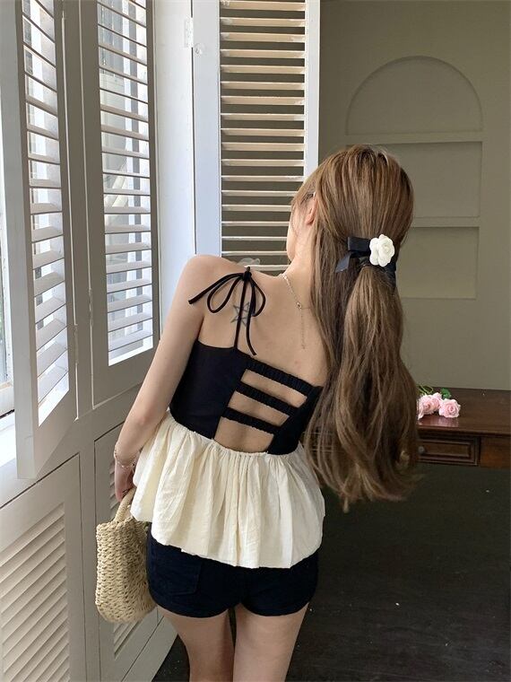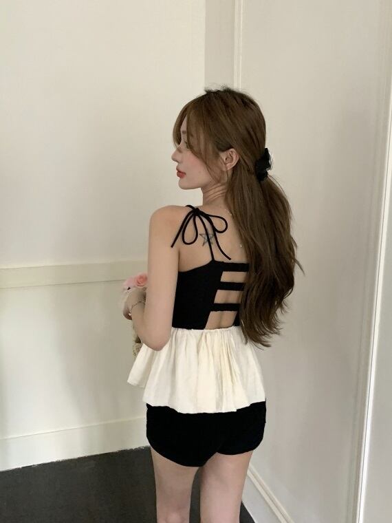 ストラップ サマーショートノースリーブバックトップス 大人ガーリー スウィート キュート カジュアル 夏物 ステッチ YY-ファッション68651435261