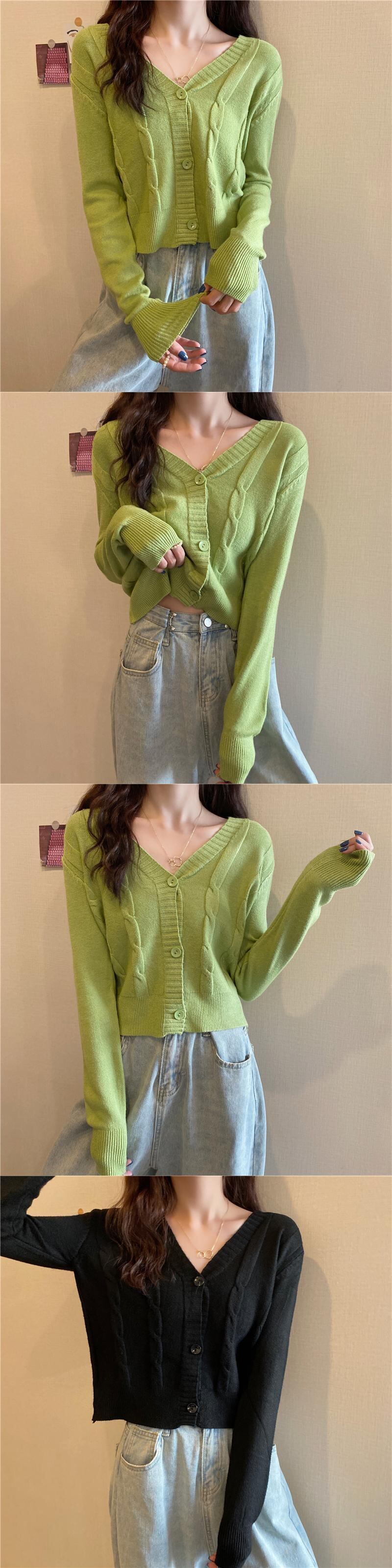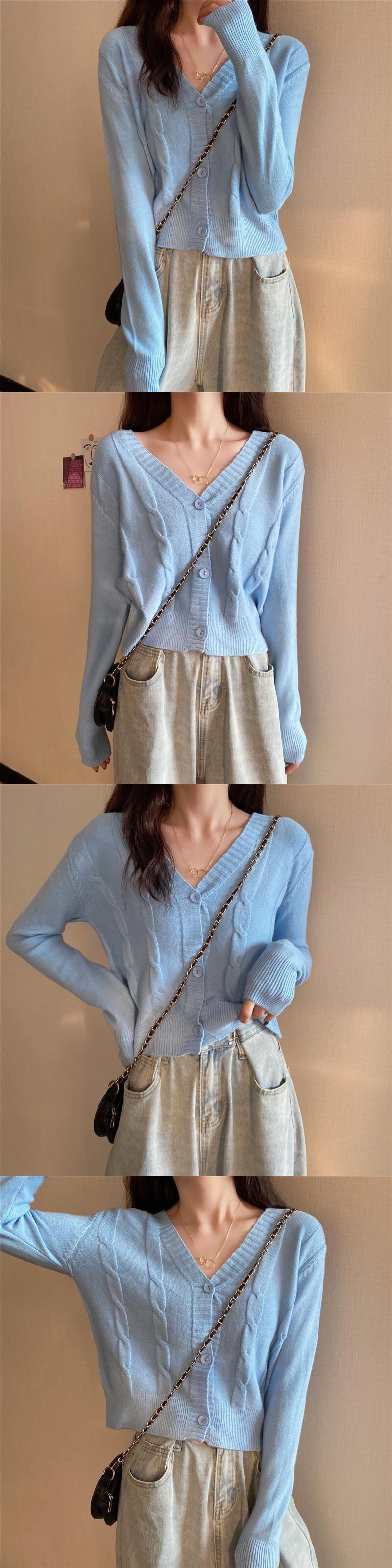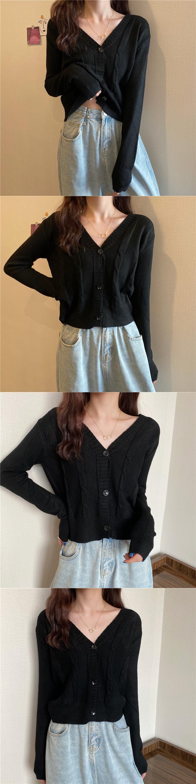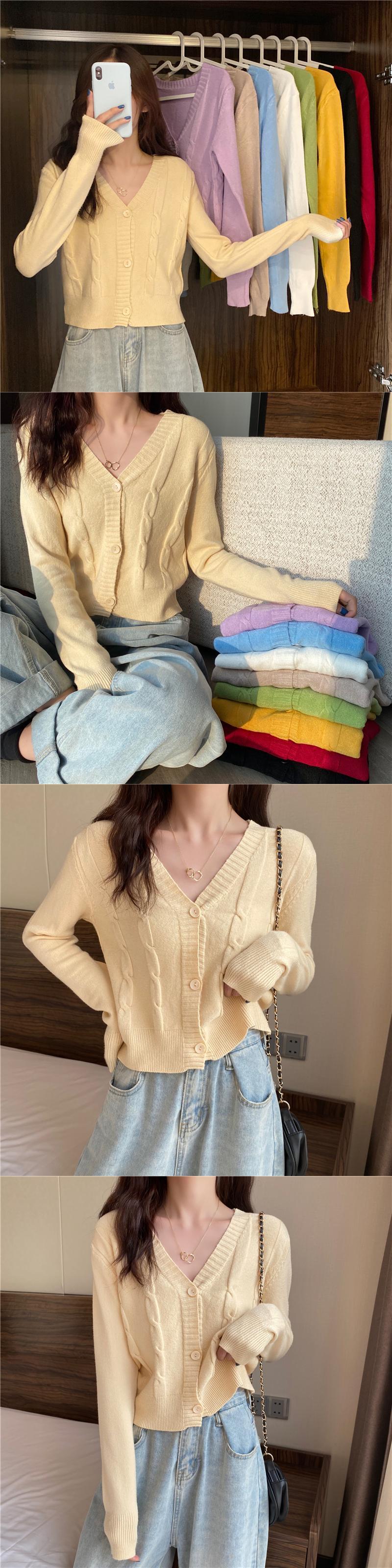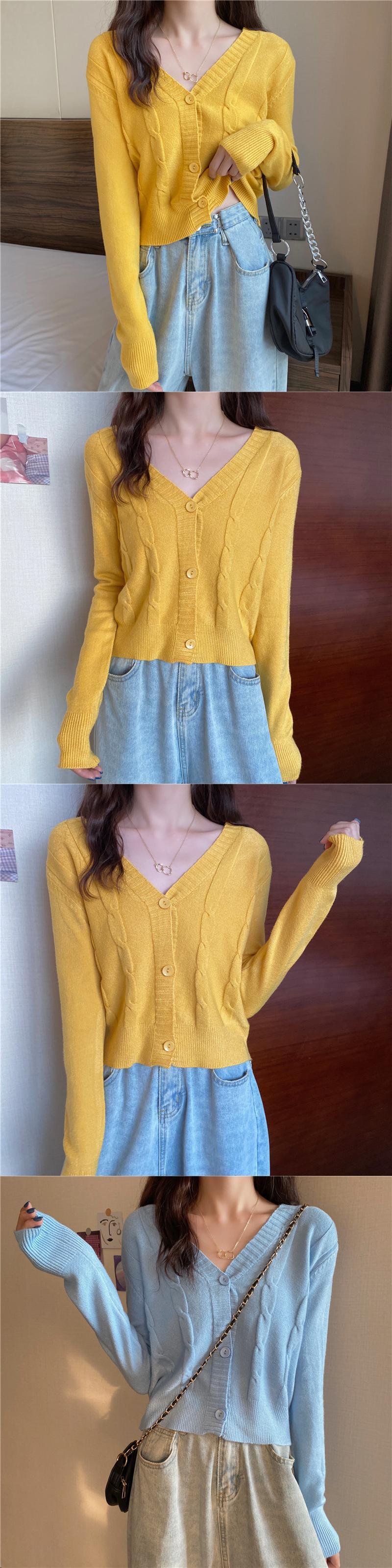 Vネックカーディガンホワイトセーター レディーススプリングオータムハイウェストウェストショートニットジャケット 春物 秋物 YY-ファッション43275969393