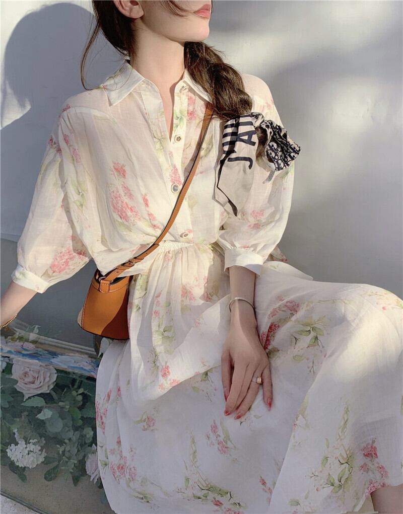サマースリーブシャツ ハイウェストウェストスカート 夏物 YY-ファッション67722255808