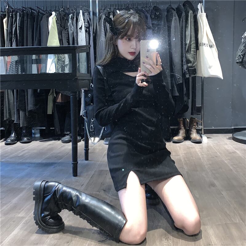 ブラックドレス オータムウィンタースカート ウェスト 秋物 冬物 YY-ファッション70978733705