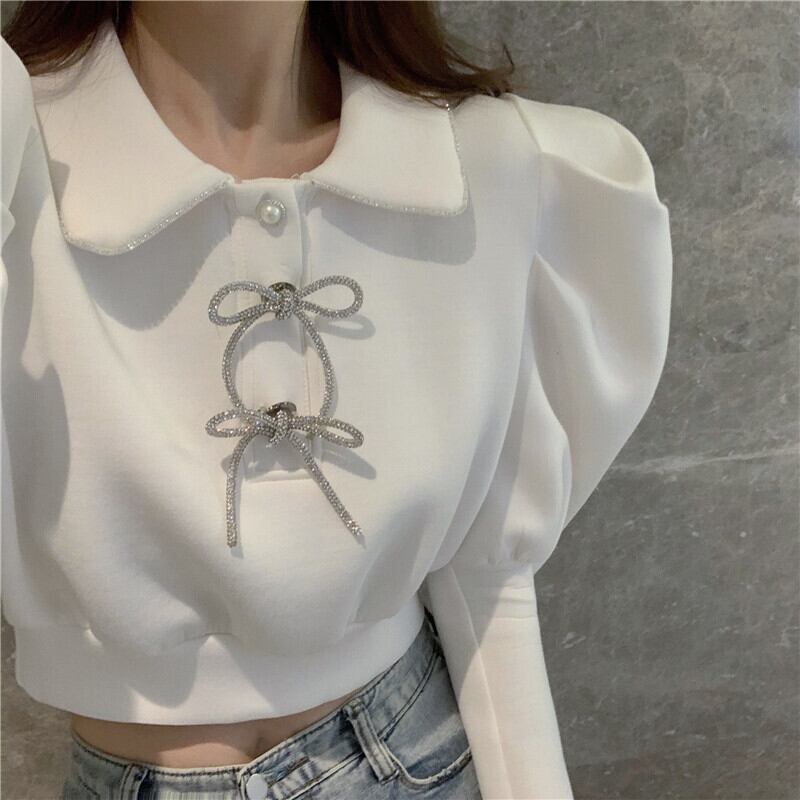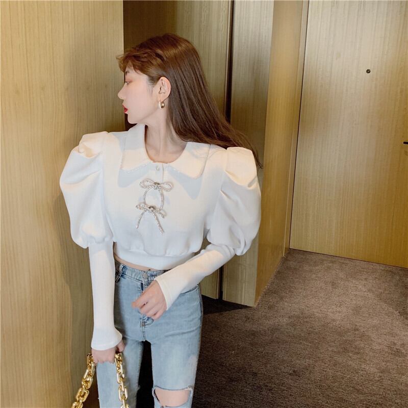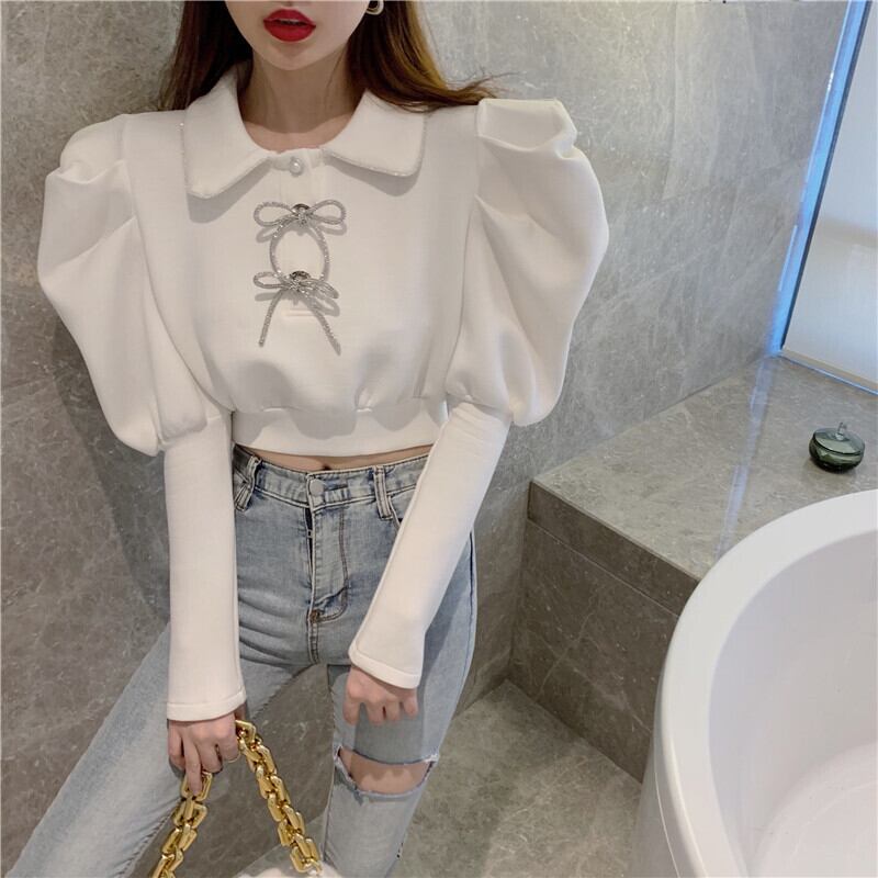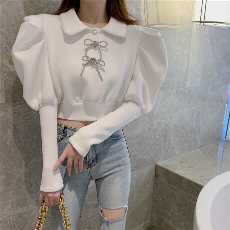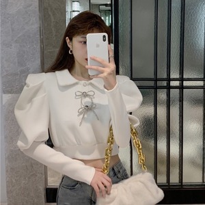スリーブトップス オータムウィンターウェストショートセーター ロング リボン 秋物 冬物 YY-ファッション88077604476