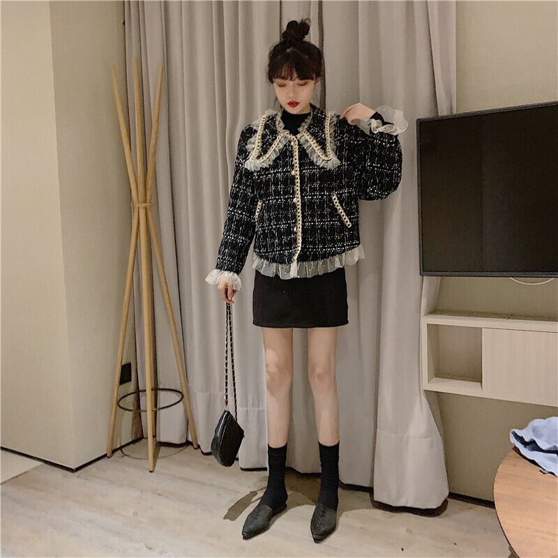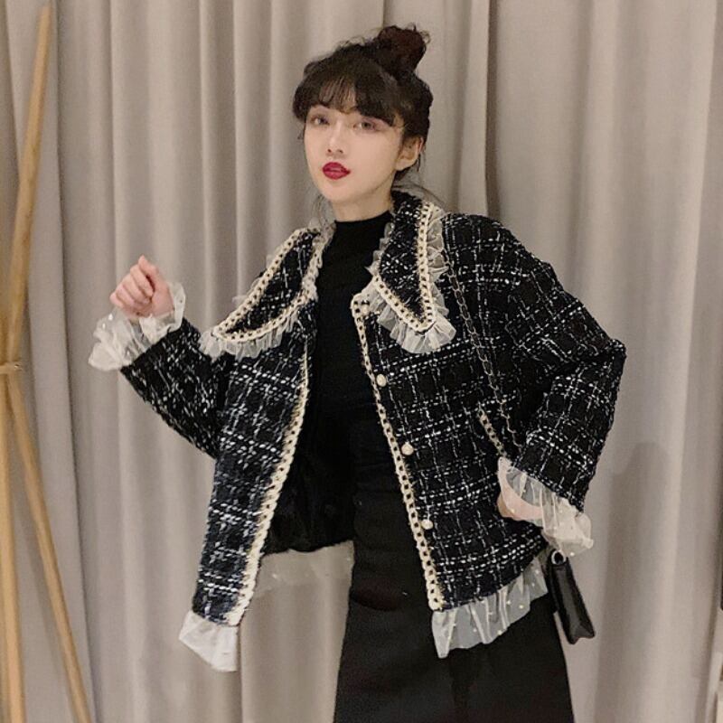 格子柄ルーズジャケット オータムウィンターカジュアルカーディガントップス ロング 秋物 冬物 YY-ファッション28926097523