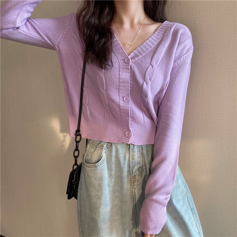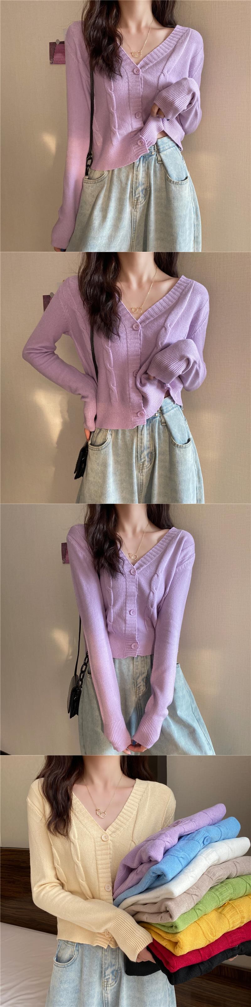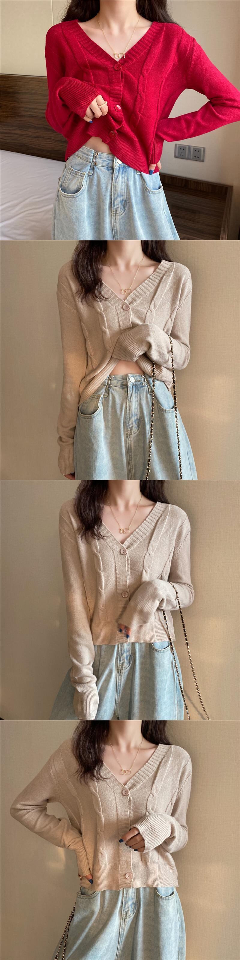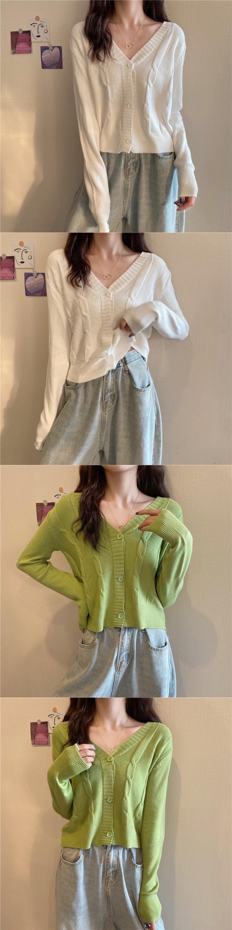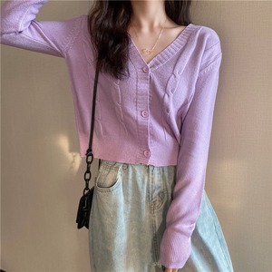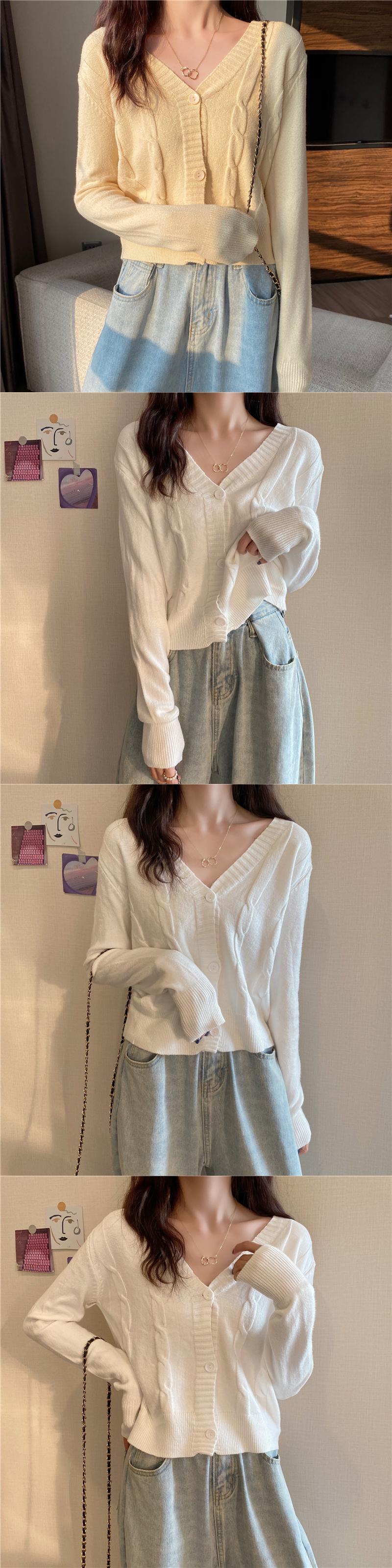 Vネックカーディガンホワイトセーター レディーススプリングオータムハイウェストウェストショートニットジャケット 春物 秋物 YY-ファッション91162122046