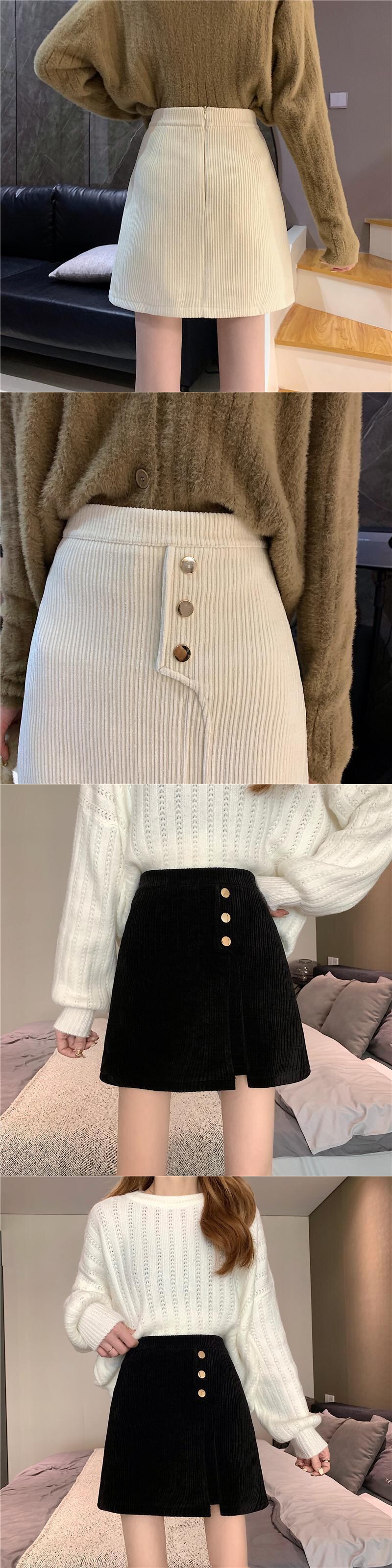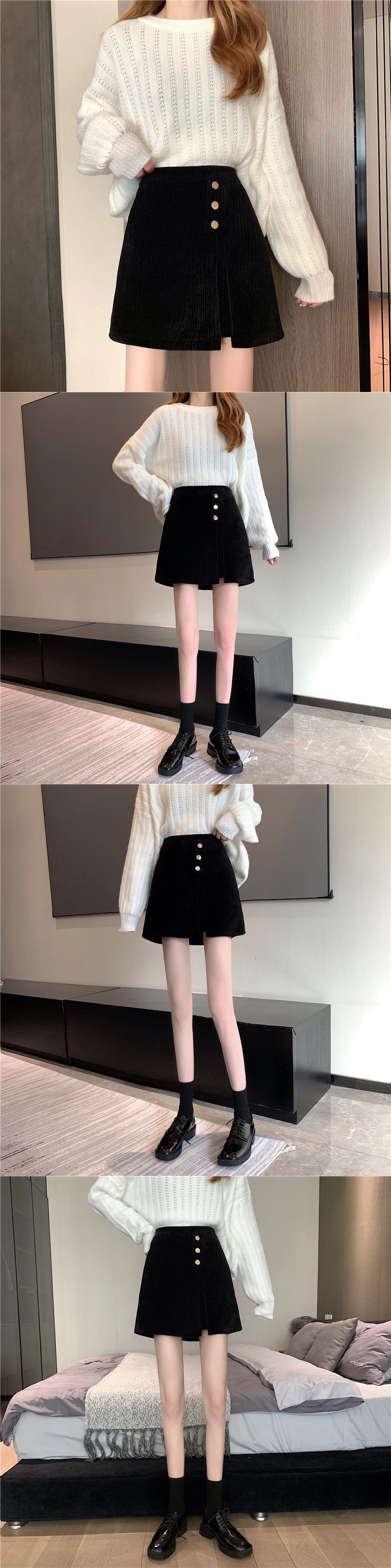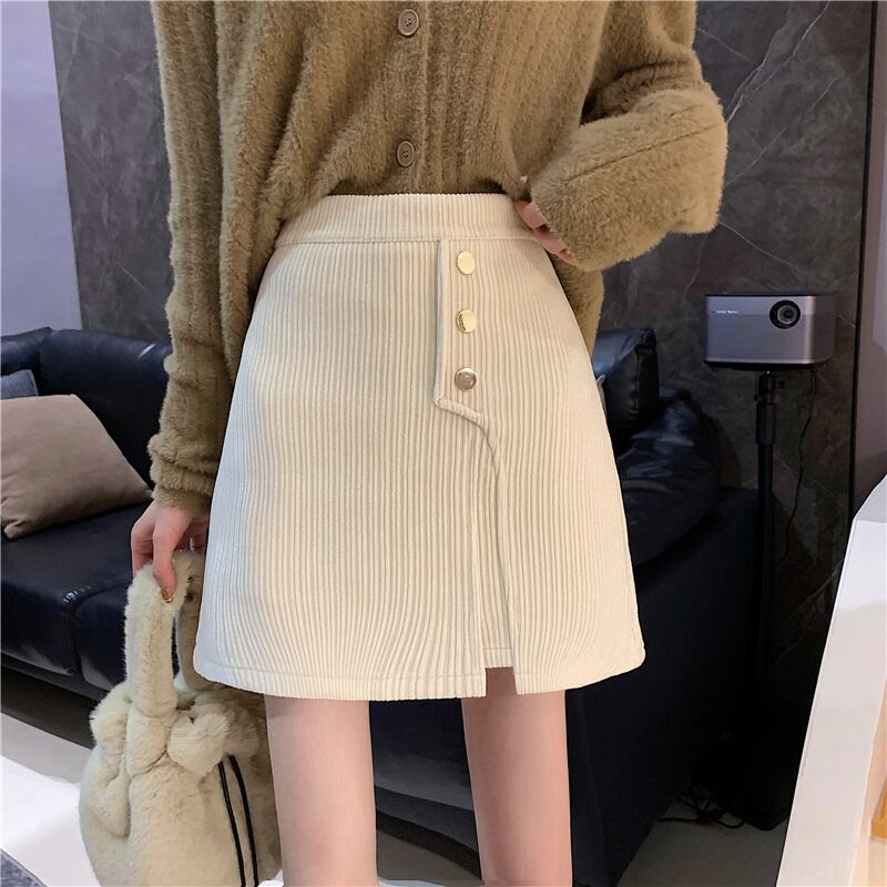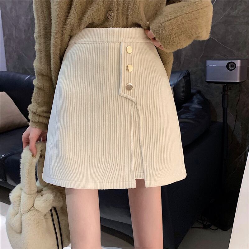 スプリングハイウェストウェスト薄手ゴールドバックルコーデュロイAラインスカート 春物 YY-ファッション58750898427
