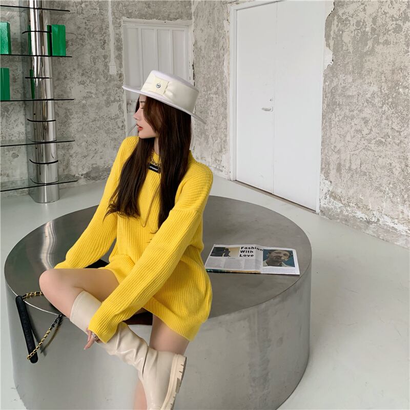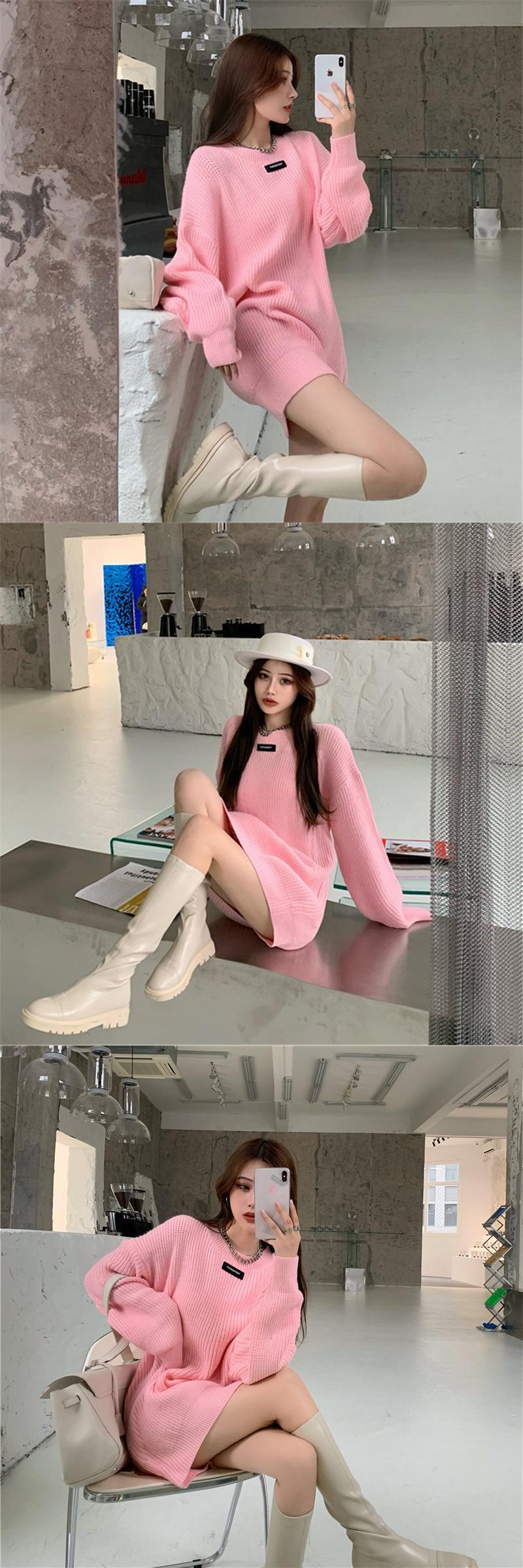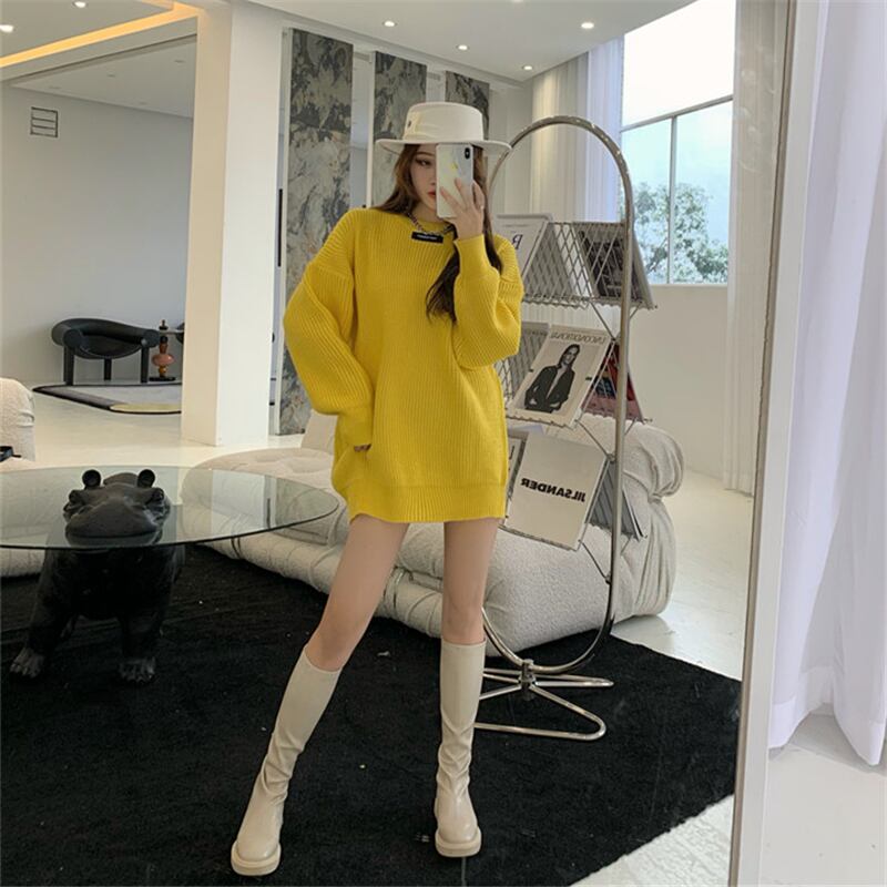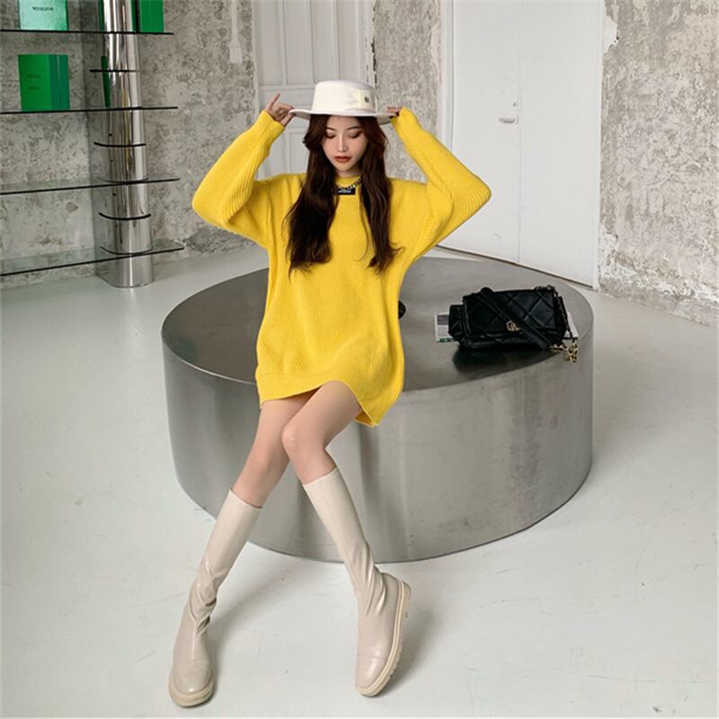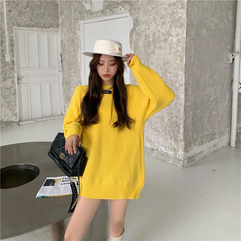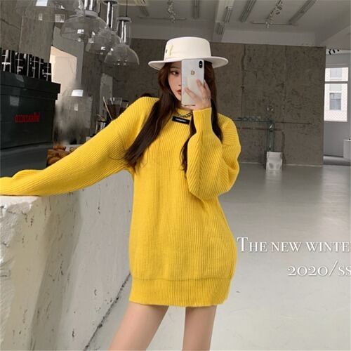 オータムウィンタースタイルルーズラウンドネック長袖スリーブプルオーバー ニットセーター トップス ロング 秋物 冬物 Oネック YY-ファッション31137602777