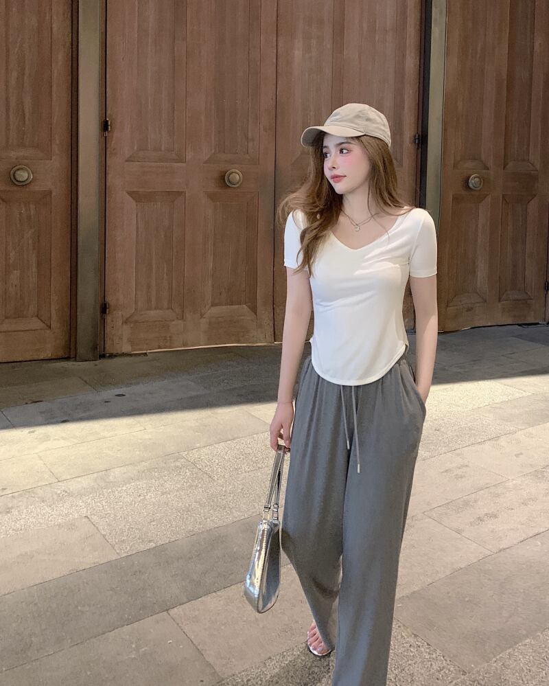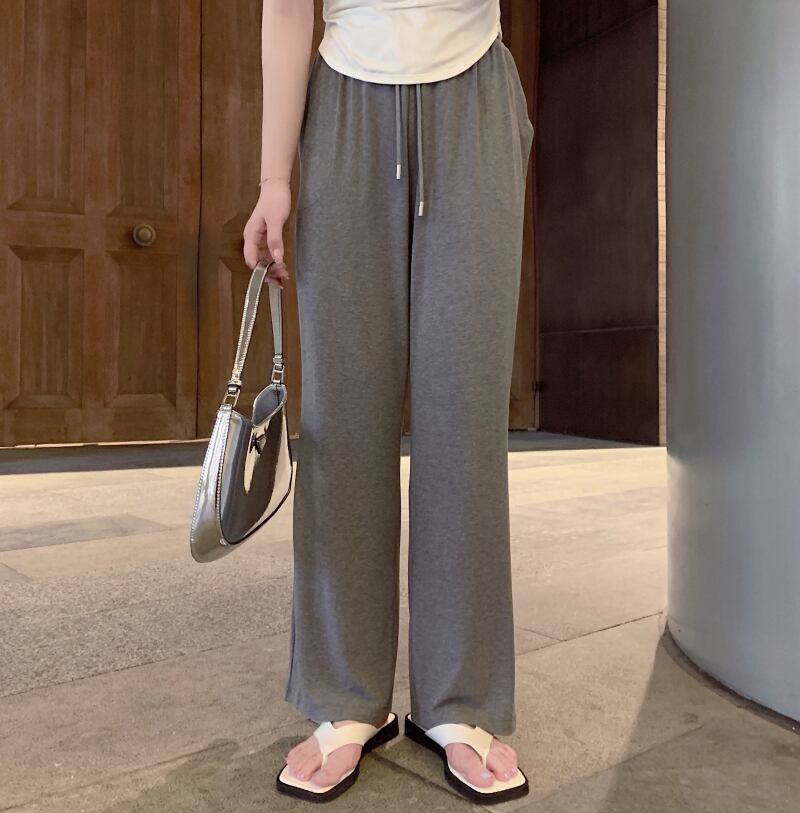 ワイドレッグパンツ ハイウェストウェストスリムグレーサマー薄手カジュアルルーズ 夏物 ワイドパンツ YY-ファッション55388694577