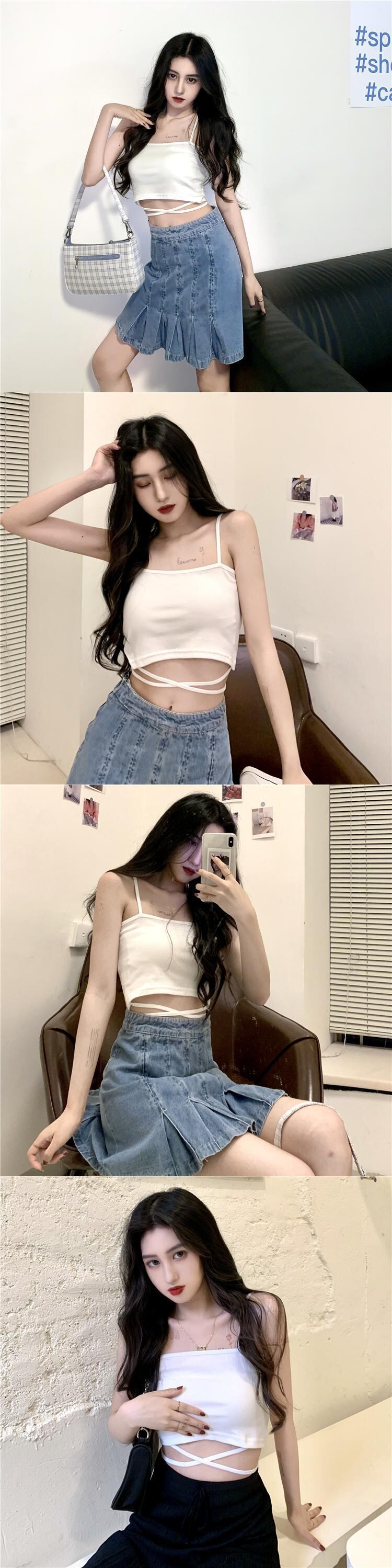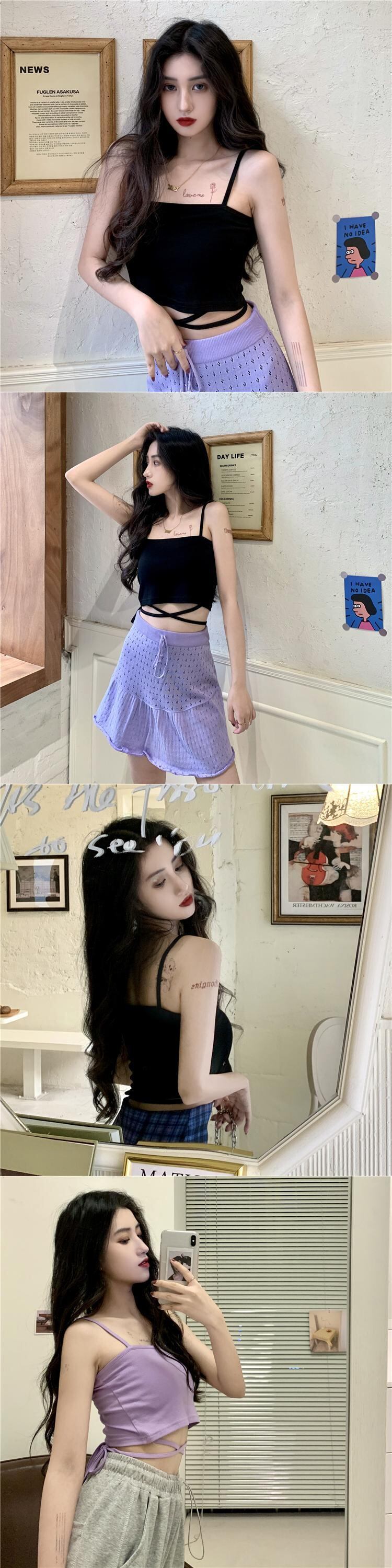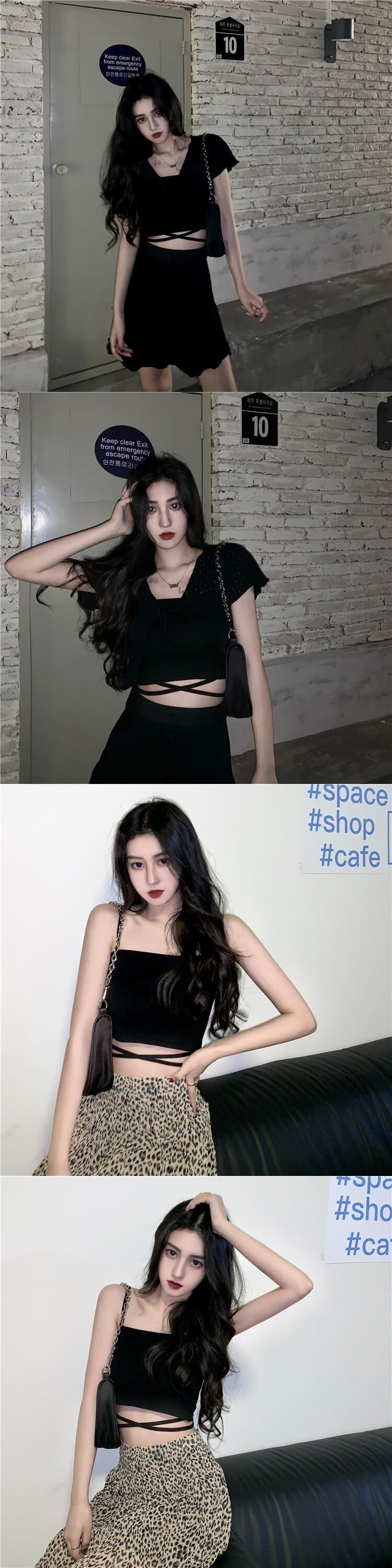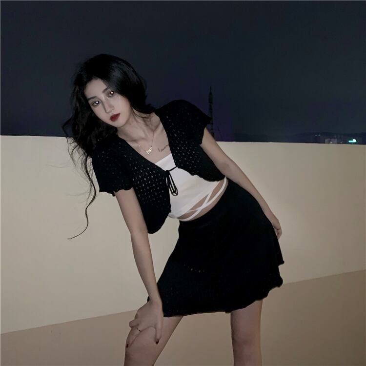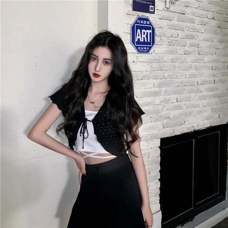 ショートスプリングサマーブラックノースリーブシャツ 春物 夏物 YY-ファッション94446237653