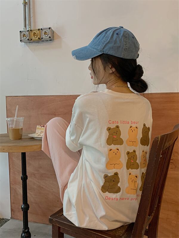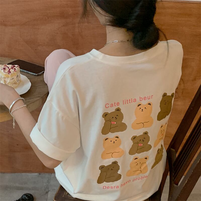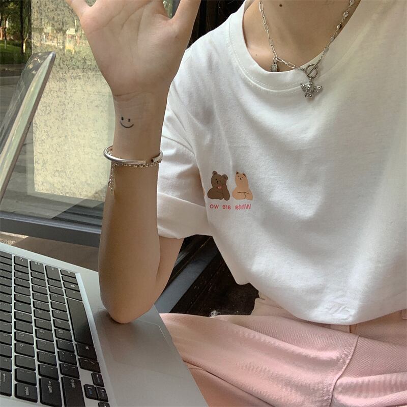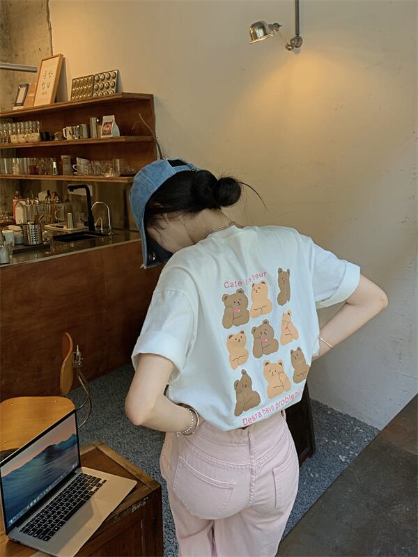 Tシャツ ルーズホワイトプリント柄薄手トップス サマー 夏物 YY-ファッション29515836556