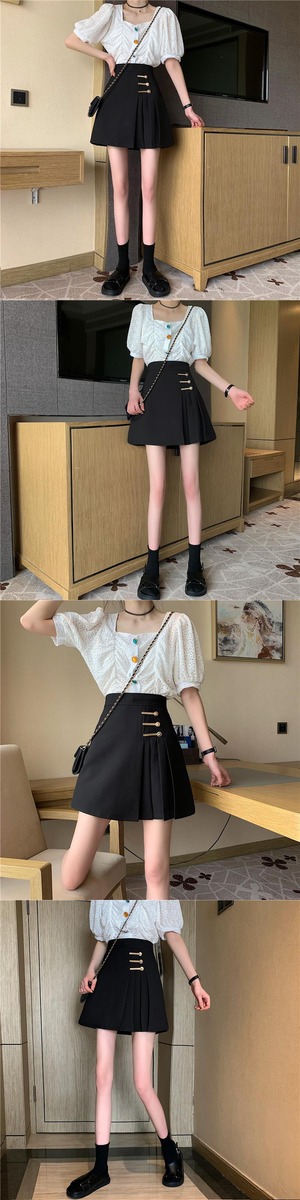 プリーツスカート ウィンターオータムレッドハイウェストウェスト薄手ブラックAライン 秋物 冬物 YY-ファッション53538834202