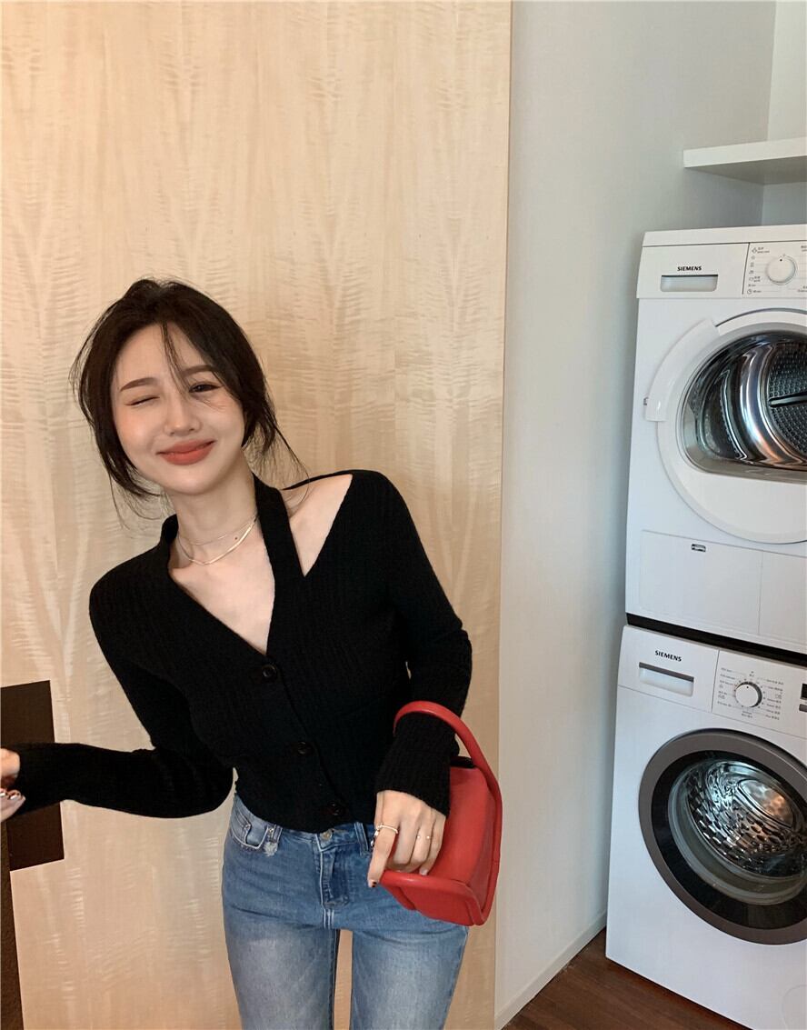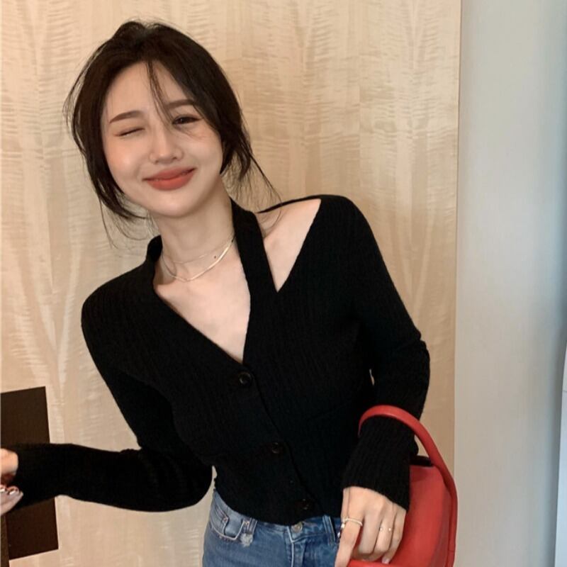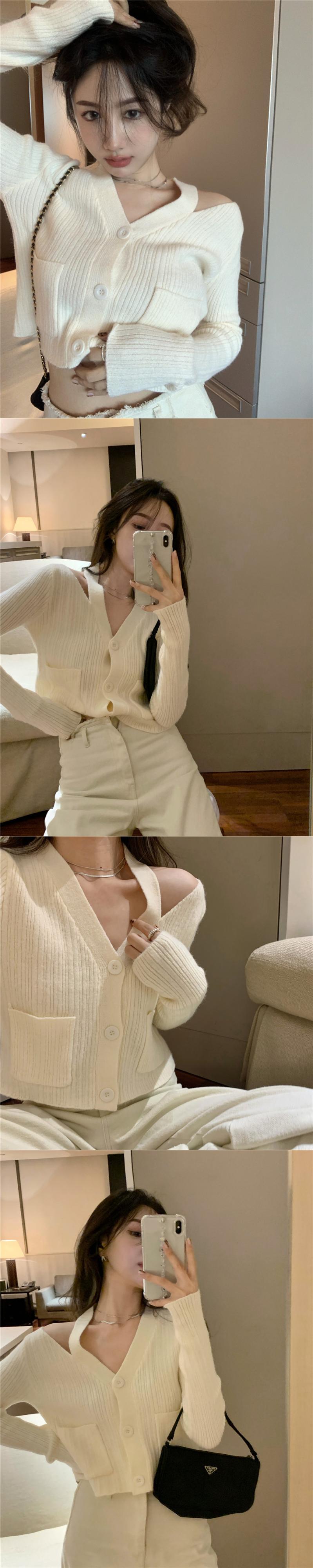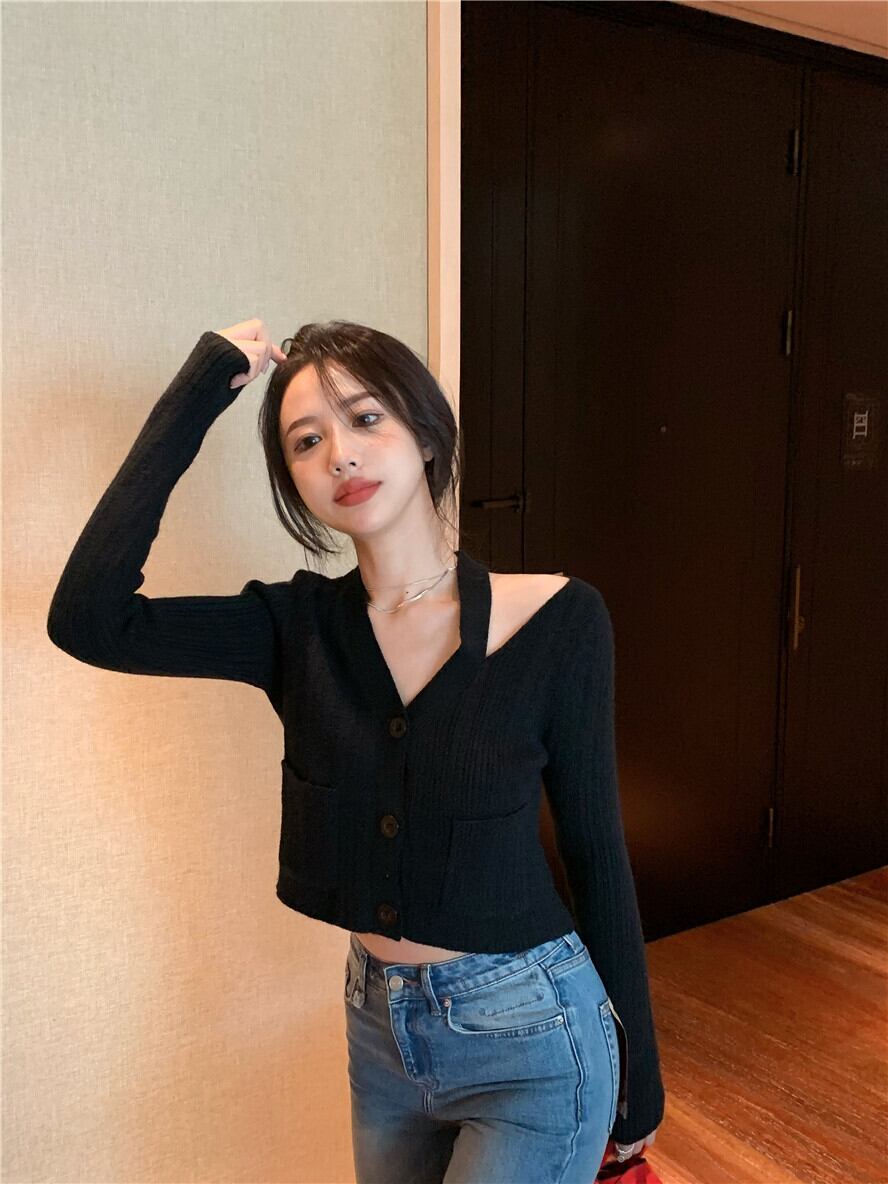ショートVネックスリムニットセーター トップス レディースオータムルーズカーディガンジャケット 秋物 YY-ファッション96105834307