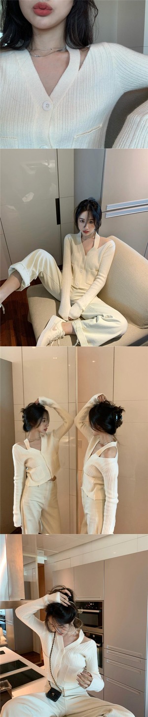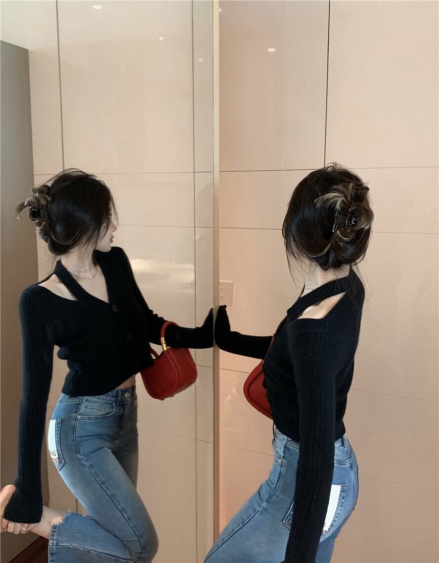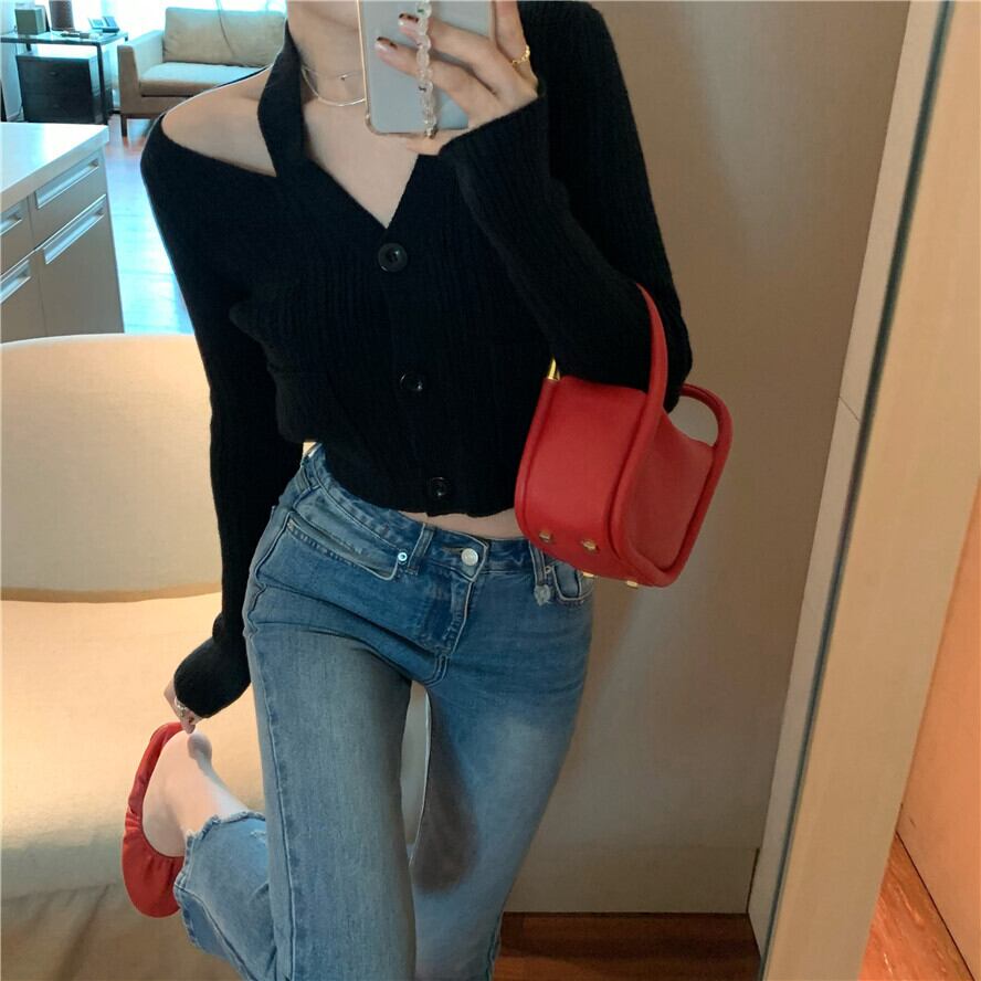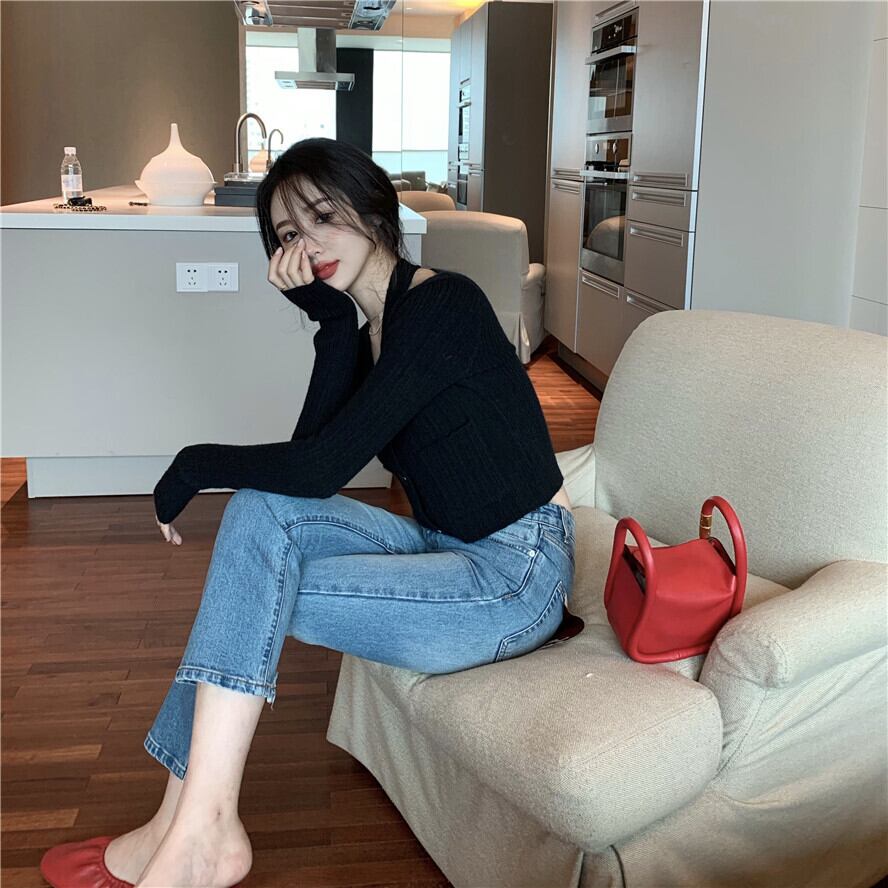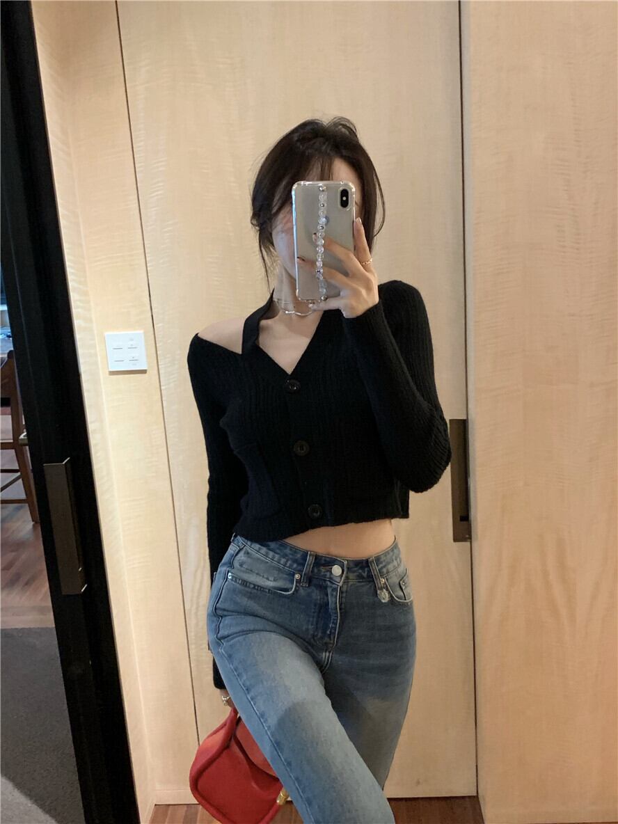 ショートVネックスリムニットセーター トップス レディースオータムルーズカーディガンジャケット 秋物 YY-ファッション96105834307