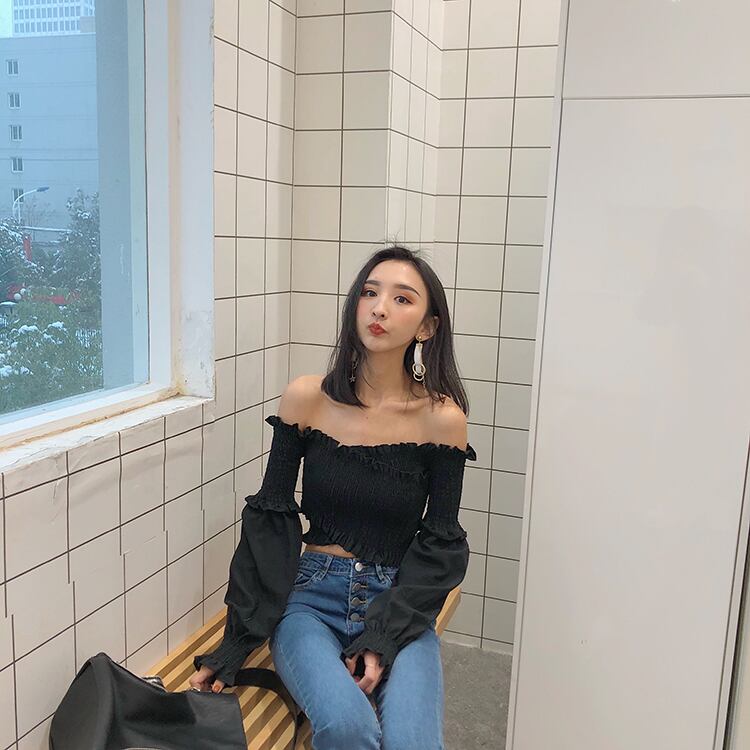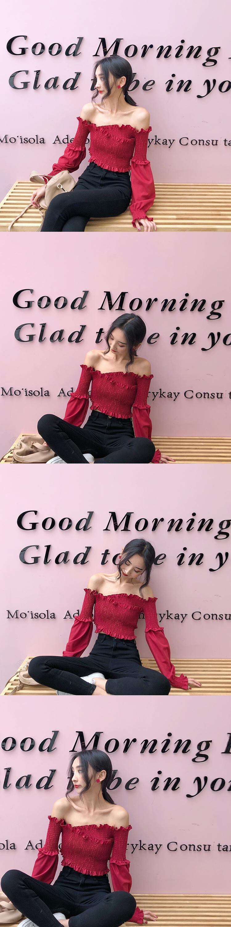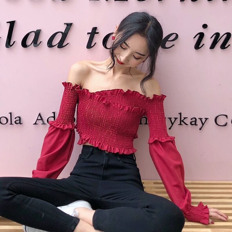 スプリングオータムドレス ストラップレスレースショートトップス 長袖スリーブクロップドシャツ レディース ロング 春物 秋物 YY-ファッション22129560232