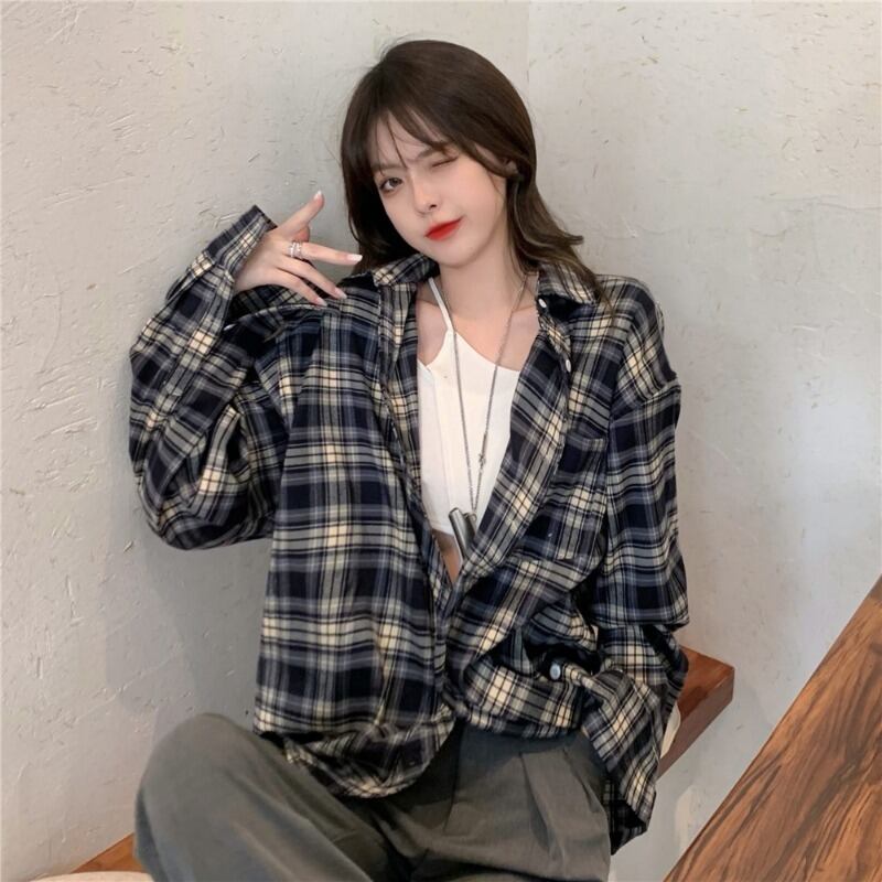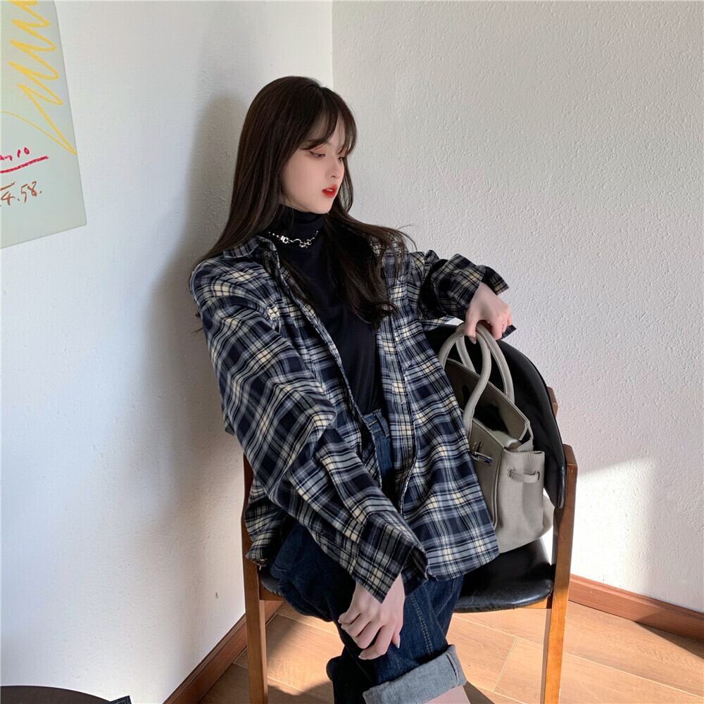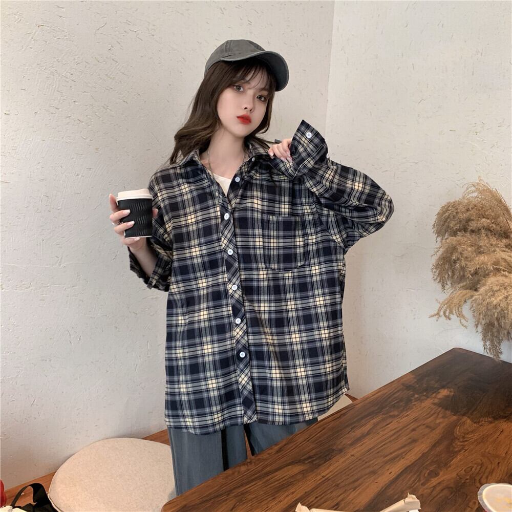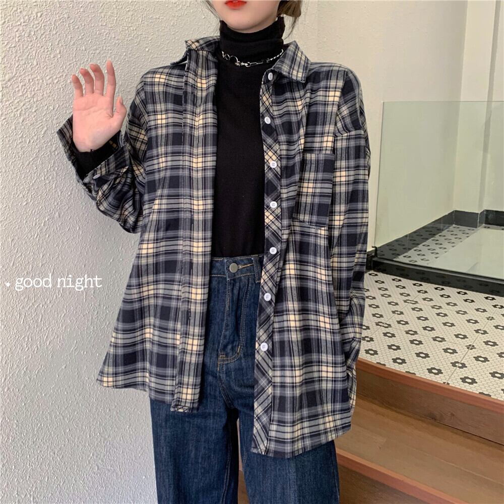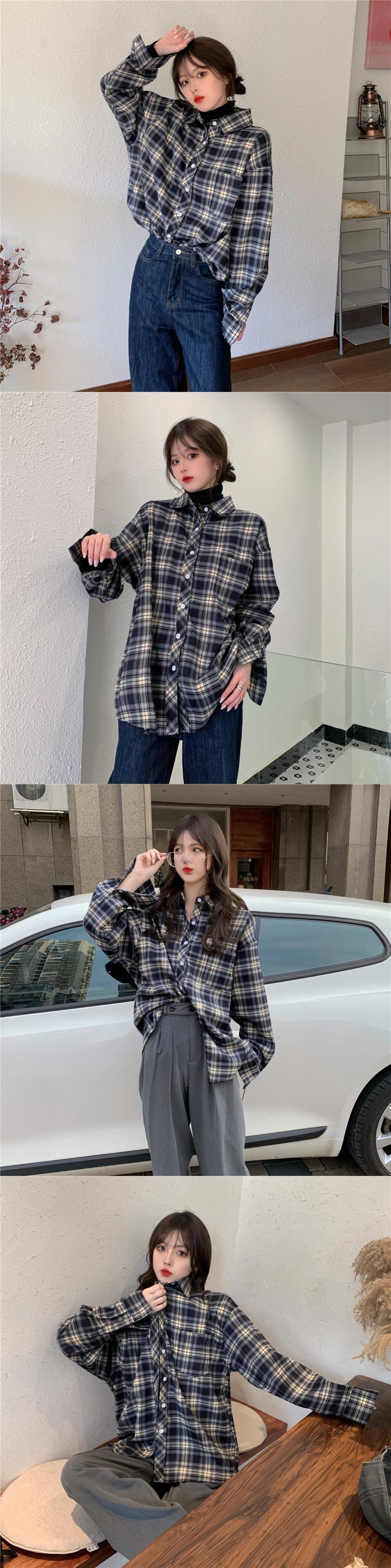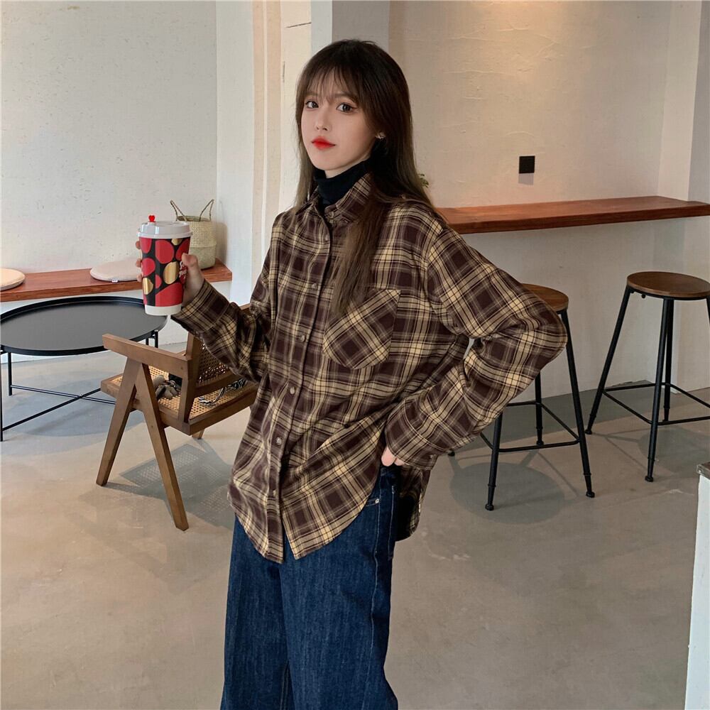 スプリングオータムルーズ格子柄シャツ ロング 春物 秋物 YY-ファッション31580637681
