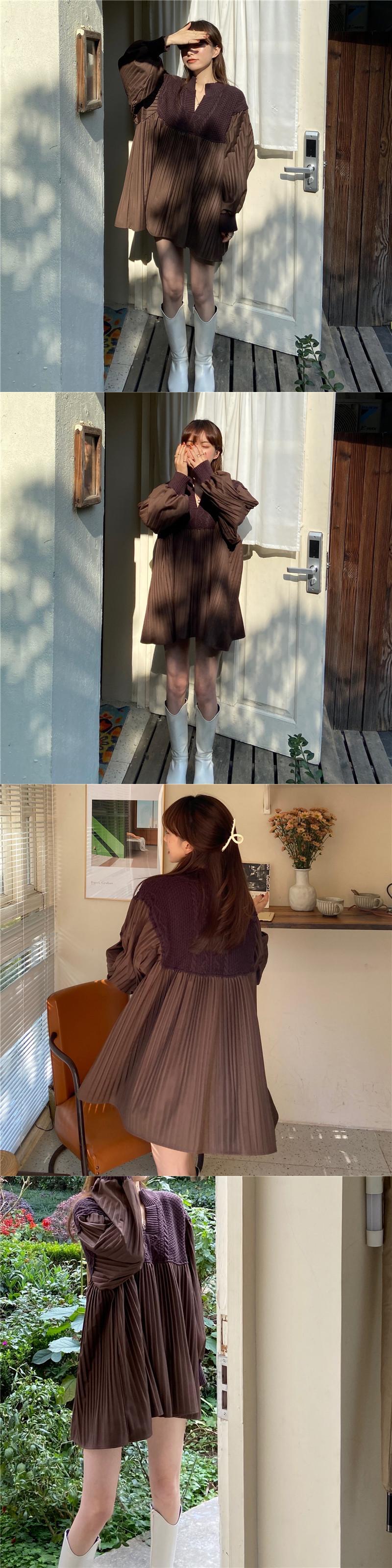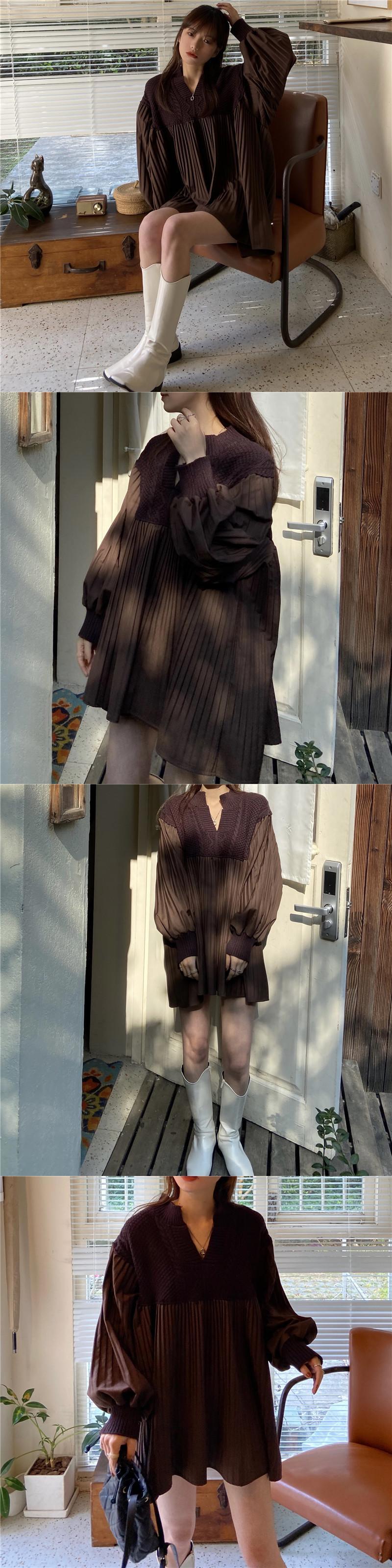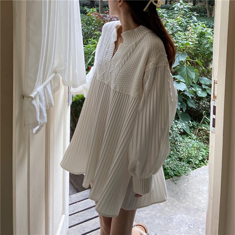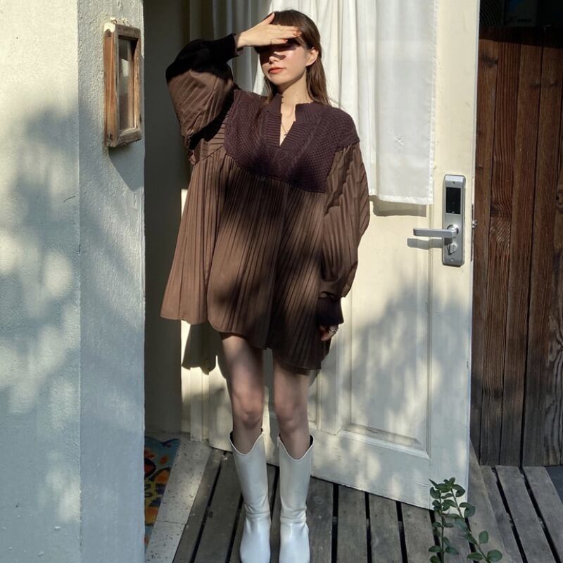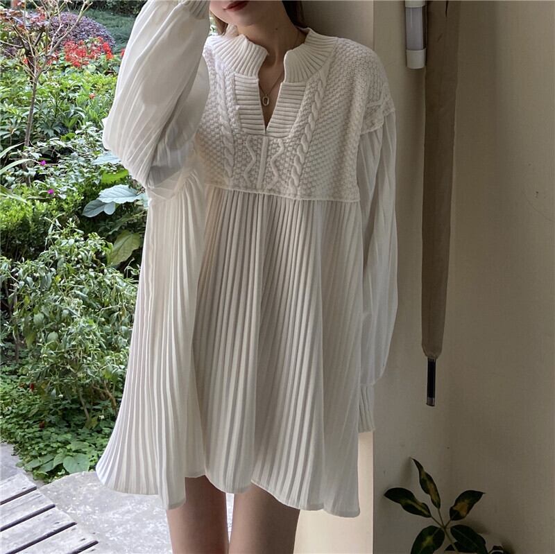 Vネックニットドレス レディースオータムウィンタースタンダードウェスト薄手ストライプスカート ロング レトロ 秋物 冬物 YY-ファッション34199905924